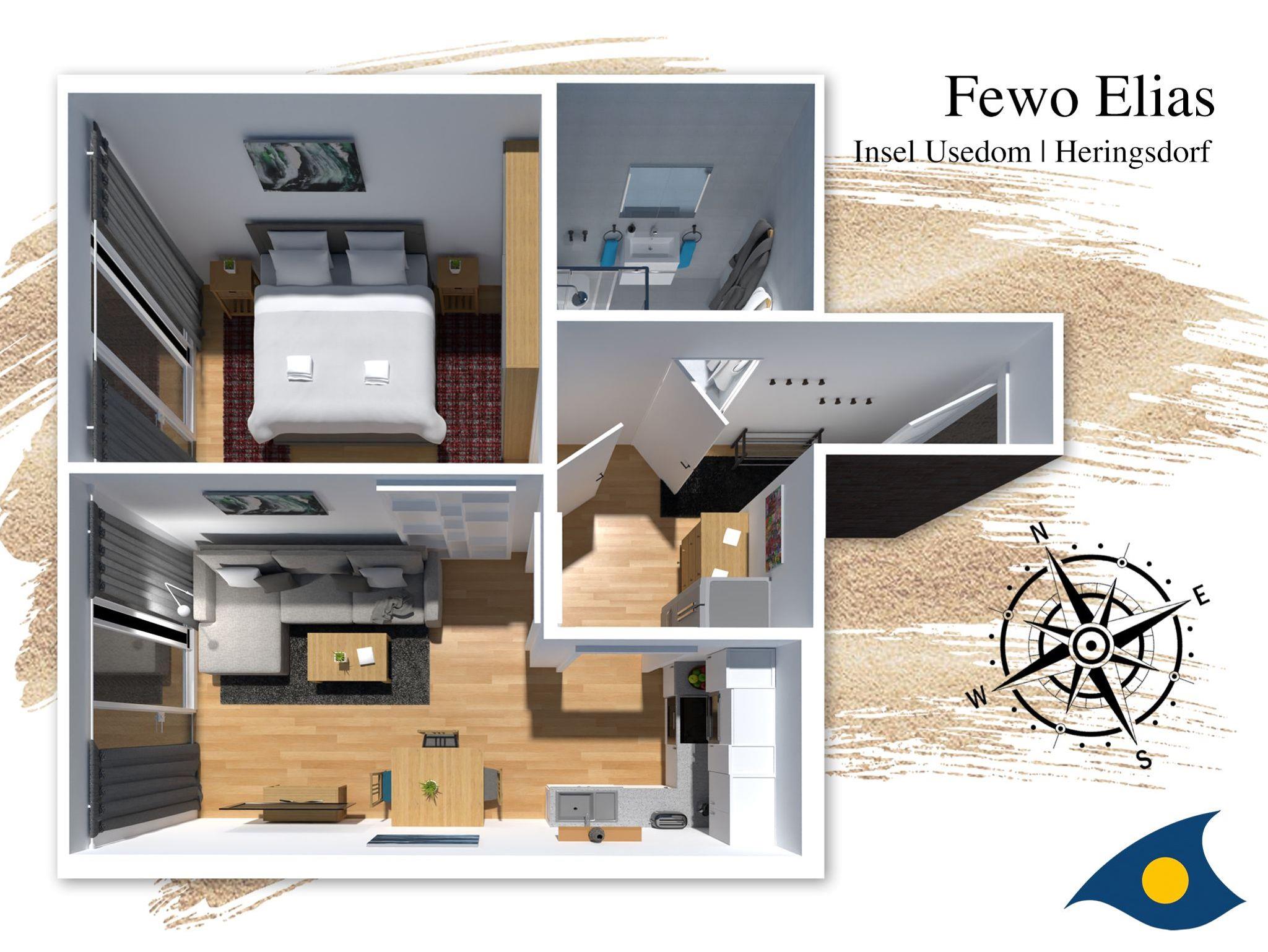 Moderne Ferienwohnung Elias in Heringsdorf mit Wellnesszugang und Strandnähe für erholsame Urlaubstage.