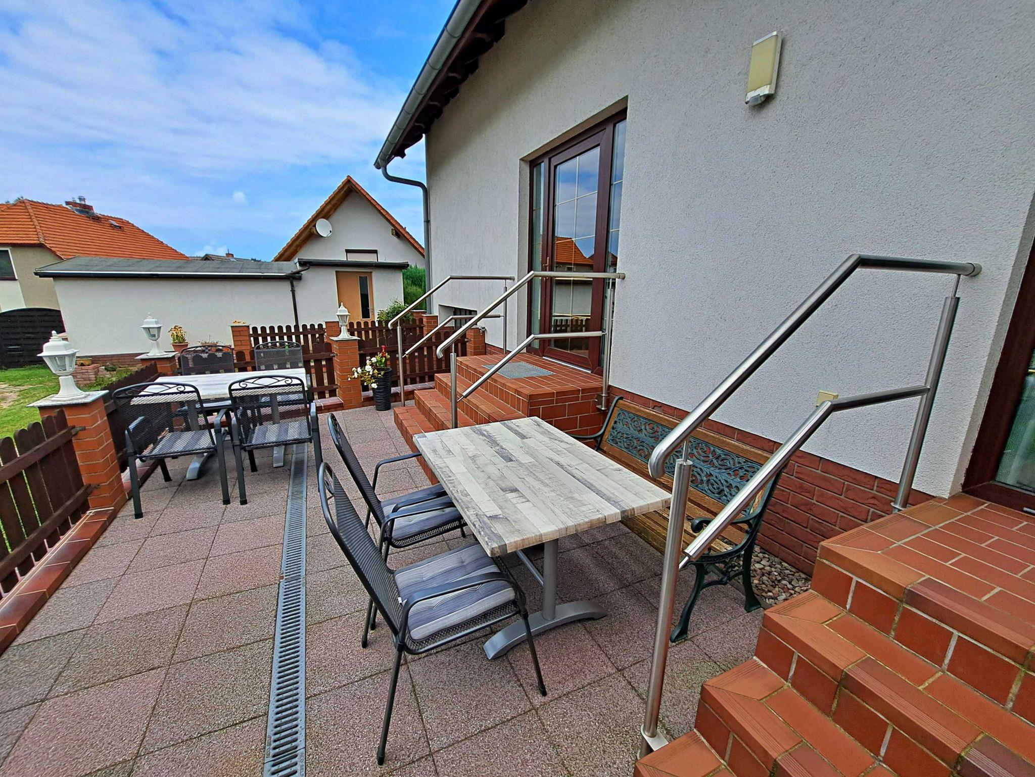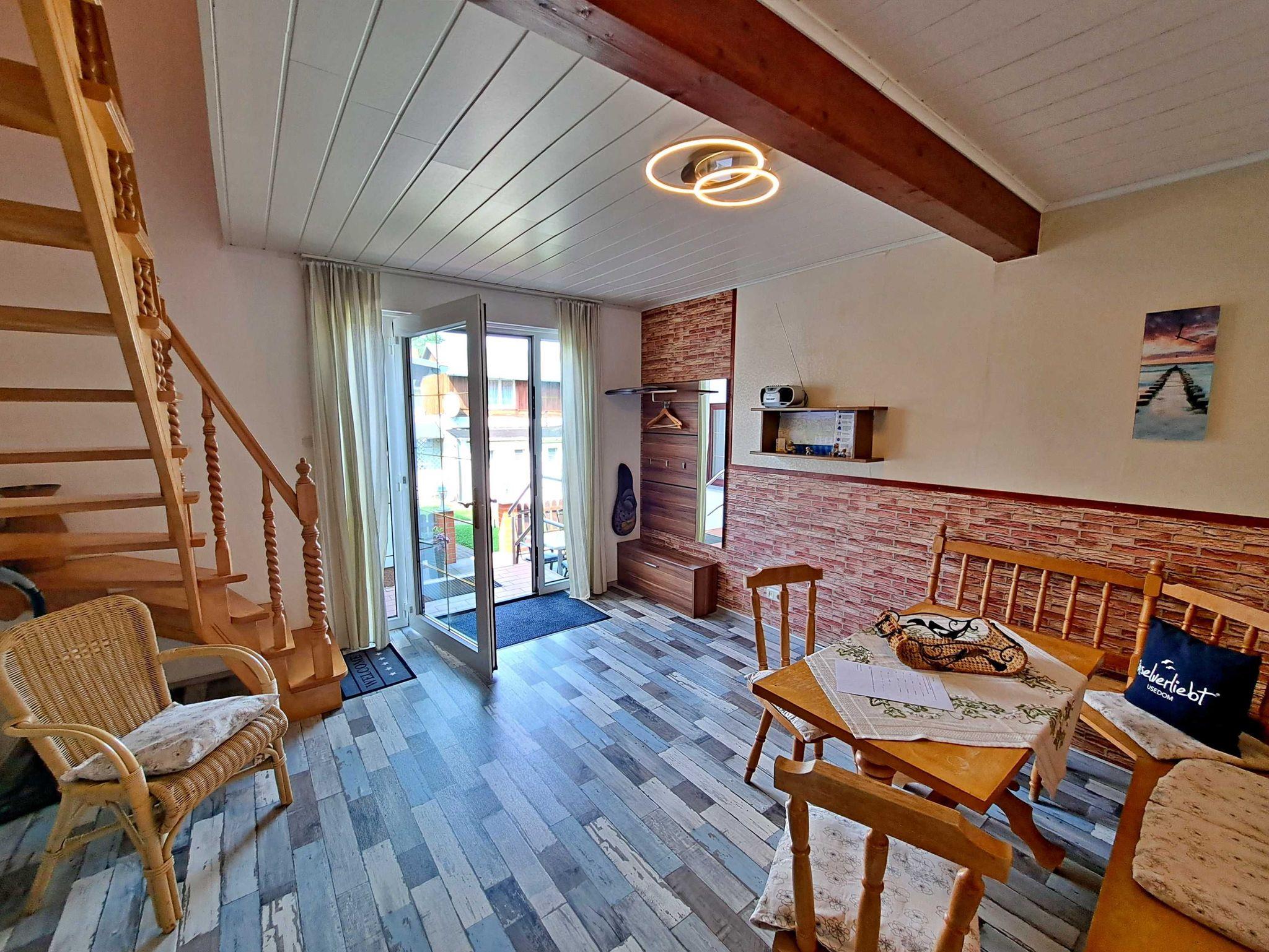 Über eine Treppe gelangen Sie ins 1. Obergeschoss, wo ein einladendes Wohnzimmer mit einer bequemen Couch, die auch als Schlafgelegenheit für zwei weitere Personen dient, auf Sie wartet. Außerdem gibt es ein separates Schlafzimmer mit einem komfortablen Doppelbett und Kleiderschrank. Genießen Sie die frische Luft auf der möblierten Terrasse direkt am Eingang, die perfekt ist um bei schönem Wetter Ihr Frühstück zu genießen oder den Abend mit einem Glas Wein ausklingen zu lassen. Ein Pkw-Stellplatz direkt am Haus sowie kostenfreies W-LAN stehen Ihnen ebenfalls zur Verfügung. Falls Sie gerne grillen möchten, können Sie auf Anfrage eine Grillmöglichkeit direkt beim Vermieter ausleihen. Zudem besteht die Möglichkeit gegen eine Kaution von 50 € eine Mikrowelle zur Verfügung gestellt zu bekommen.