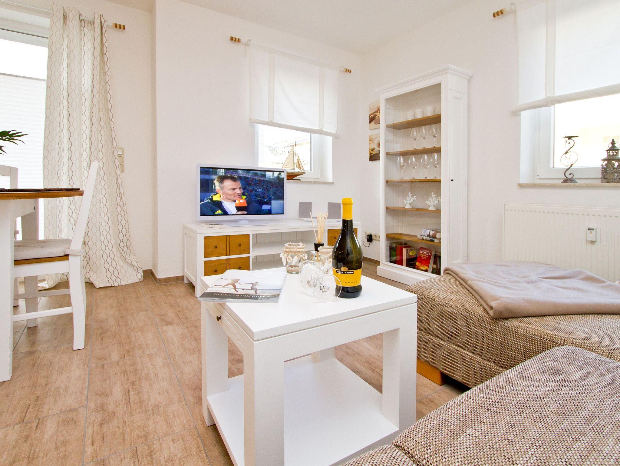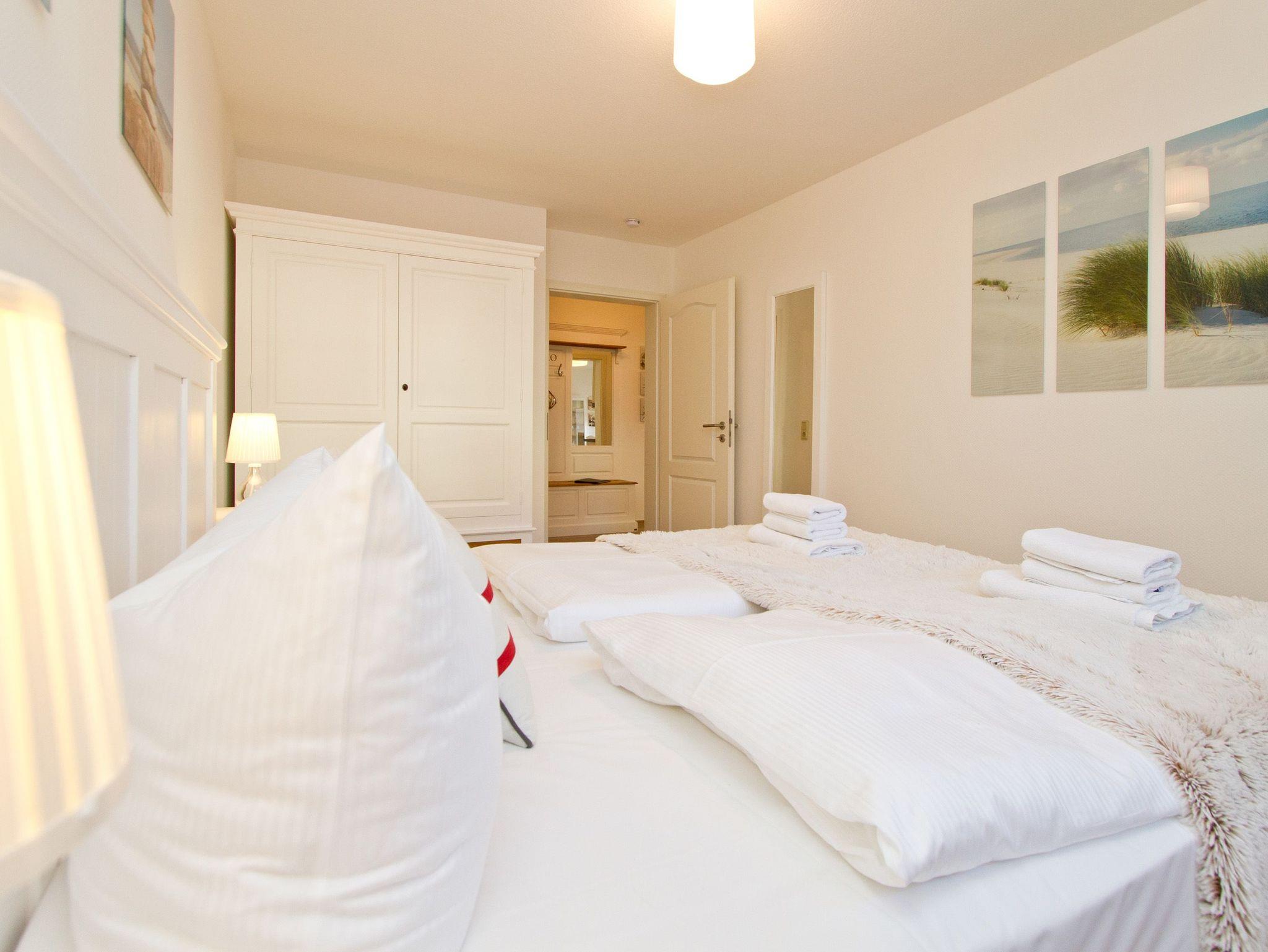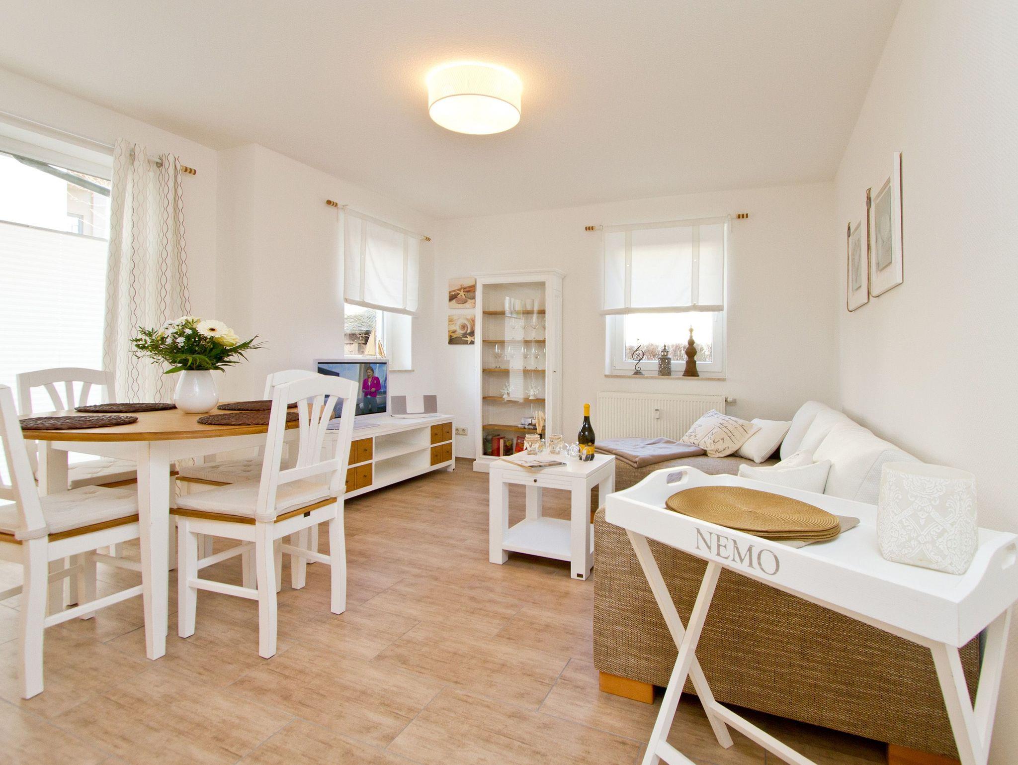 Das 50qm große Appartement im Erdgeschoss begrüßt Sie im modernen Landhausstil und bietet Ihnen Platz für 2 Personen und einem Kind (bis 16 Jahre). Das helle Interieur versetzt Sie direkt in Urlaubslaune und ist mit jeglichem Komfort ausgestattet. Der Wohnbereich verfügt über eine Schlafcouch (1,78m x 2,20m) und einen Flat-TV. Daran angrenzend befindet sich der gemütliche Essplatz mit Küchenzeile (Ceranfeld, Backofen, Spülmaschine), die beim Zubereiten Ihrer Speisen keine Wünsche offenlässt. Im Dusch-Bad mit WC und Waschtisch. Für einen komfortablen Schlaf sorgt das bequeme Doppelbett (1,80m x 2,10m). Genießen Sie Ihre Zeit auf der 13qm großen Terrasse, die mit Gartenmöbeln ausgestattet ist. Oder verbringen Sie Ihren Aufenthalt in Ihrem eigenen Strandkorb am Strand (von Mai bis Ende September, je nach Witterung). Eine Erstausstattung Wäsche (Handtücher [&] Bettwäsche) gehört ebenso zum Standard dieses Appartements wie ein hauseigener PKW-Stellplatz und kostenfreies WLAN.
