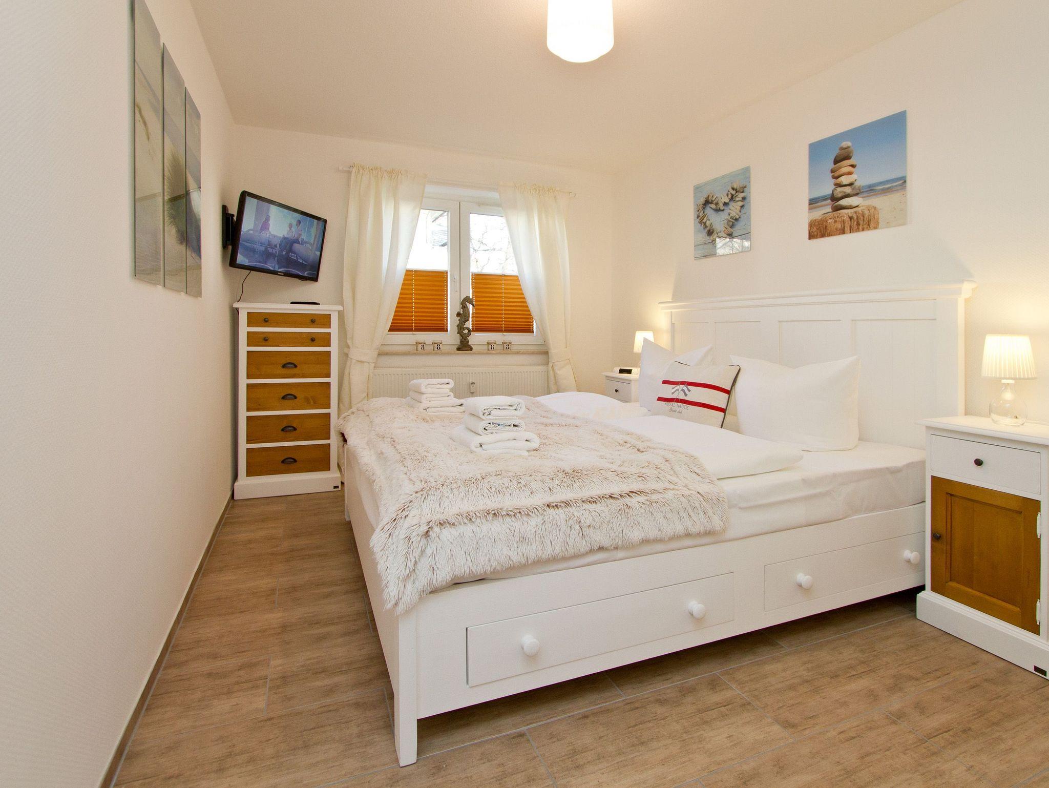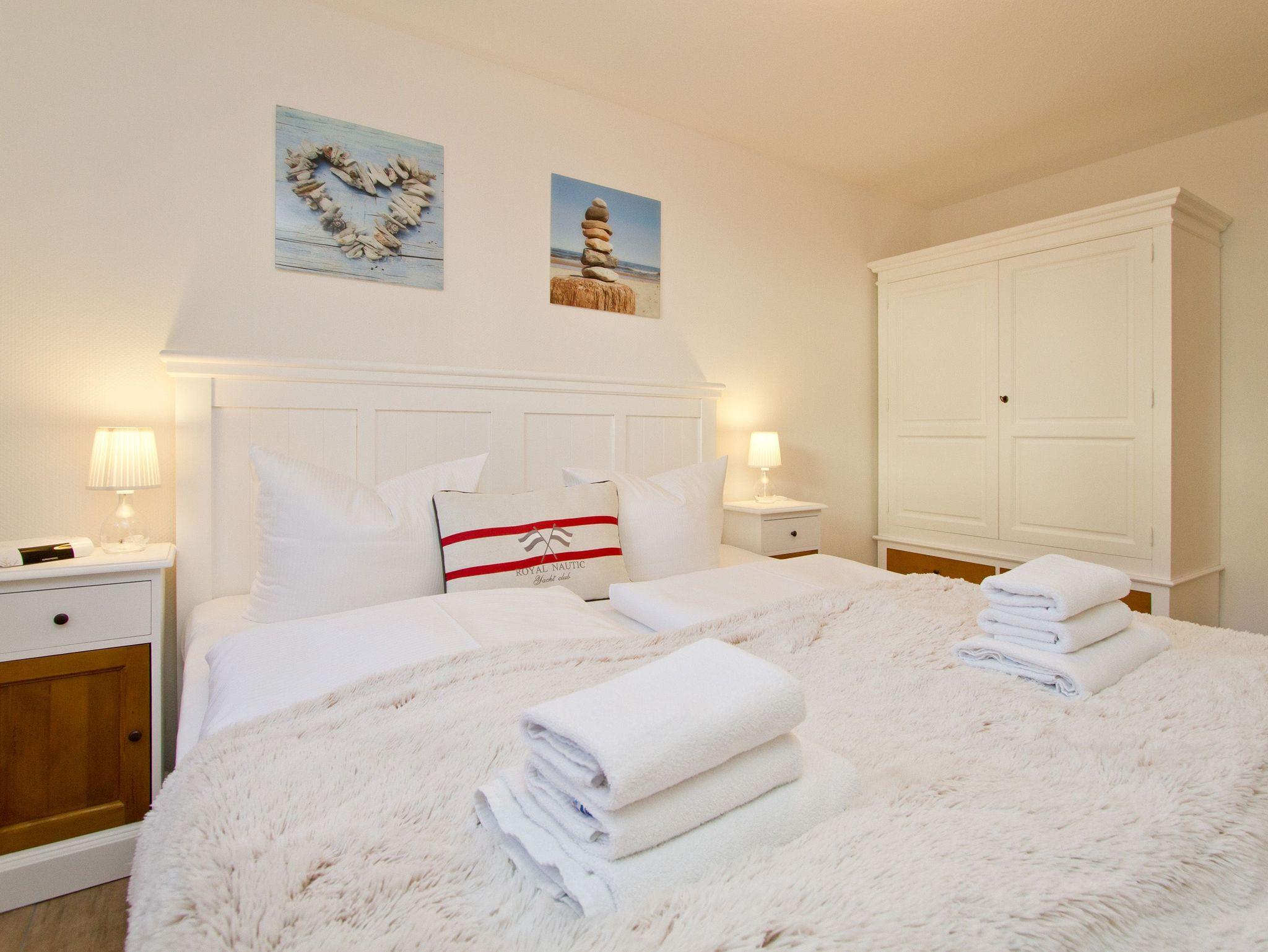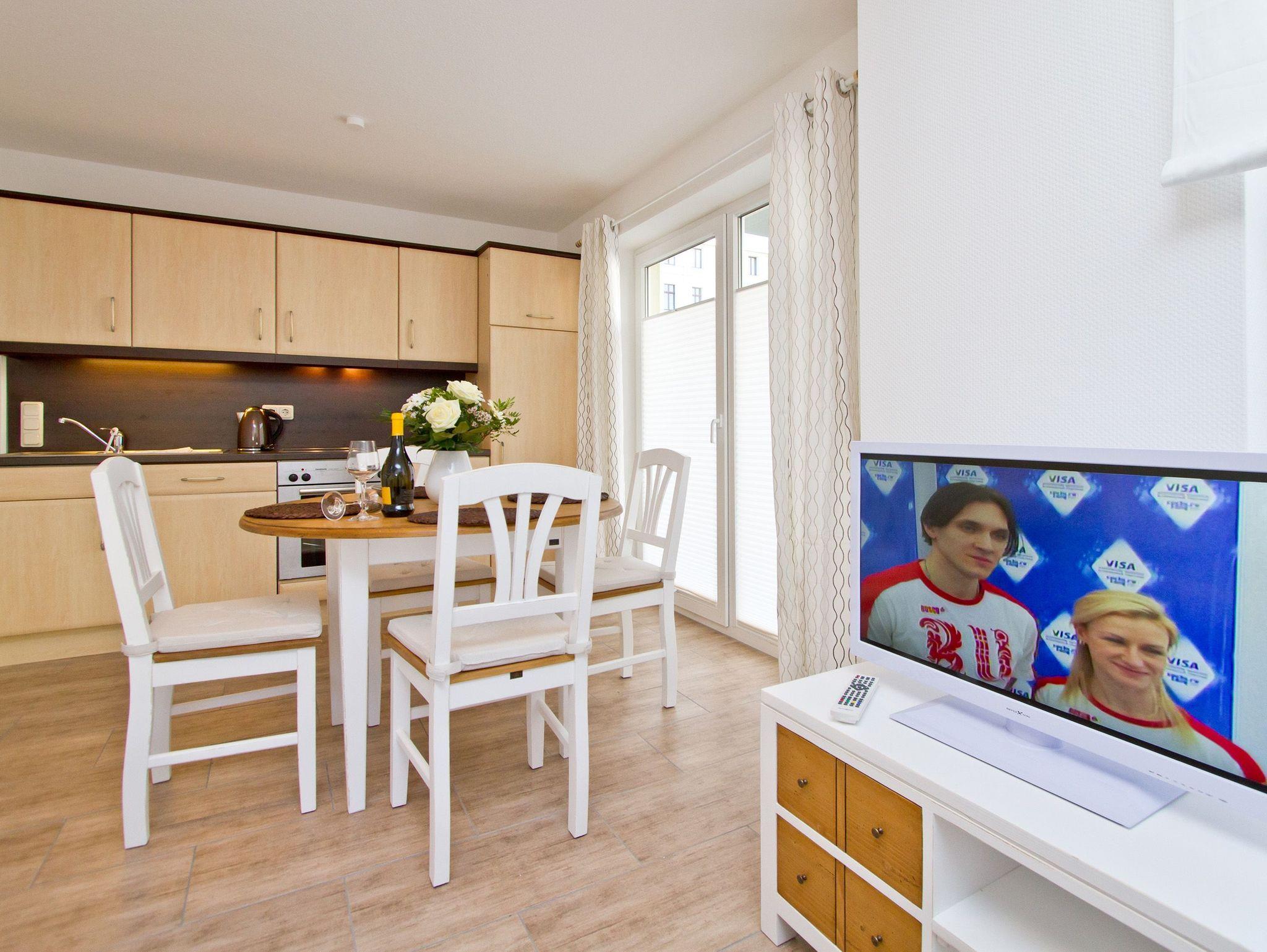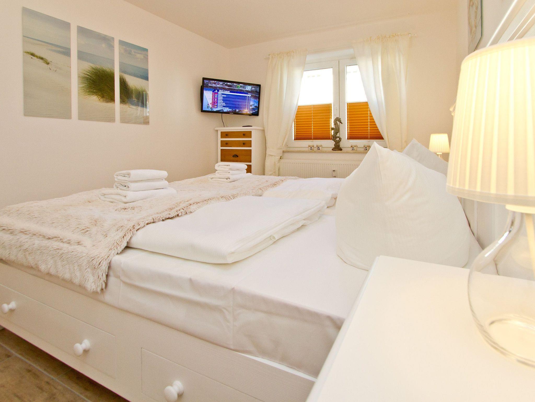 Das 50qm große Appartement im Erdgeschoss begrüßt Sie im modernen Landhausstil und bietet Ihnen Platz für 2 Personen und einem Kind (bis 16 Jahre). Das helle Interieur versetzt Sie direkt in Urlaubslaune und ist mit jeglichem Komfort ausgestattet. Der Wohnbereich verfügt über eine Schlafcouch (1,78m x 2,20m) und einen Flat-TV. Daran angrenzend befindet sich der gemütliche Essplatz mit Küchenzeile (Ceranfeld, Backofen, Spülmaschine), die beim Zubereiten Ihrer Speisen keine Wünsche offenlässt. Im Dusch-Bad mit WC und Waschtisch. Für einen komfortablen Schlaf sorgt das bequeme Doppelbett (1,80m x 2,10m). Genießen Sie Ihre Zeit auf der 13qm großen Terrasse, die mit Gartenmöbeln ausgestattet ist. Oder verbringen Sie Ihren Aufenthalt in Ihrem eigenen Strandkorb am Strand (von Mai bis Ende September, je nach Witterung). Eine Erstausstattung Wäsche (Handtücher [&] Bettwäsche) gehört ebenso zum Standard dieses Appartements wie ein hauseigener PKW-Stellplatz und kostenfreies WLAN.
