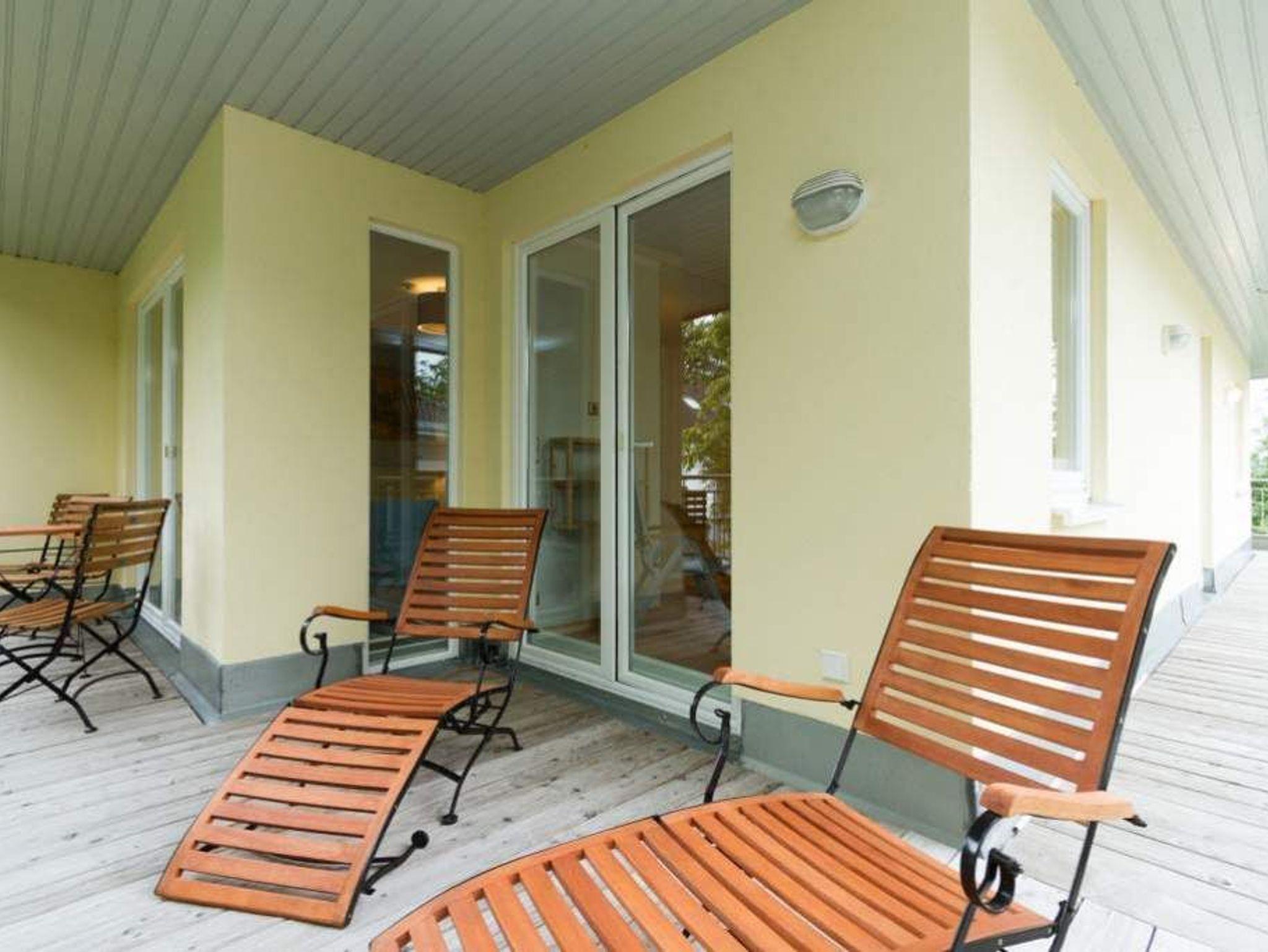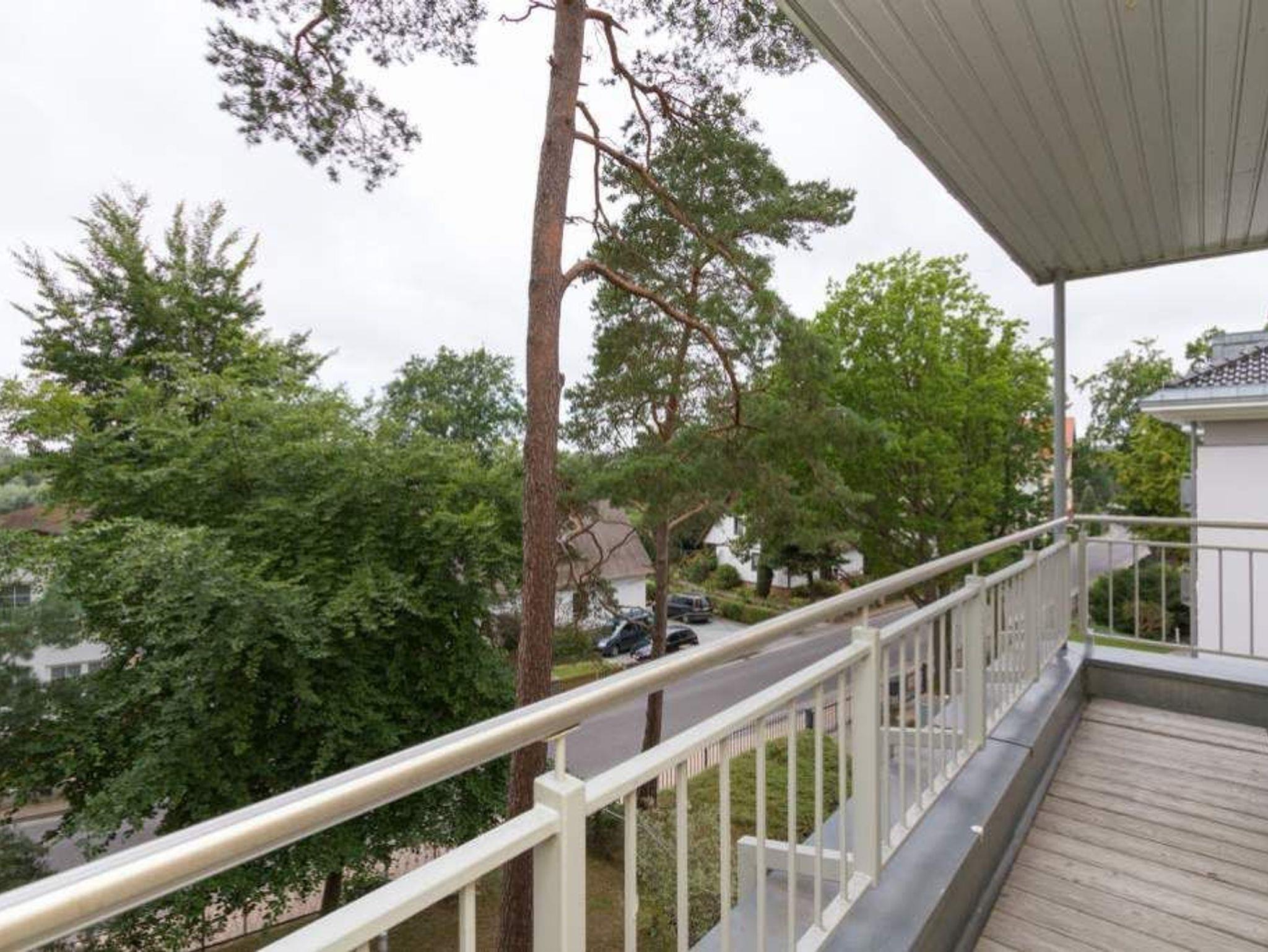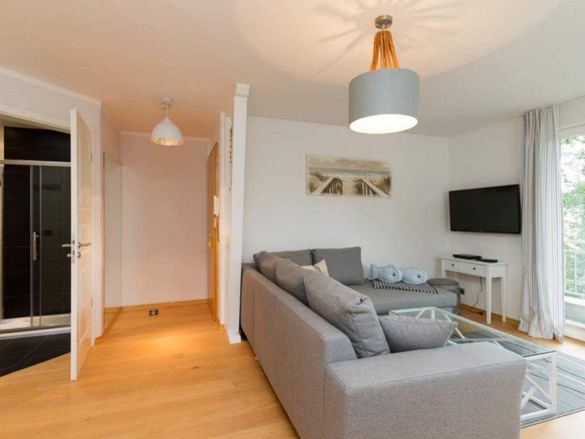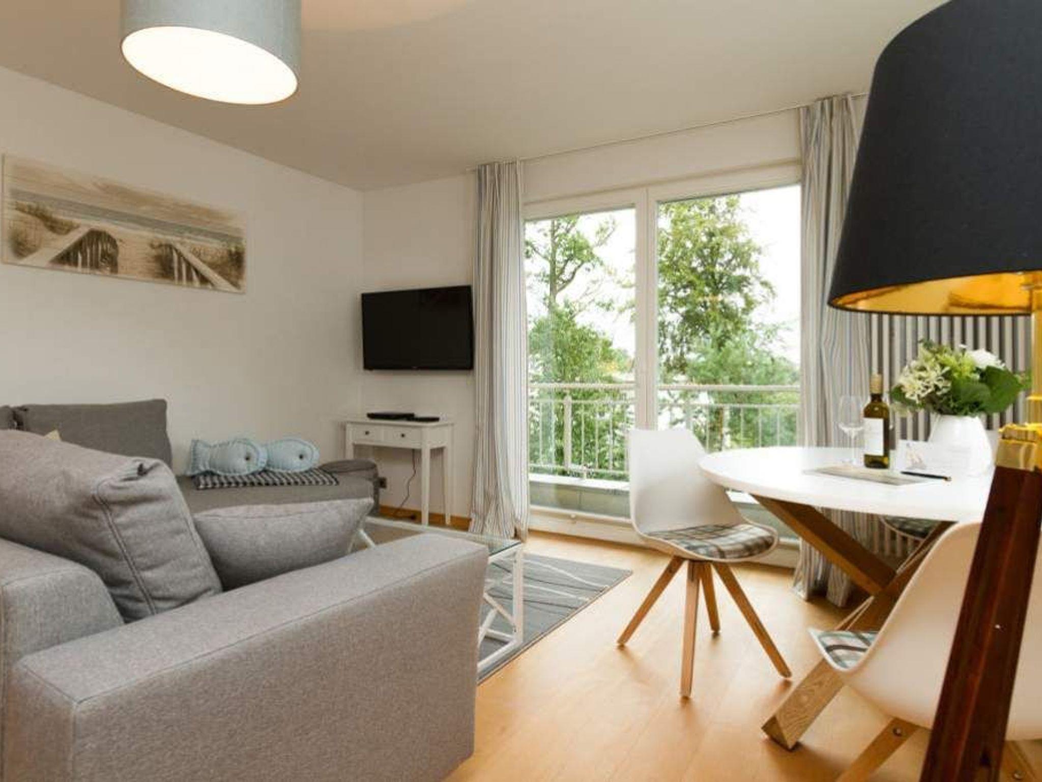 Moderne 2-Raum-Ferienwohnung mit Balkon, Sauna und Blick ins Grüne, nur 20 Meter von der Strandpromenade in Heringsdorf entfernt.
