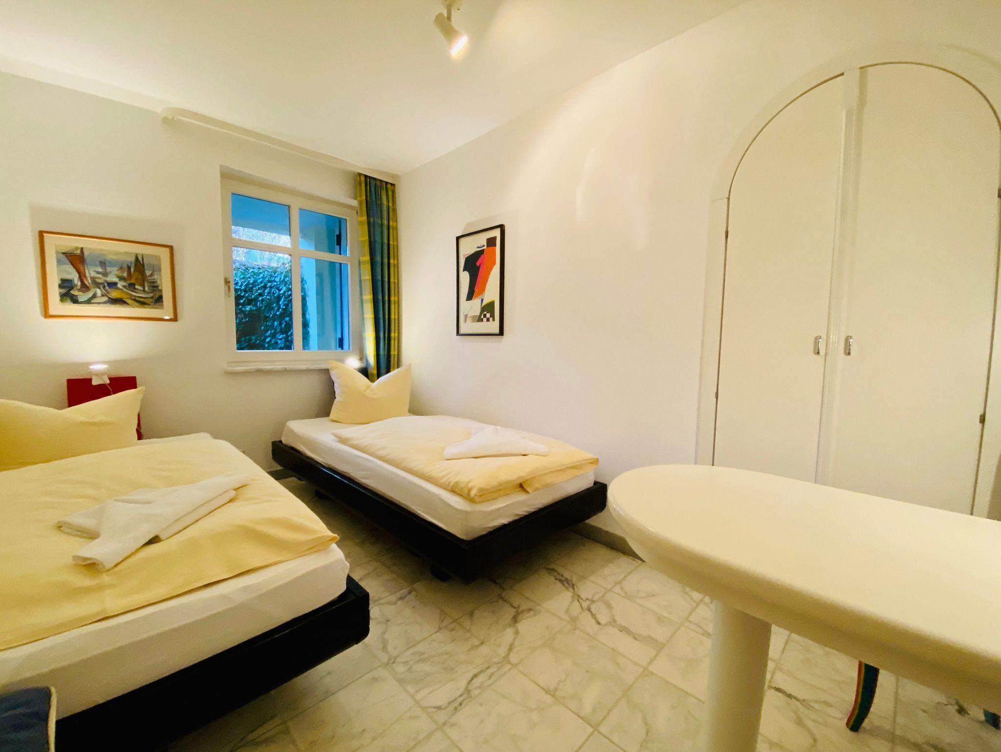 Die Ferienwohnung E1C befindet sich im Erdgeschoss der Villa Caprivi und ist ohne Stufen zu erreichen.