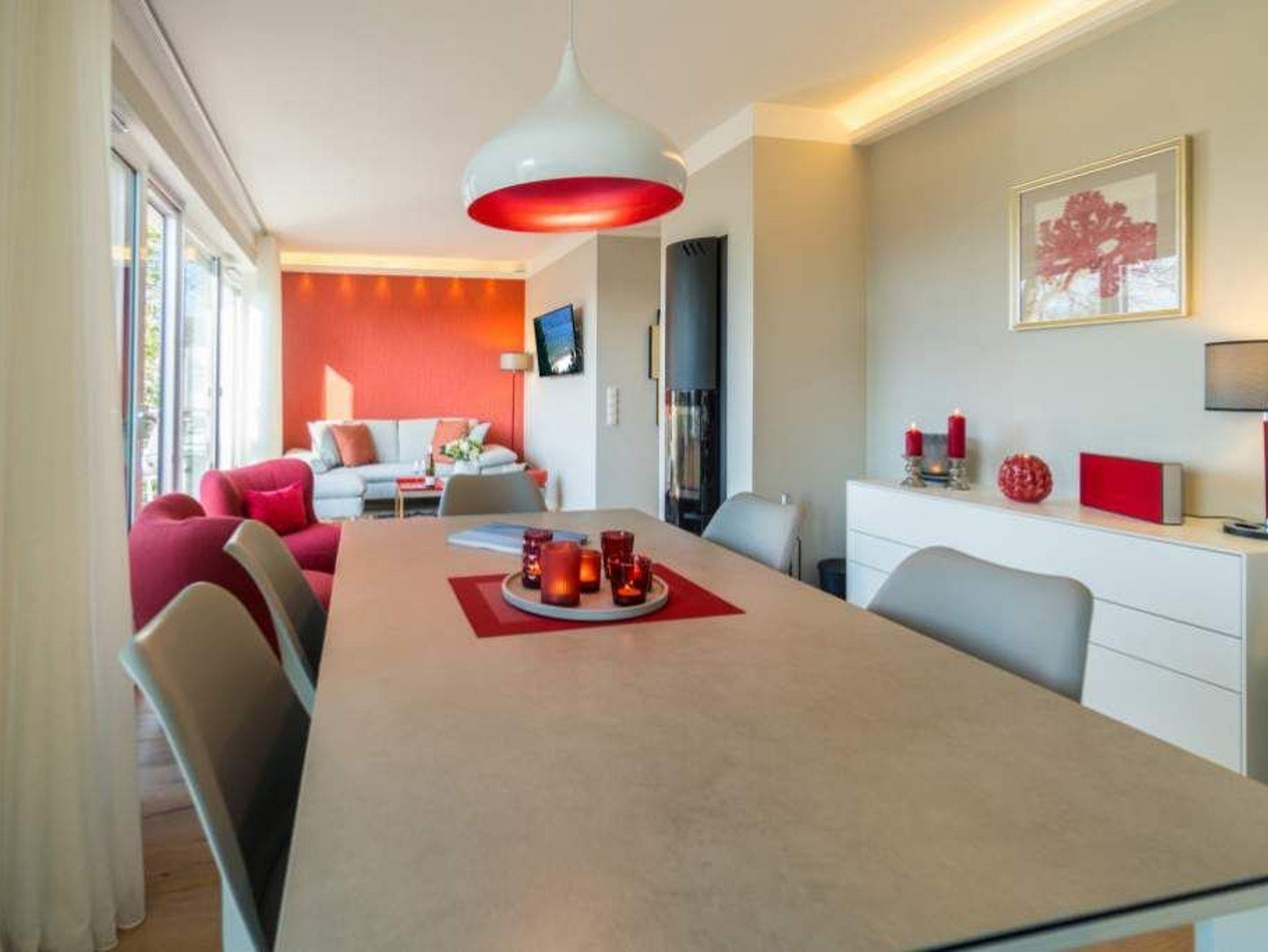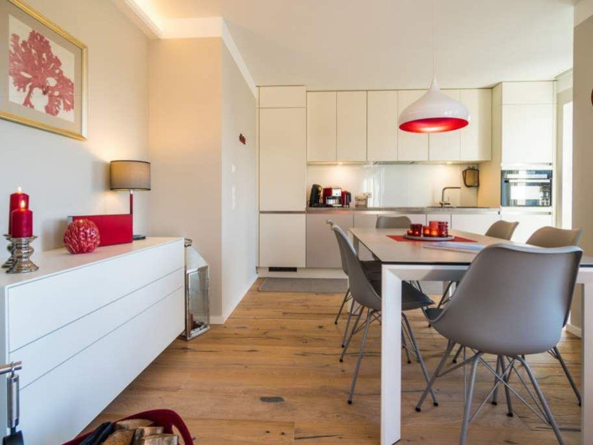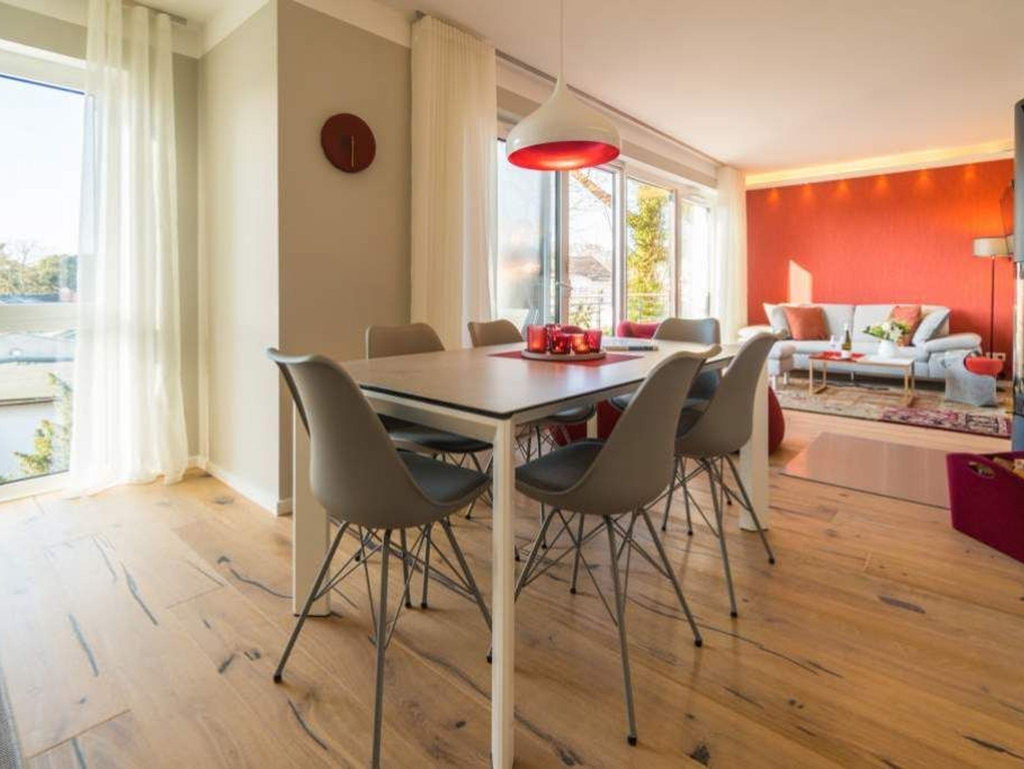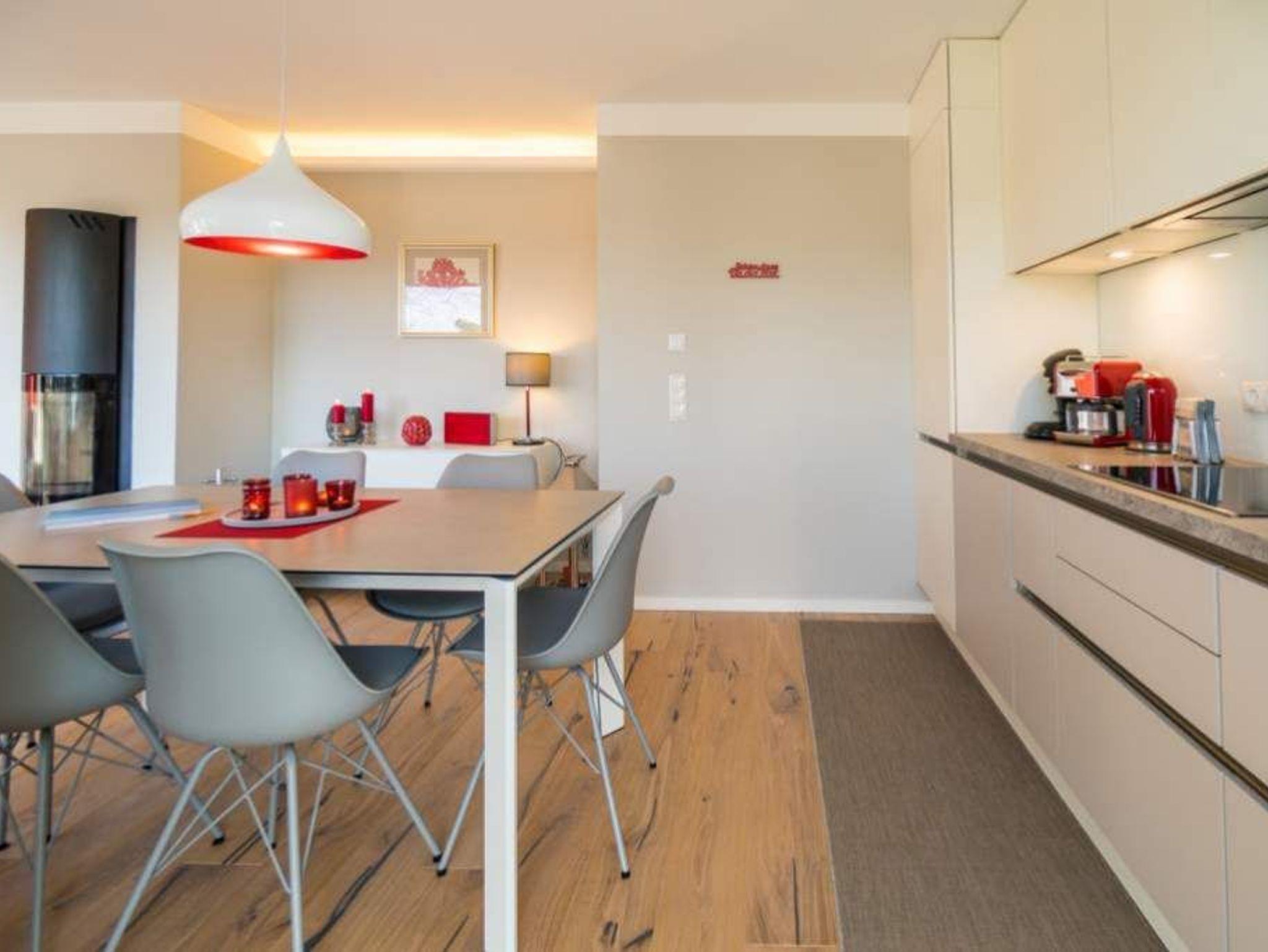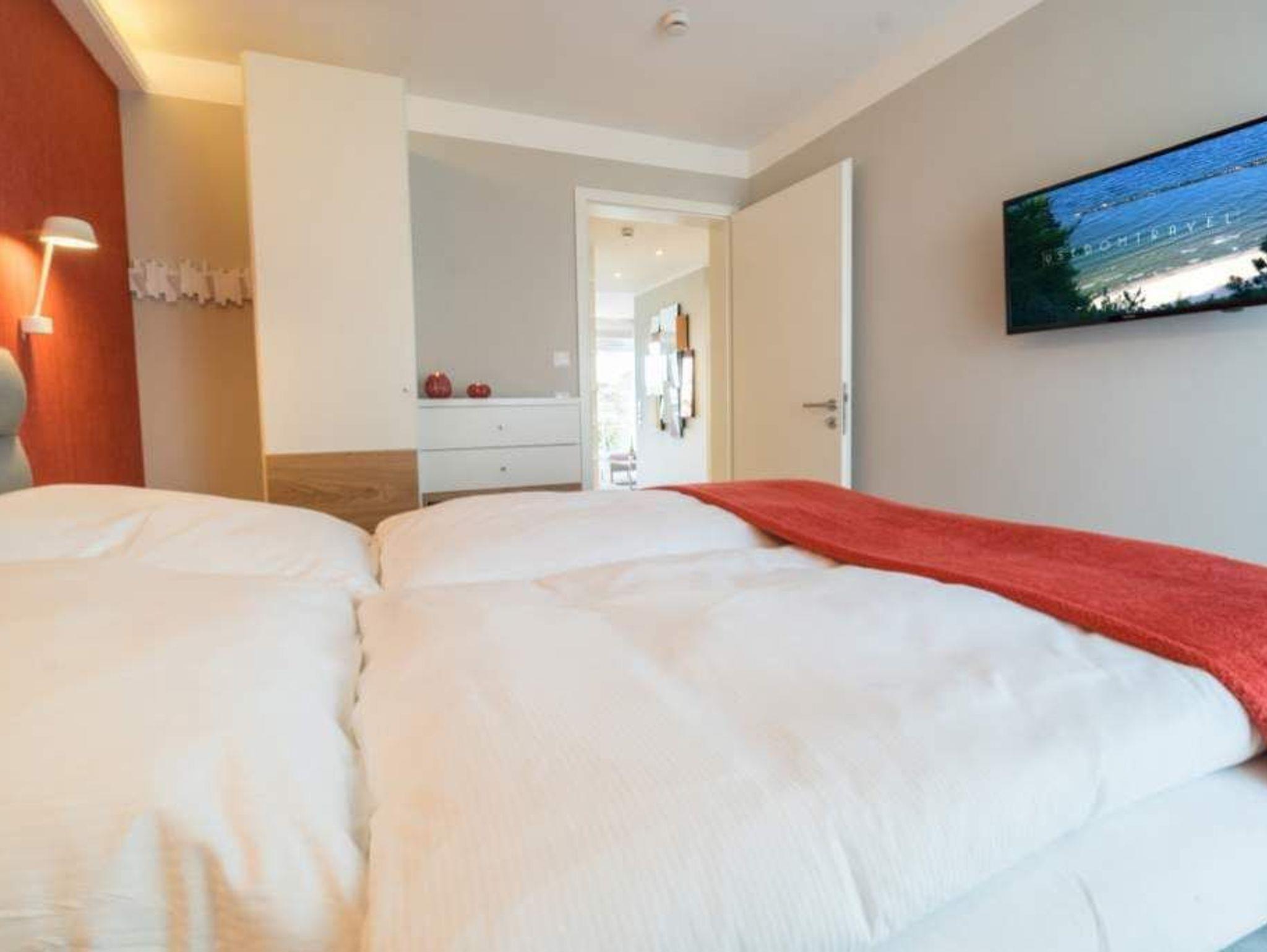 Sie lieben das Besondere und schätzen Design und Geschmack? Dann ist das zeitlos und noble Ferienappartement im Quartier am Fischerstrand Nummer 4 genau richtig für Sie, denn es ist von Innenarchitekten designt und lässt keine Wünsche offen. Bodentiefe, große Fenster lassen viel Licht in dieses Urlaubsdomizil für 4 Personen. Viel Weiß in Verbindung mit wohlgesetzten Farbakzenten in Orange und Rot bringen Leichtigkeit und Luftigkeit hinein. Hier können Sie tief durchatmen, sich wohlfühlen und ihren Urlaub in vollen Zügen genießen. Denn die 72 Quadratmeter sind geräumig, wunderbar hell und machen es zum idealen Urlauben, wo Sie Hektik und Stress schnell vergessen können. Vom großen Balkon aus vor Ihrem Wohnzimmer haben Sie einen weiten Blick über die Schönheit der alten Bädervillen von Heringsdorf. Genießen Sie von hier die frische Ostseebrise, relaxen Sie bei einem kühlen Getränk am Balkontisch oder auf der Sofalandschaft, die hinter den Glasscheiben nur darauf wartet, Ihnen entspannte Mußestunden zu schenken. An kühlen Tagen wärmt ein echter Kaminofen und verbreitet mit dem wohligen Knacken der brennenden Holzscheite urige Gemütlichkeit. Die offene Küche ist voll ausgestattet mit hochwertigen Geräten und Geschirr und verfügt über einen schönen großzügigen Essplatz. Zwei Schlafzimmer warten mit komfortablen Boxspring-Doppelbetten (beide 1,60 x 2,00 m) zum Schlafen und Kuscheln auf Sie. Schränke und Kommoden bieten viel Platz. Jedes Schlafzimmer besitzt wie auch das Wohnzimmer einen Flat-TV. Zur Wohnung gehört ein geräumiges Tageslichtbad mit einer großen geräumigen Dusche. Ein echtes Highlight an ungemütlichen Tagen ist die ins Bad integrierte Panoramasauna. Ein zweites Bad ist ebenfalls mit Dusche und WC ausgestattet. Für einen entspannten Urlaub haben wir Ihre Betten bereits bezogen. Handtücher liegen bereit. Zur Wohnung gehört ein Pkw-Stellplatz am Haus. Ein Abstellplatz für Ihre Fahrräder ist im Keller vorhanden. Das WLAN kann kostenfrei genutzt werden.