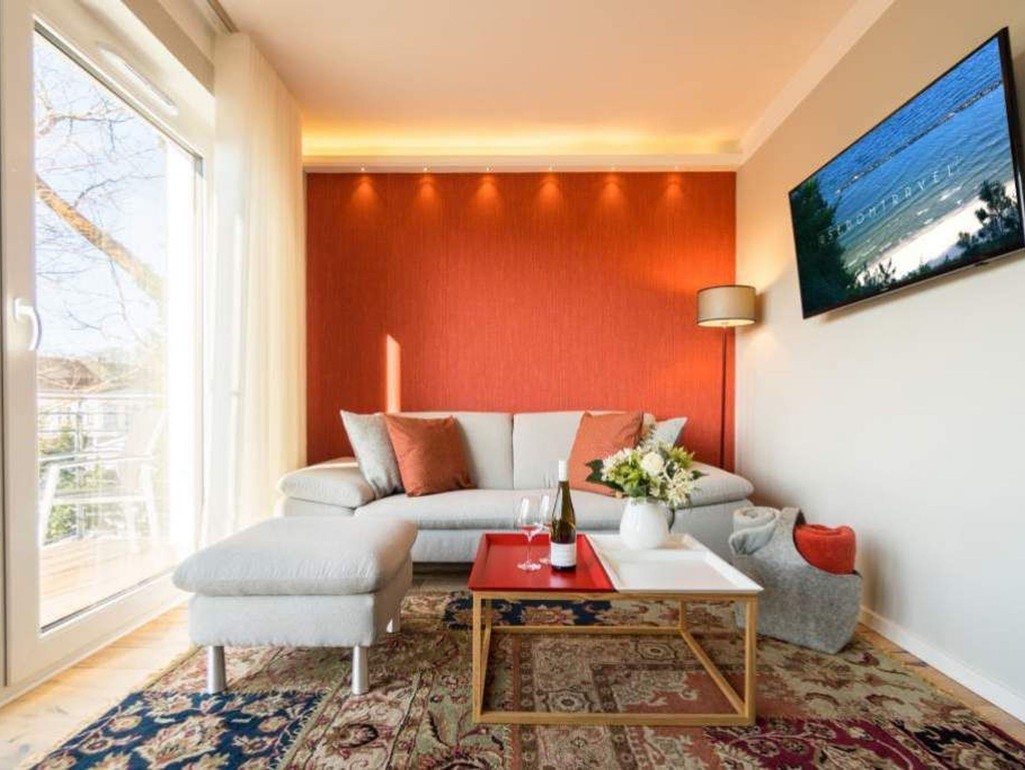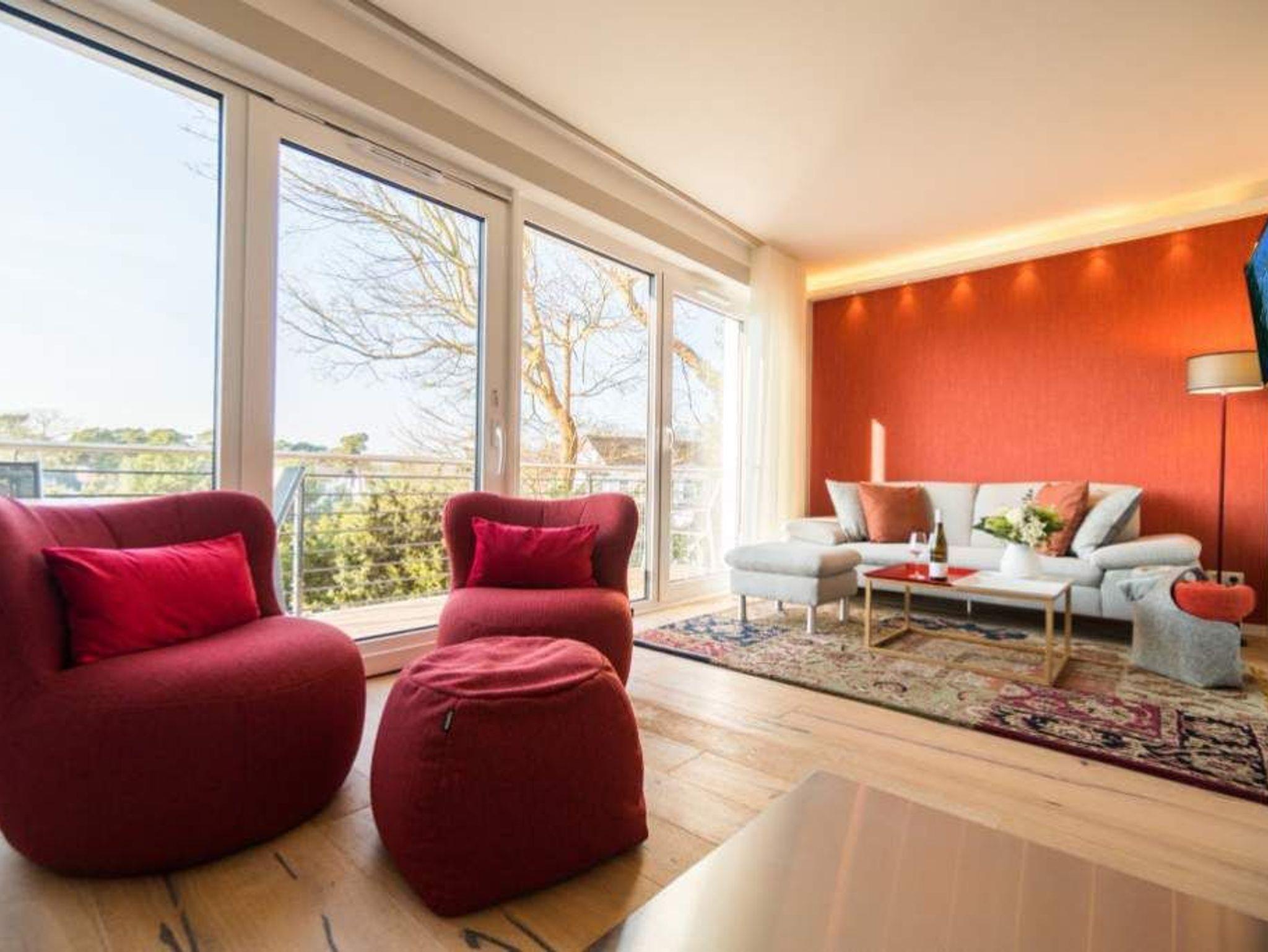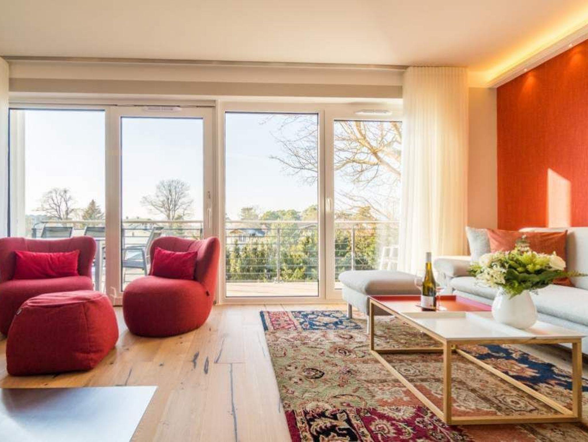 Stilvolles Ferienappartement in Heringsdorf mit Balkon, Kamin, Sauna und Meerblick, ideal für entspannte Urlaubstage an der Ostsee.