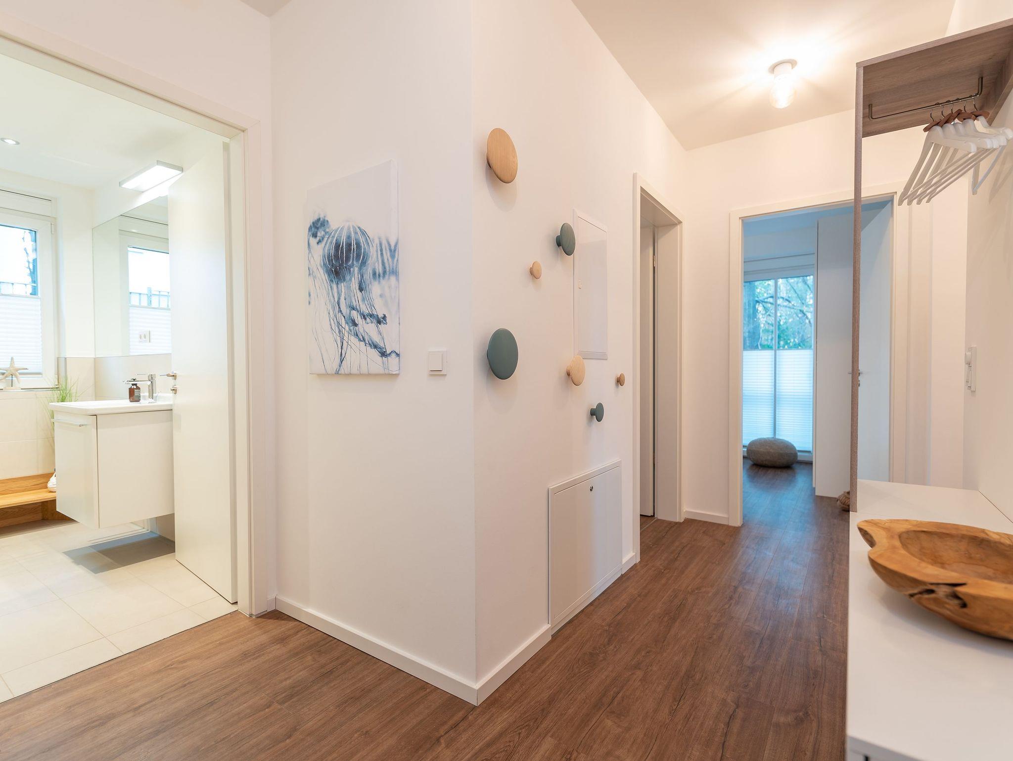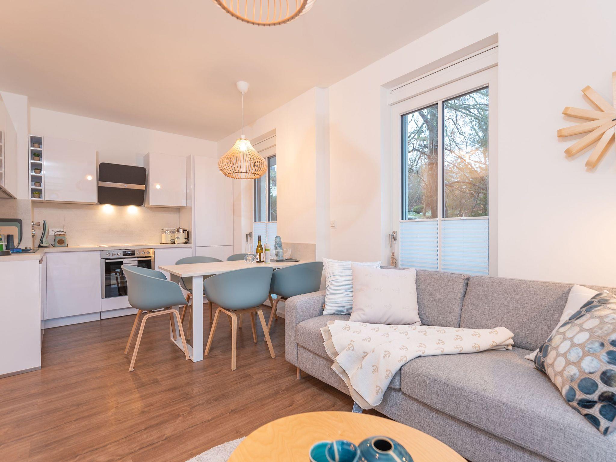 Die 3-Raum-Ferienwohnung Verdandi 10 im Erdgeschoss bietet mit ihrer modernen und zugleich gemütlichen Einrichtung Platz für bis zu 4 Personen. Genießen Sie den Komfort von zwei Schlafzimmern ? eines mit einem komfortablen Doppelbett und das andere mit einem Einzelbett, das bei Bedarf um eine zusätzliche Aufbettung erweitert werden kann. Für die kleinsten Gäste kann auf Wunsch ein Kinderreisebett bereitgestellt werden.