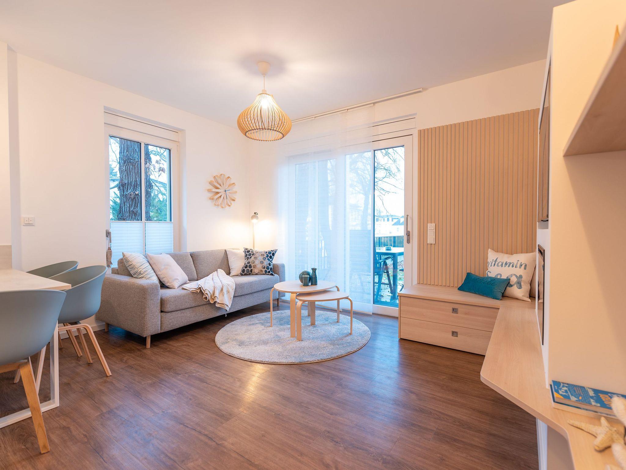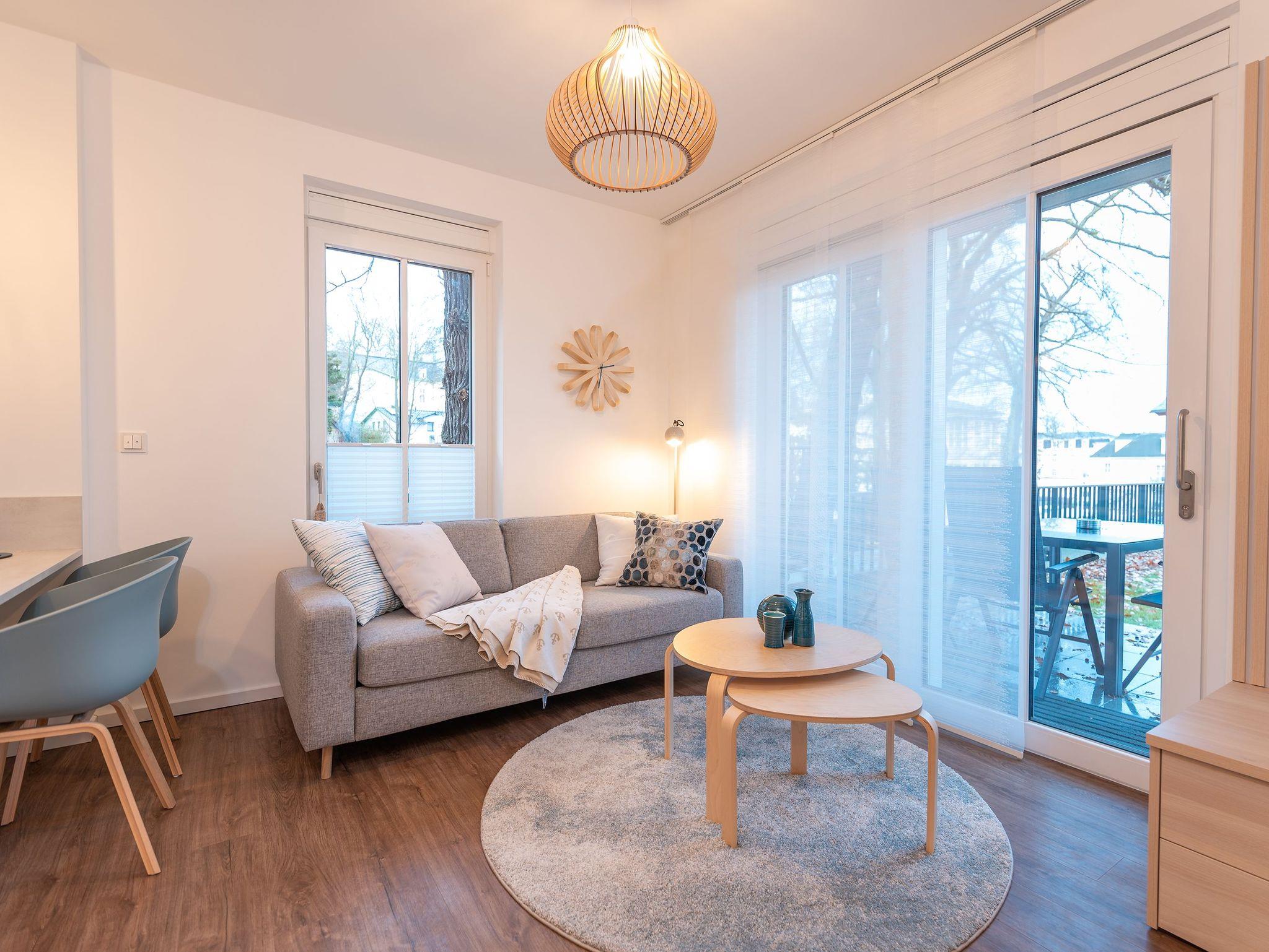 Moderne Ferienwohnung in Heringsdorf mit Terrasse, Sauna und Tiefgaragenparkplatz nur 300 m vom Strand entfernt.