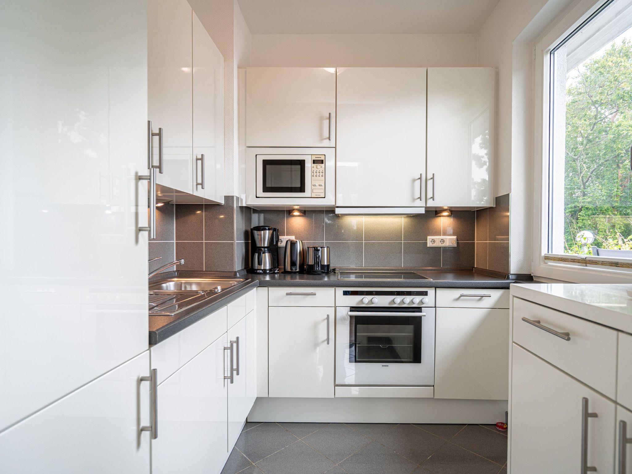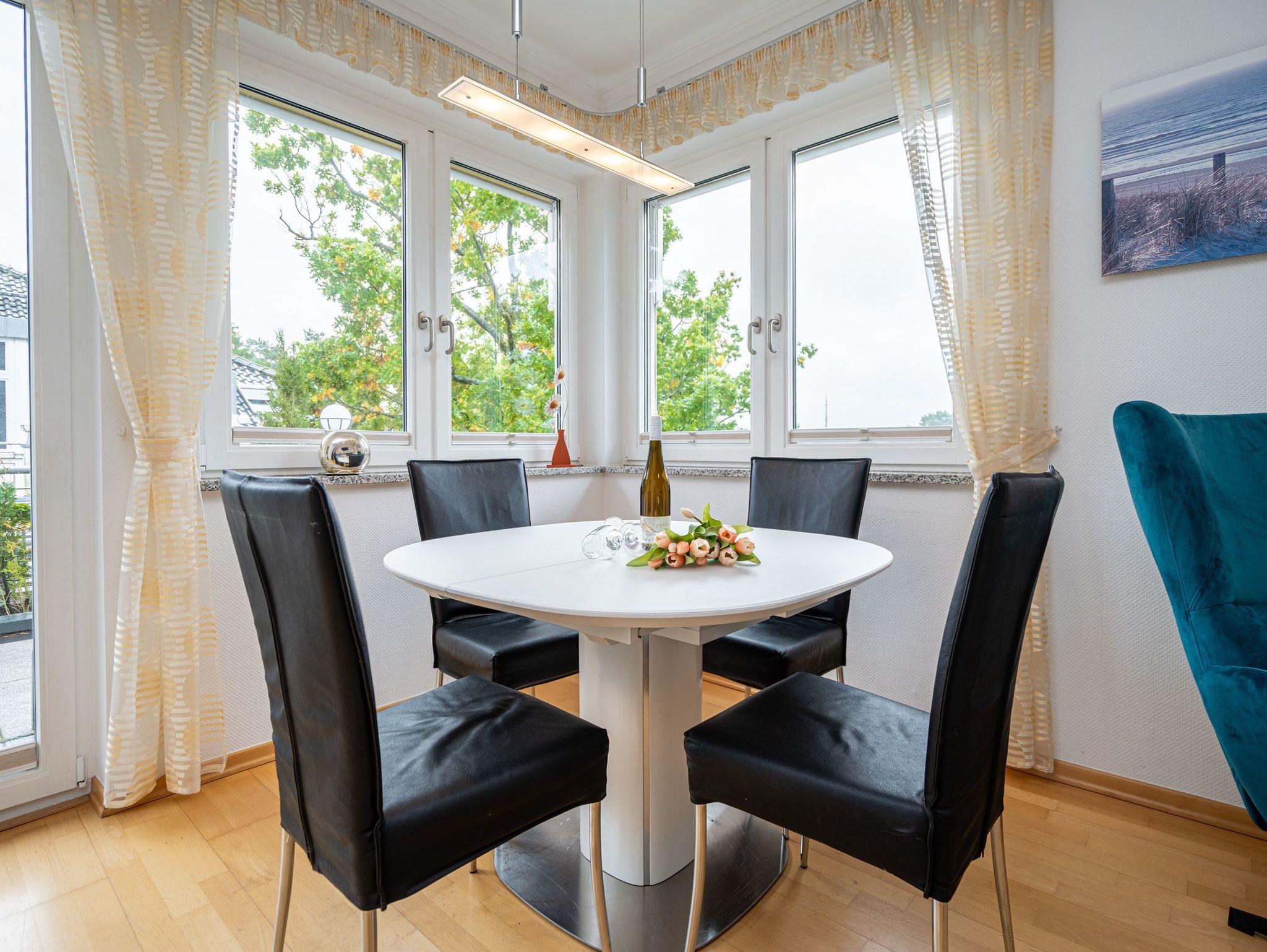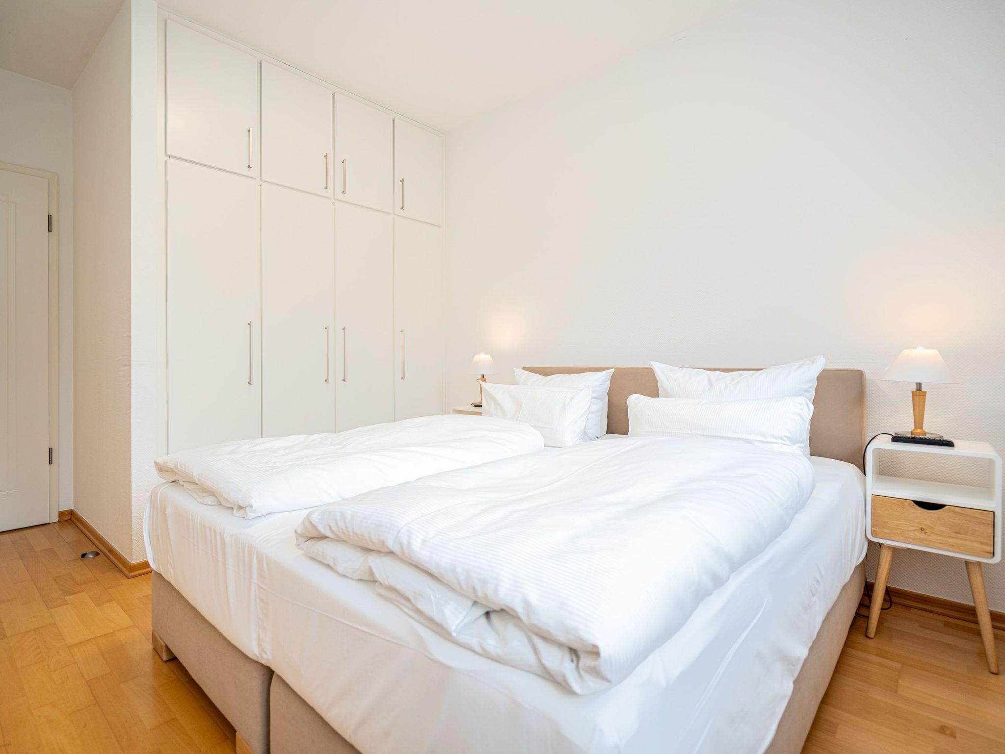 Dem Meeresrauschen ganz nah - in diesem wunderschönen 2-Zimmer-Appartement im 3. Obergeschoss können Sie den Rhythmus der Ostsee gleich auf zwei Balkonen genießen. Das 64 Quadratmeter große Wohlfühl-Domizil schenkt bis zu vier Ostseeliebhabern eine Traumauszeit mit Ausblick. Denn die windschiefen Kiefern gewähren vom Südost-Balkon aus Sicht auf glitzernde Wellen und blaue Weite. Doch auch der zweite Balkon hat in Südwest-Ausrichtung seine sonnig schönen Seiten. Ist es zu heiß, spannen Sie einfach den Sonnenschirm auf und genießen das laue Lüftchen aus dessen Schatten heraus. Beide Balkone können Sie vom geräumigen Wohn-Esszimmer aus betreten. Hier finden Sie viel Platz für entspannte Stunden. Das große Sofa lässt sich ausziehen, so dass zwei Personen darauf bequem übernachten können. Der Flat-TV ist mit einem DVD-Player verbunden. Am großzügigen Esstisch mit vier Stühlen werden gemeinsame Essen zu unterhaltsamen Mußestunden. Die separate Küche ist mit allem Nötigen ausgerüstet. Moderne Markengeräte erleichtern jeden Arbeitsschritt. Im Schlafzimmer schenkt Ihnen ein komfortables Boxspringdoppelbett (1,80 m x 2,00 m) erholsames Schlafvergnügen. Ein geräumiger Einbauschrank offenbart reichlich Ablageflächen. Auch im Schlafzimmer befindet sich ein Flat-TV. Das Appartement verfügt über zwei Bäder. Eines hat eine Badewanne. Das zweite ist mit einer Dusche versehen. Handtücher liegen für Sie bereit. Für die schnelle Wäsche zwischendurch befindet sich im Untergeschoss des Hauses eine Münzwaschmaschine und ein Münztrockner. Das WLAN ist kostenfrei. Bei Anreise sind die Betten bezogen. Für Ihr Auto gibt es im Doppelparker Nummer 1 einen Stellplatz (max. Pkw-Höhe 1,50 m, Pkw-Länge max. 5,00 m / Gewicht max. 2t).
