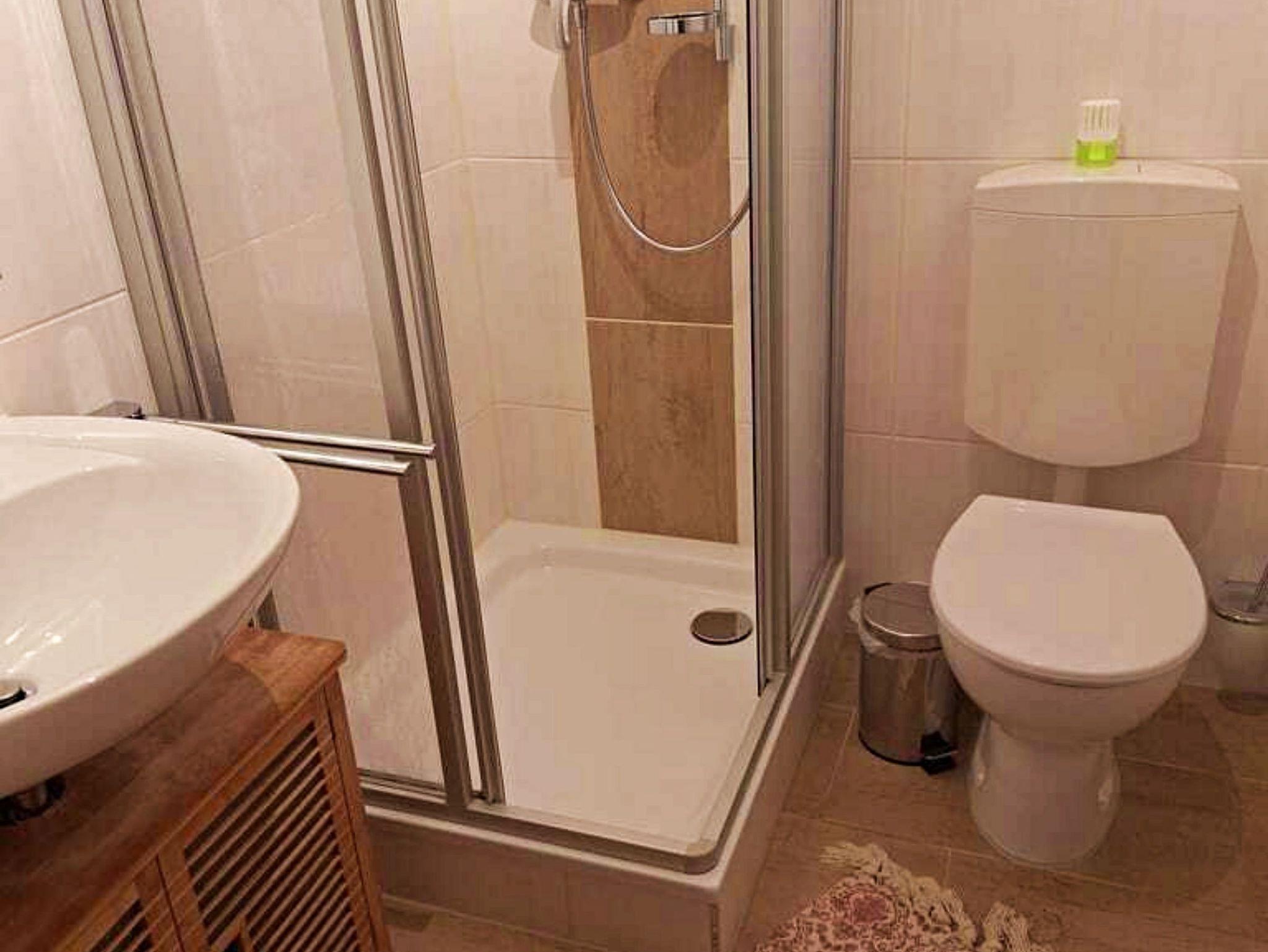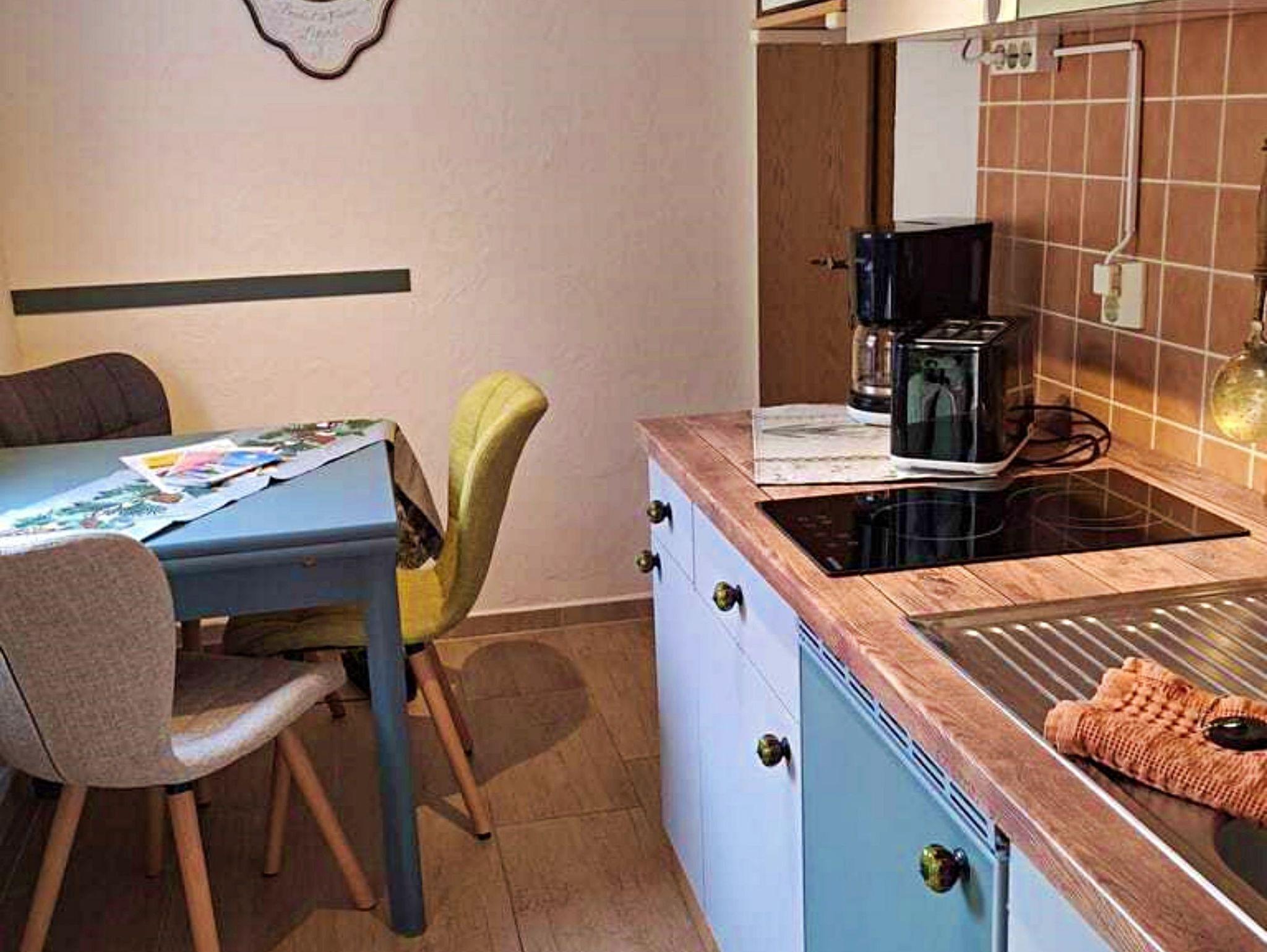 Unseren Gästen steht hier eine Ferienwohnung in herrlich grüner Lage zur Verfügung. Die Ferienwohnung ist ca. 30 qm groß und ist hell und freundlich eingerichtet und wurde im April 2024 neu renoviert. Die Ferienwohnung verfügt über ein separates Schlafzimmer (ohne Fenster) mit Einzelbett. Es gibt einen weiteren Raum mit Doppelbett und Fernseher, sodass die Ferienwohnung optimal für 3 Personen geeignet ist. Die separate Küche mit Essplatz und Fernseher dient als Aufenthaltsraum. Ein Wohnzimmer gibt es nicht. In der Küche gibt es einen 2-Platten-Ceranherd, Kühlschrank, Mikrowelle, Kaffeemaschine und Toaster. Unsere Gäste genießen den direkten Blick ins Grüne. Für ein gemütliches Frühstück oder Abendessen an herrlich, lauen Sommertagen steht eine überdachte Terrasse sowie eine Sitzfläche im Freien zur Verfügung. Grillmöglichkeiten sind selbstverständlich vorhanden.Die Erstausstattung Bettwäsche ist inklusive. Handtücher bringen Sie bitte selbst mit.