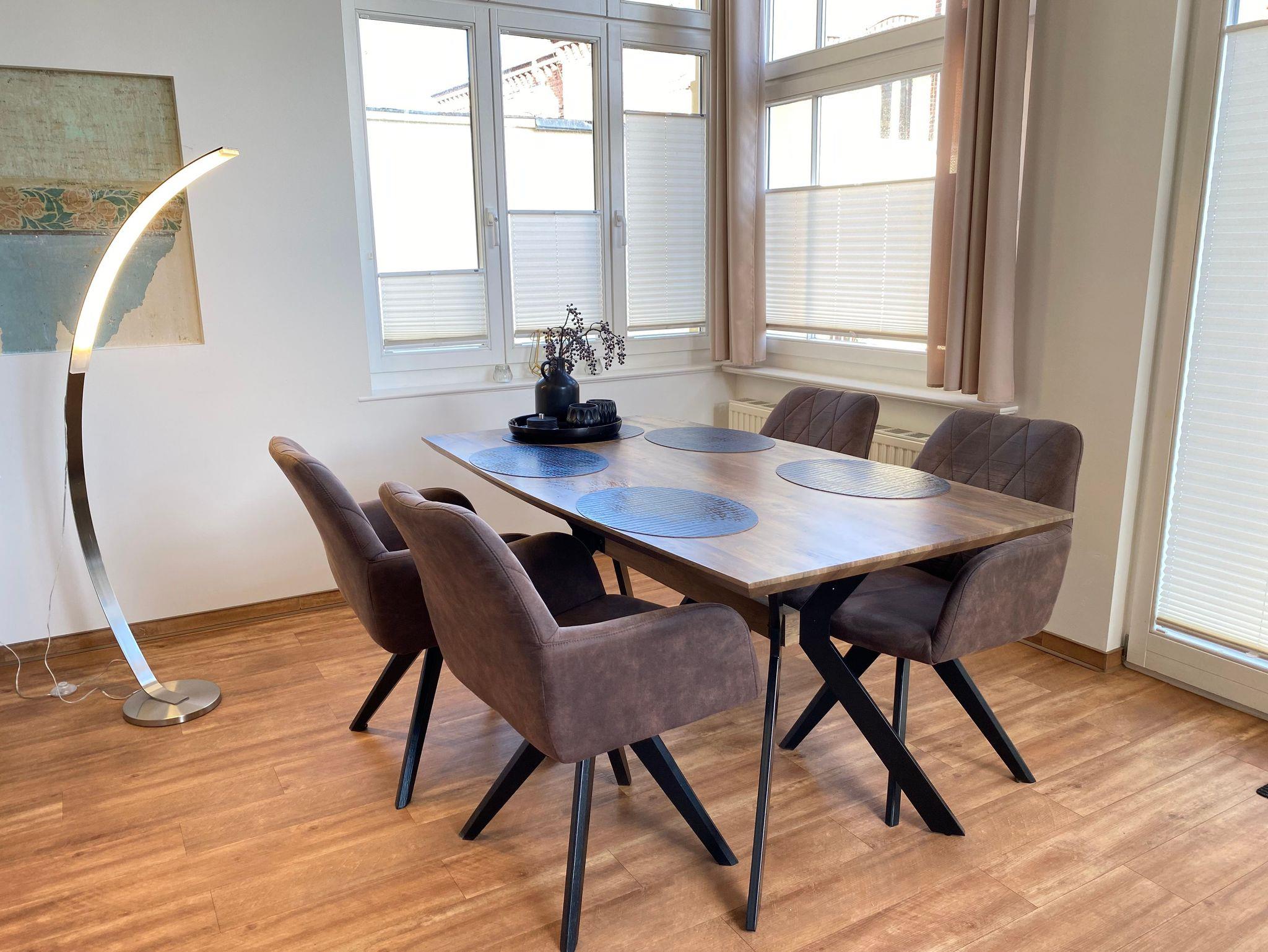 Auch der Anbau der Villa Anna wurde liebevoll saniert. Hier entstanden zwei schöne Ferienwohnungen, im Erdgeschoss die Kleine Anna, die ebenso modern und stilsicher eingerichtet wurde. Auf dem Grundstück gibt es pro Ferienwohnung einen Stellplatz und eine Aufladestation für E-Autos inklusive.