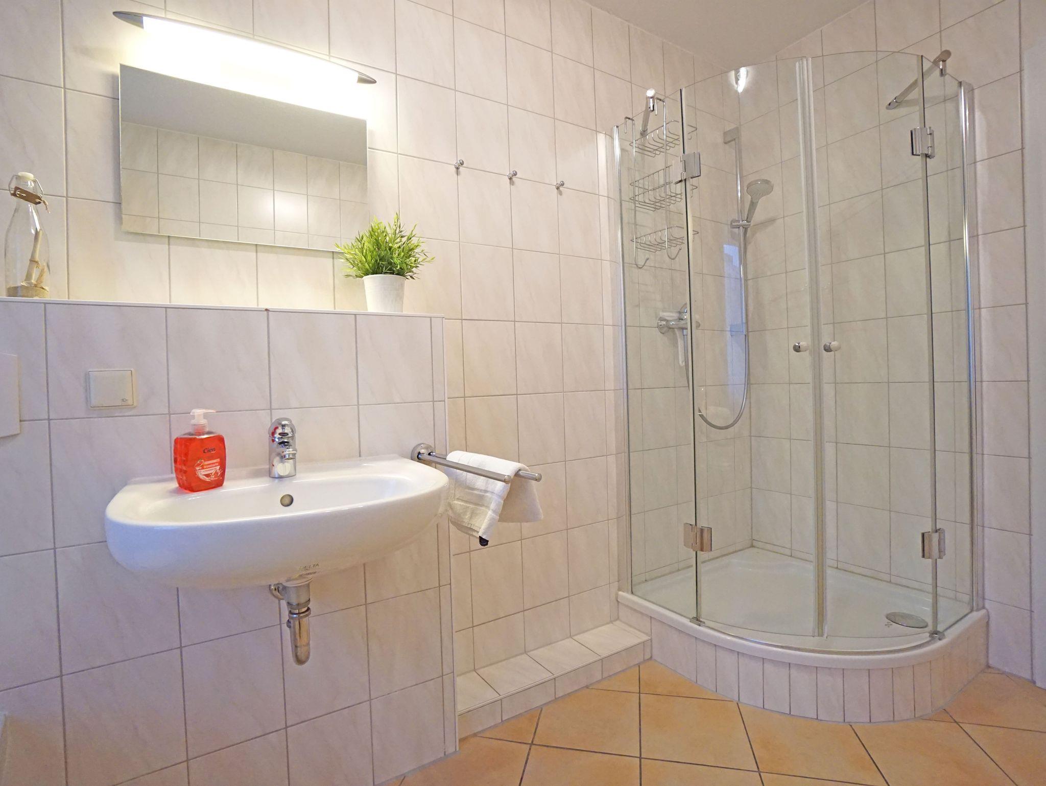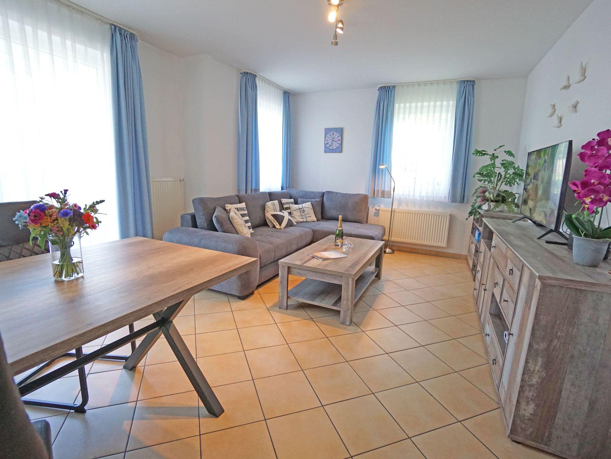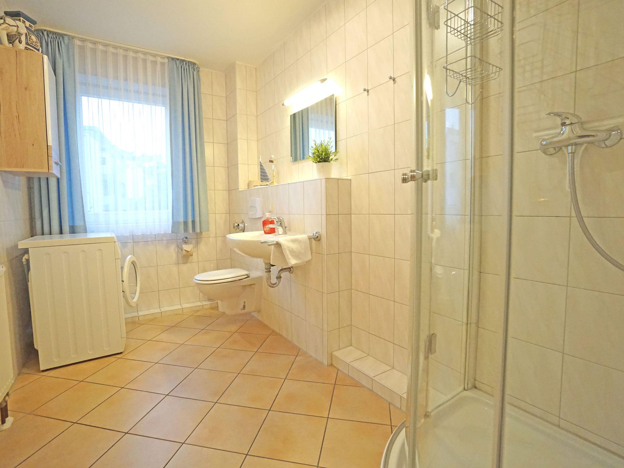 Die gemütliche Zwei-Zimmer-Ferienwohnung Nr. 5 für 2-4 Personen befindet sich im 1. Obergeschoss der Villa Madeleine. Der großzügige Wohnraum ist mit einem Esstisch für 4 Personen sowie einer Schlafcouch und Flachbildfernseher ausgestattet. Vom Wohnraum gelangt man auf den Balkon mit nordöstlicher Ausrichtung. Die separate Küche ist gut ausgestattet und verfügt über einen Backofen mit Ceran-Kochfeld, einen Geschirrspüler sowie Kühlschrank, Kaffeemaschine, Toaster, etc.. Das Schlafzimmer ist mit einem Doppelbett (180x200cm) ausgestattet. Im geräumigen Duschbad (mit Fenster) befindet sich eine Waschmaschine. Ein Pkw-Stellplatz auf dem Grundstück ist der Wohnung zugeordnet. Für Fahrräder und/oder den Kinderwagen steht ein Fahrradschuppen zur Verfügung.