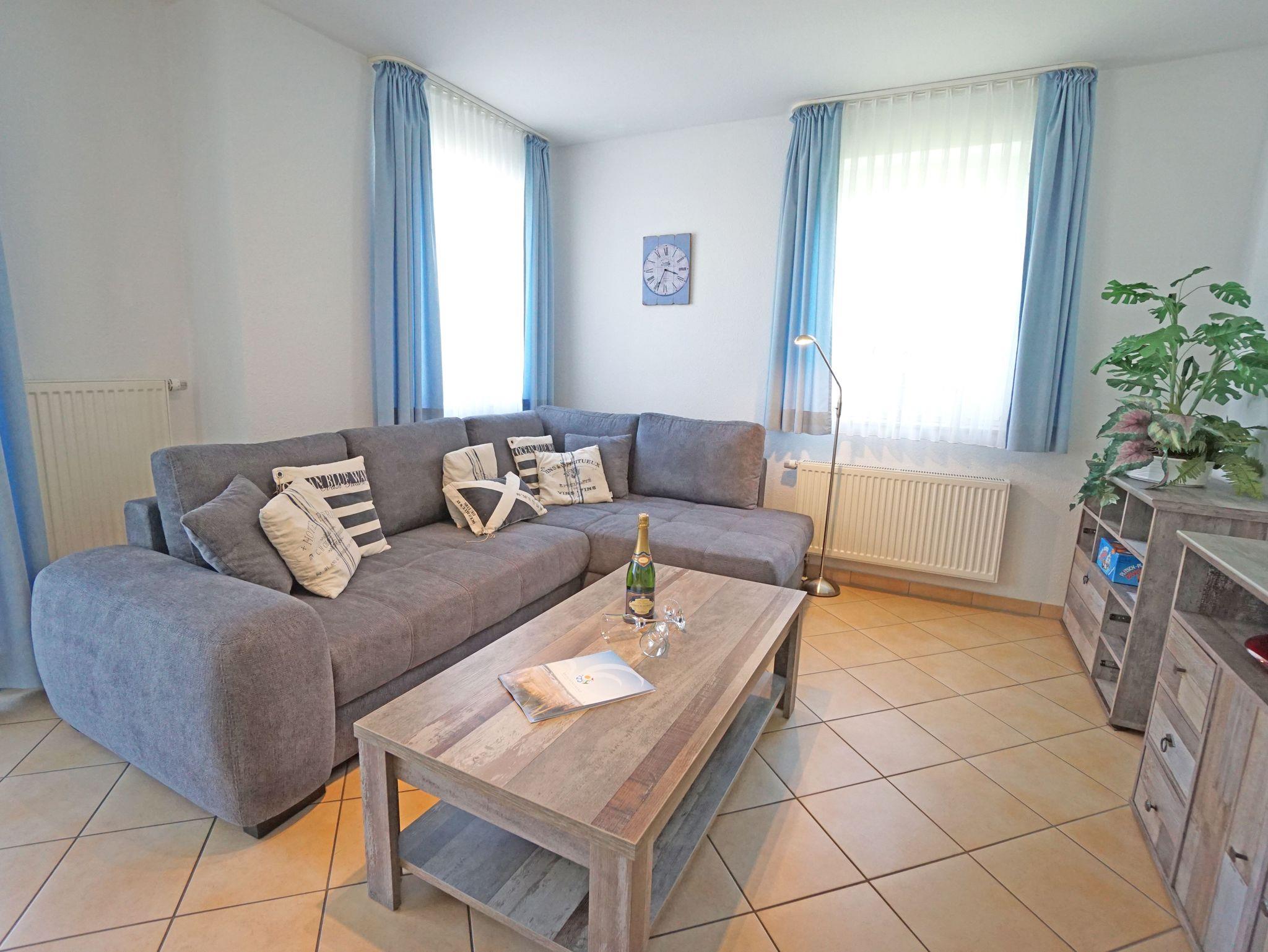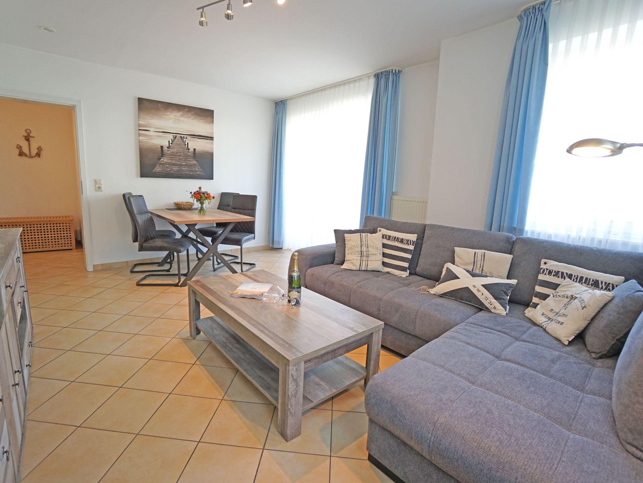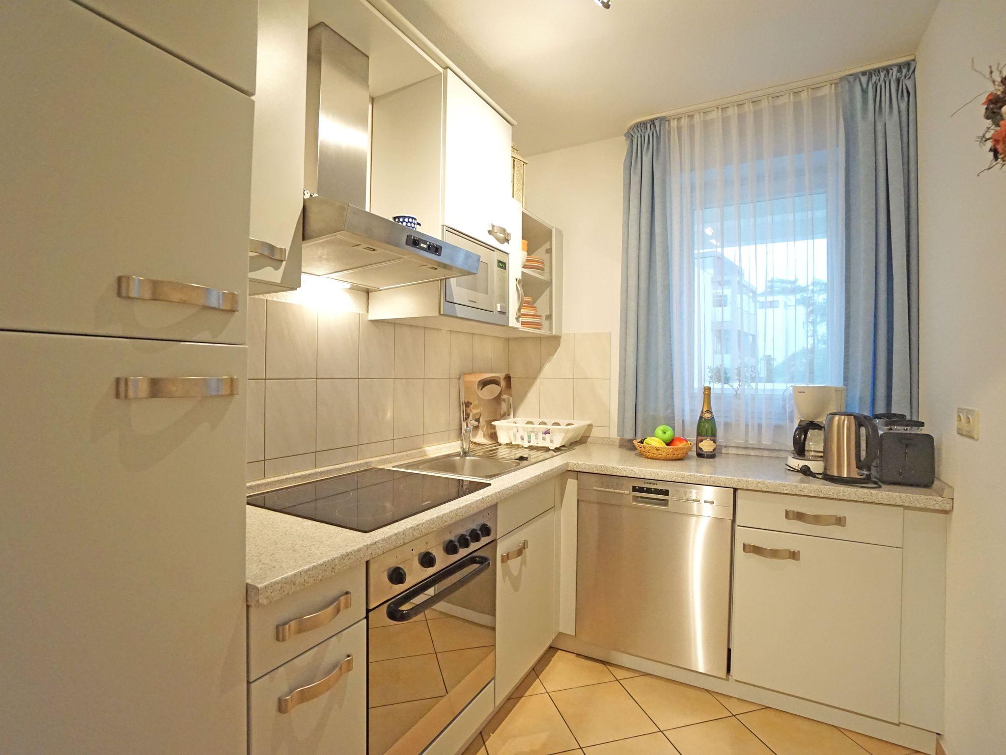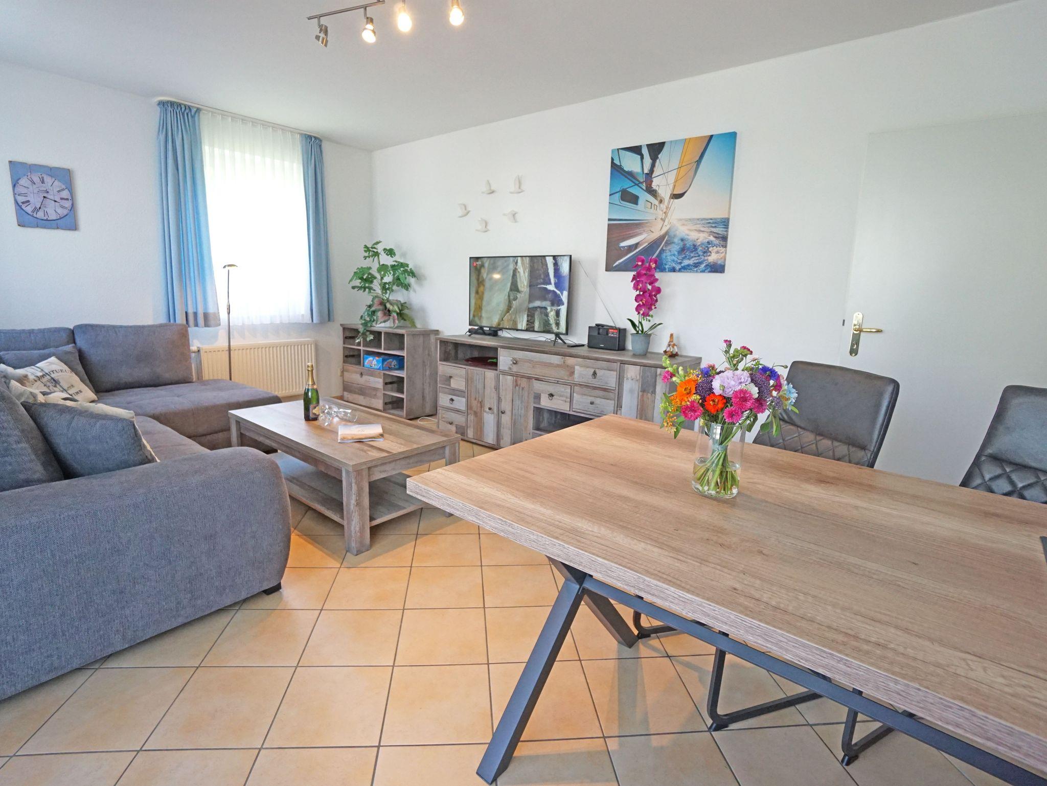 Die gemütliche Zwei-Zimmer-Ferienwohnung Nr. 5 für 2-4 Personen befindet sich im 1. Obergeschoss der Villa Madeleine. Der großzügige Wohnraum ist mit einem Esstisch für 4 Personen sowie einer Schlafcouch und Flachbildfernseher ausgestattet. Vom Wohnraum gelangt man auf den Balkon mit nordöstlicher Ausrichtung. Die separate Küche ist gut ausgestattet und verfügt über einen Backofen mit Ceran-Kochfeld, einen Geschirrspüler sowie Kühlschrank, Kaffeemaschine, Toaster, etc.. Das Schlafzimmer ist mit einem Doppelbett (180x200cm) ausgestattet. Im geräumigen Duschbad (mit Fenster) befindet sich eine Waschmaschine. Ein Pkw-Stellplatz auf dem Grundstück ist der Wohnung zugeordnet. Für Fahrräder und/oder den Kinderwagen steht ein Fahrradschuppen zur Verfügung.