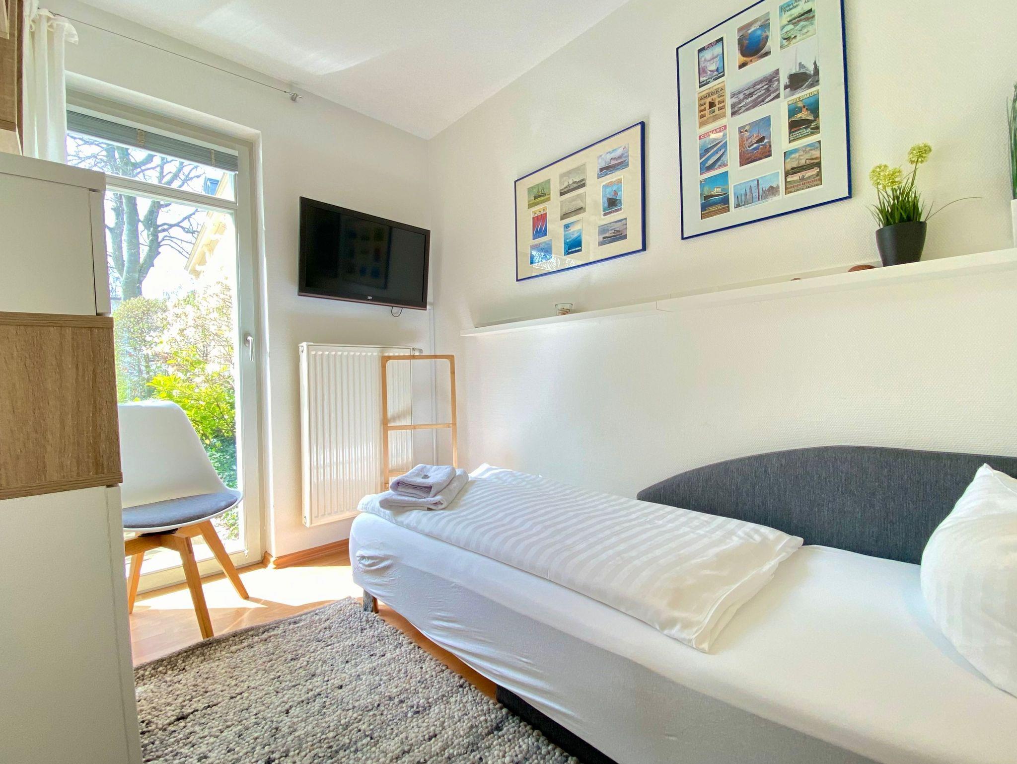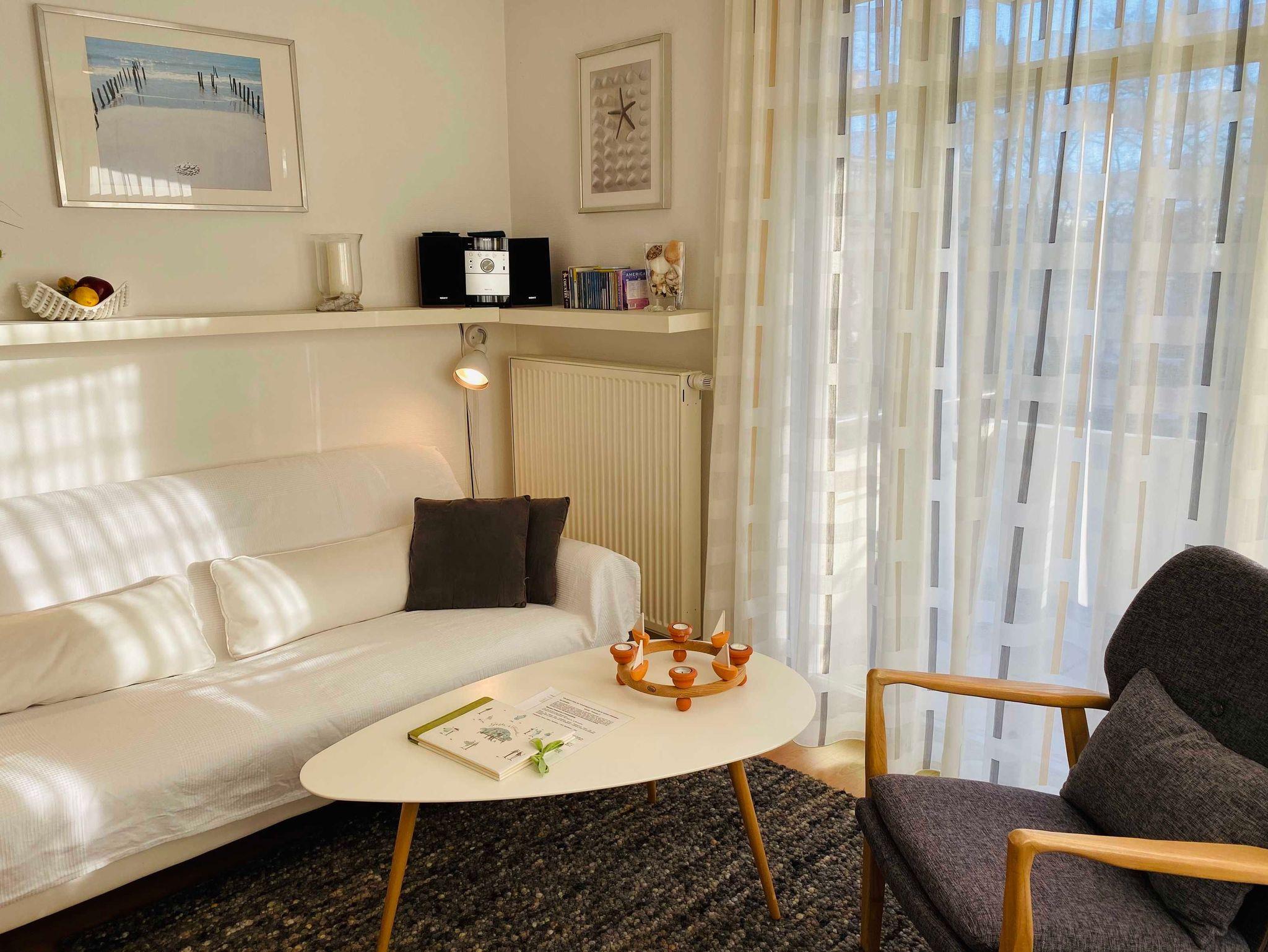 Moderne Ferienwohnung mit Balkon und Parkblick im ruhigen Villenviertel von Heringsdorf.