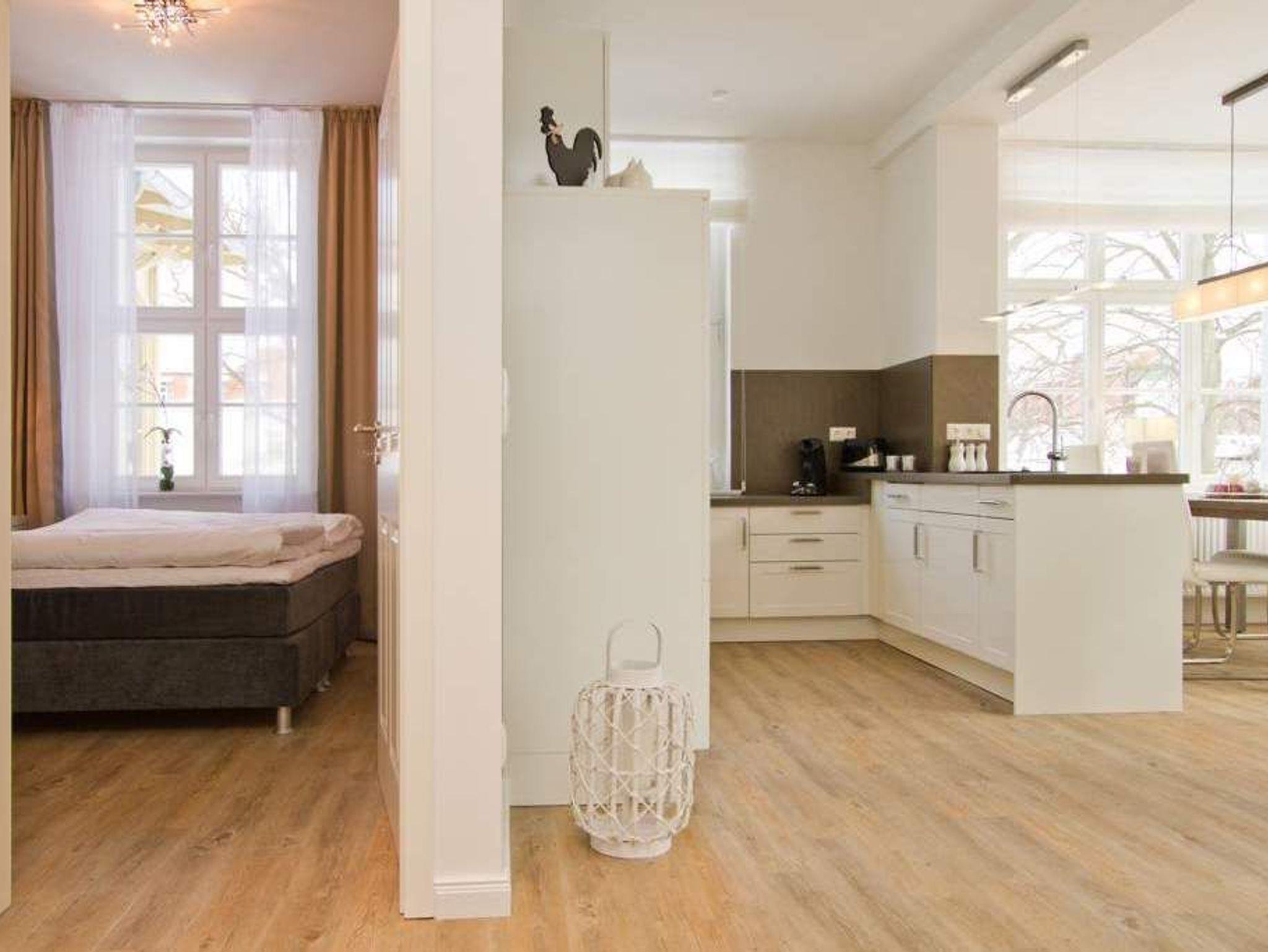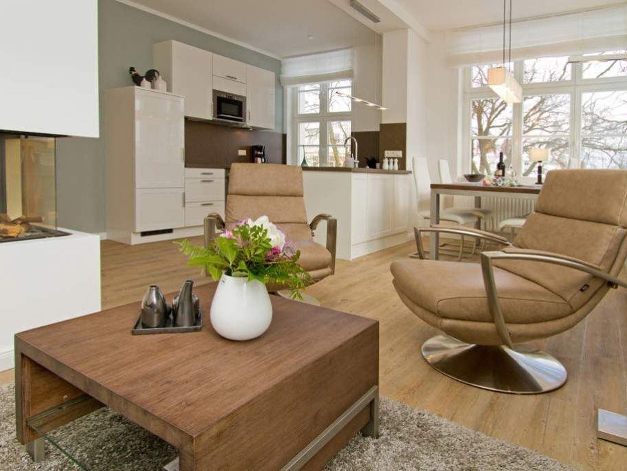 Moderne 3-Raum-Ferienwohnung in Heringsdorf mit Balkon, Gaskamin und kostenfreiem WLAN, nur 500 m vom Strand entfernt.