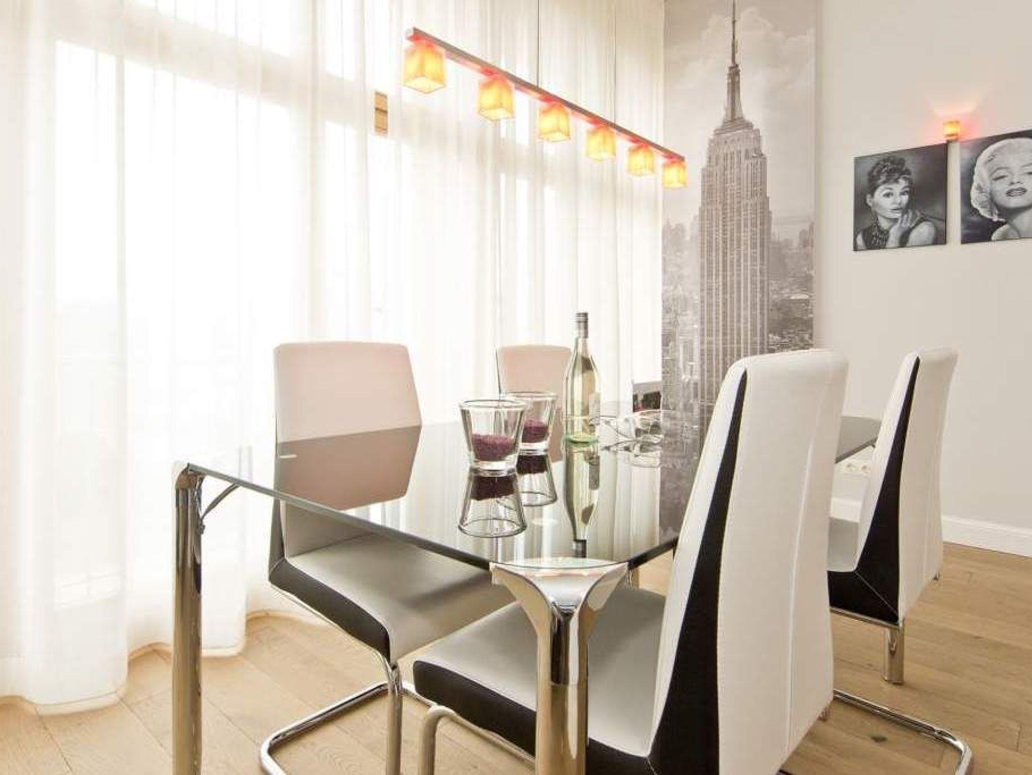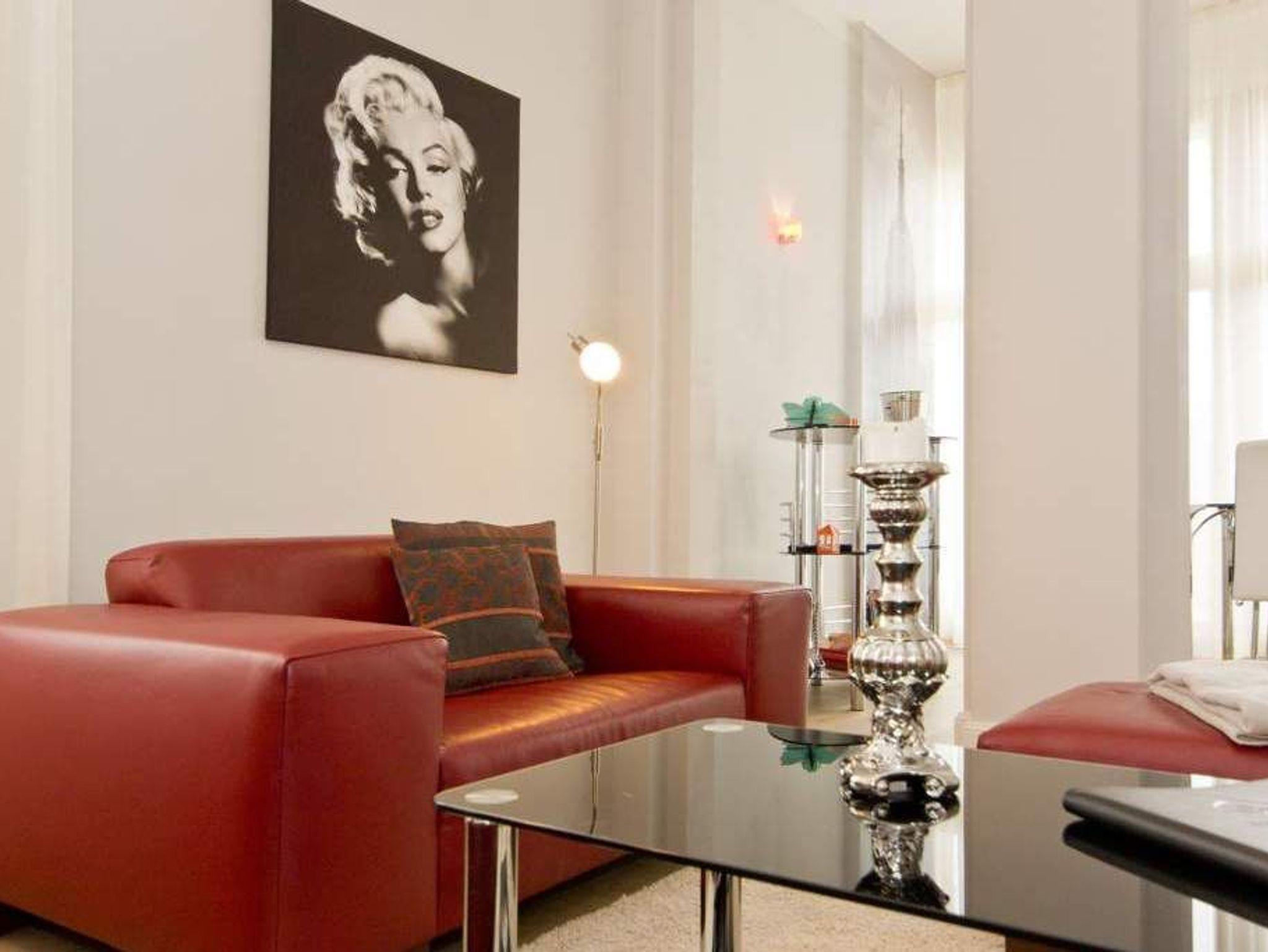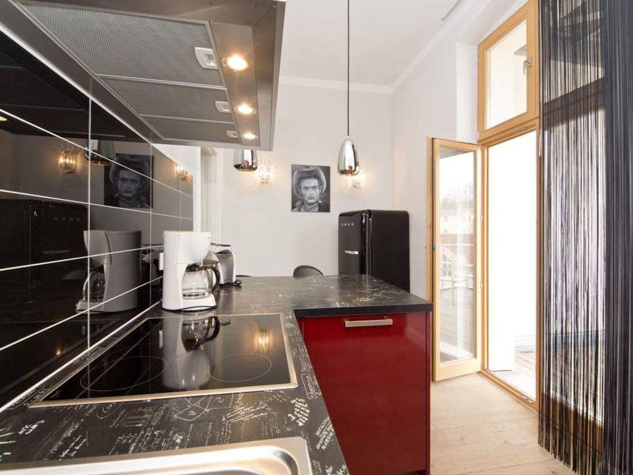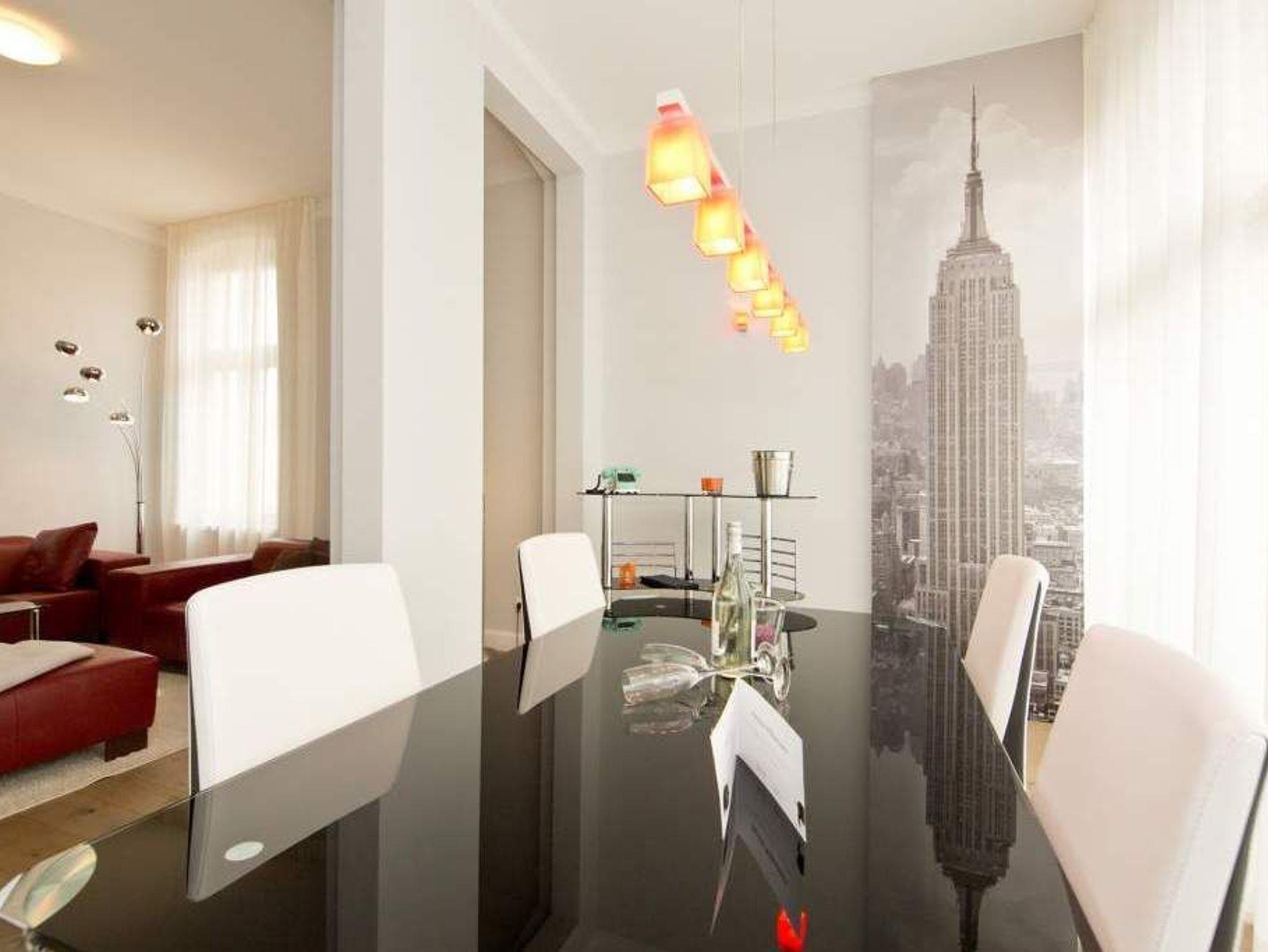 Sie haben eine Vorliebe für Design und Besonderes? Dann heißen wir Sie im AMERICAN STYLE-Appartement Herzlich Willkommen. Diese großzügige 2-Raum-Ferienwohnung ( 75 qm) im 1. Obergeschoss bietet 2 Personen und einem Kleinkind (Babybett /passt nicht ins Schlafzimmer und Hochstuhl zubuchbar) Platz für einen entspannten Urlaub. Der großzügige Wohnbereich unterteilt sich in eine stilechte Ledersitzgruppe mit Flat-TV und den Essbereich in der offenen Veranda. Die rote Küche ist selbstverständlich komplett ausgestattet, von hier hat man auch Zugang zum großen Balkon: Frühstück in der Morgensonne! Auch das Schlafzimmer mit dem Doppelbett (1,60m breit) vor schwarzer Designwand ist ein echtes Highlight. Neben dem stylischen, schwarzgoldenem Wellnessbad mit großer Dusche und WC, steht noch ein Gäste-WC zur Verfügung. Ob großer Kühlschrank, New Yorker Kunst oder eine eigene Bar - trendy mit einer Prise amerikanischem Flair eben. Für Ihren Komfort ist das Appartement mit dem 1. Satz Handtücher ausgestattet und liebevoll bezogen.