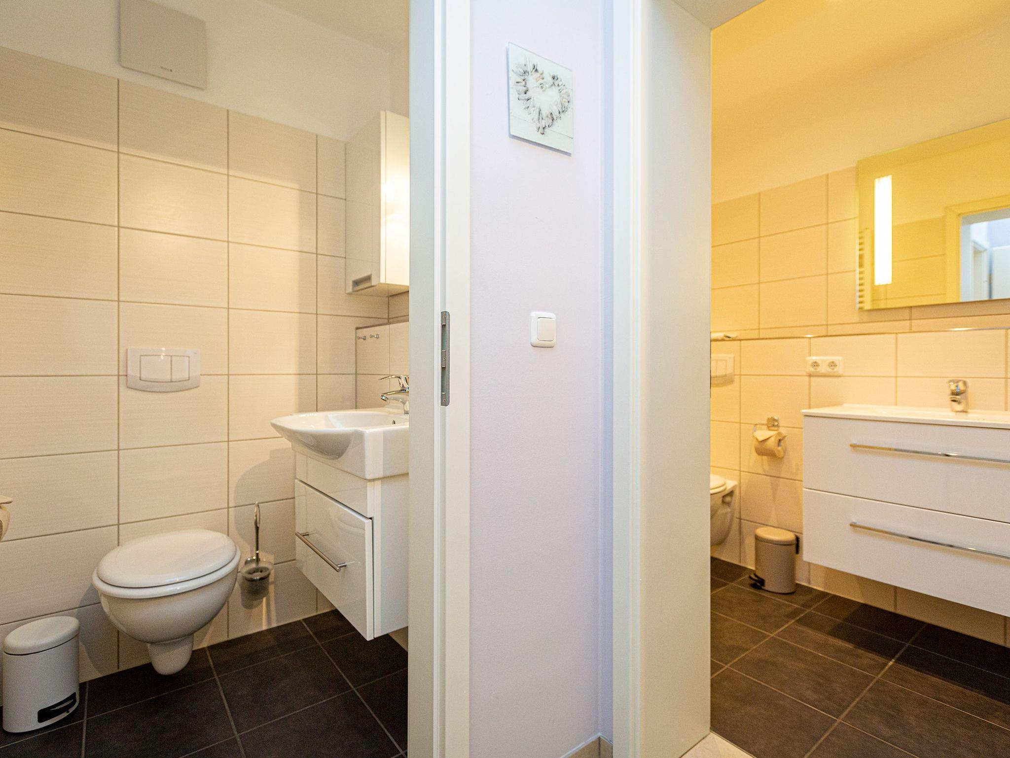 Etwas versteckt, aber dennoch zentral gelegen, empfängt Sie das Domizil am Hang, bestehend aus Haus A [&] Haus B. Es erwarten Sie individuell gestaltete 2- und 3-Raum-Appartements mit Balkonen, Terrassen und hochwertiger Ausstattung. Fu?r beide Ha?user steht eine Tiefgarage zur Verfu?gung, in der fu?r jede Wohnung ein PKW- Stellplatz vorhanden ist. Aus dieser Tiefgarage ist ein Zugang zum Aufzug und zu den Wohnungen des Hauses B möglich (unabha?ngig davon ob man mit oder ohne PKW anreist). Von dort haben Sie Zugang zum Haus A, welches über keinen Aufzug verfügt. Die oberen Appartements sind ausschließlich über Treppen zu erreichen. Bis zum Strand und zur Promenade sind es ca. 400m Fußweg. Im Haus sind die Waschmaschine und Trockner gegen Gebühr nutzbar. Außerdem steht für jede Wohnung ein Briefkasten am Haus zur Verfügung.