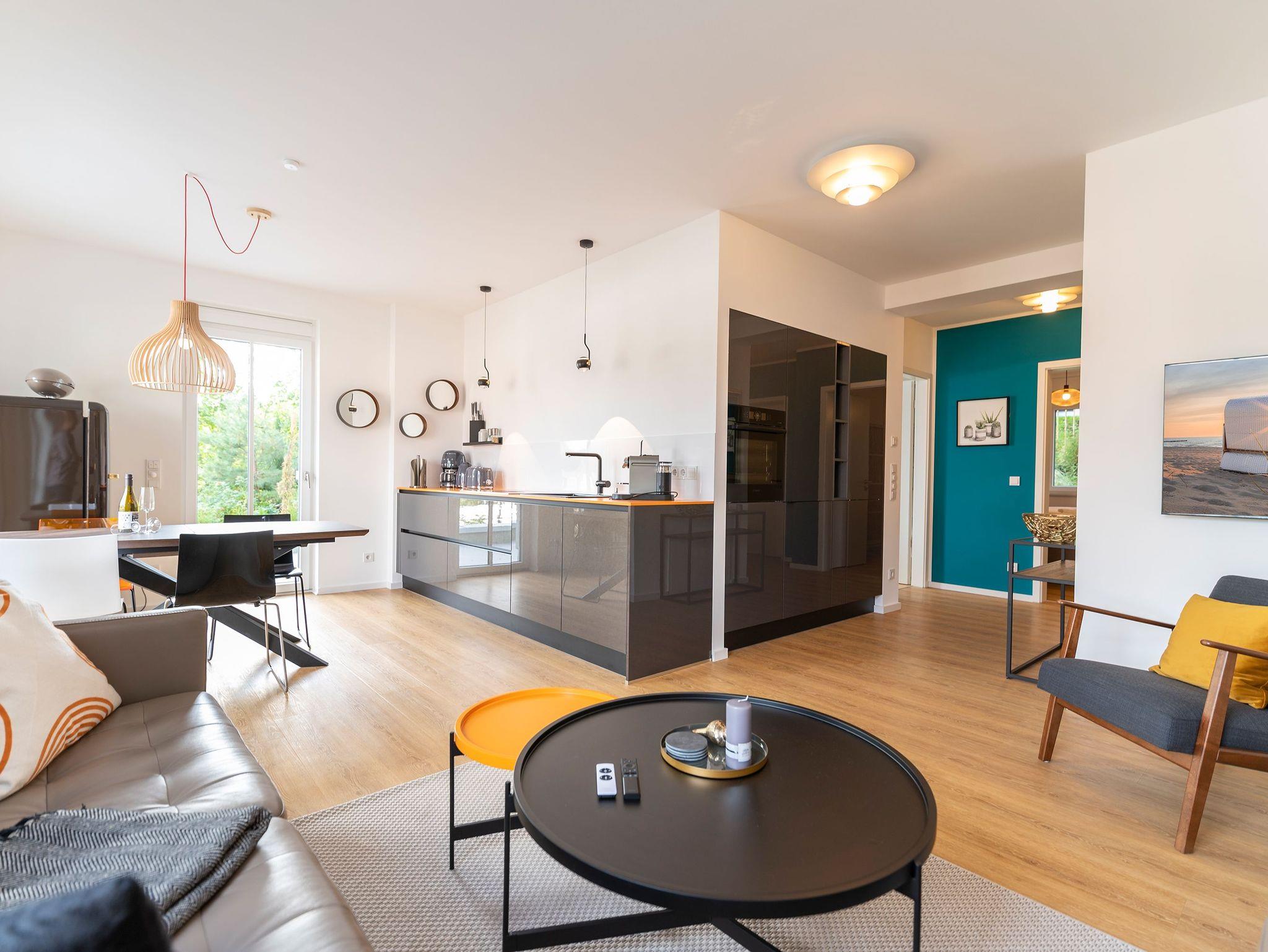 Moderne Ferienwohnung Verdandi 12 in Heringsdorf mit Terrasse, zwei Bädern und WLAN, nur 300 m vom Strand entfernt.
