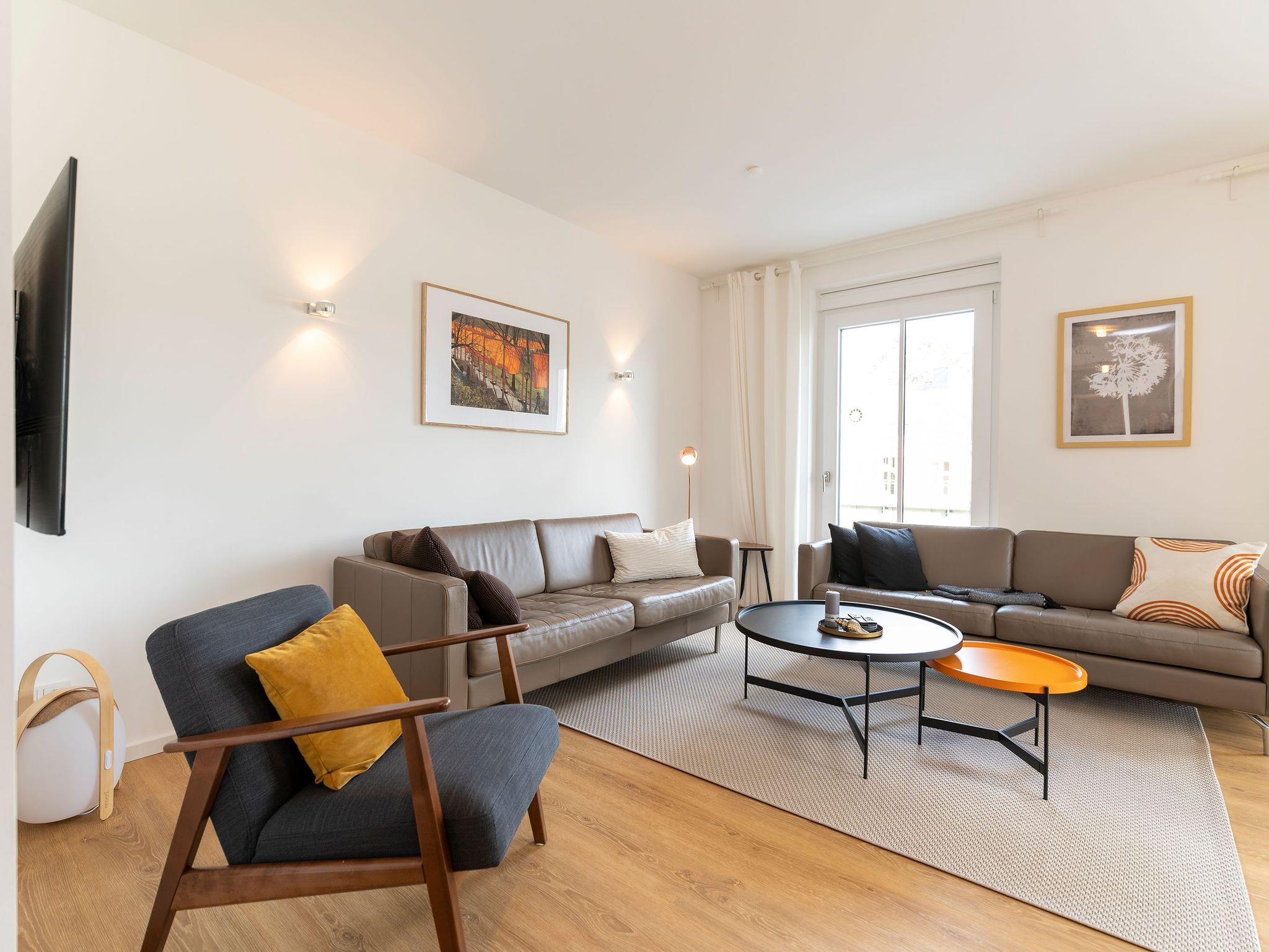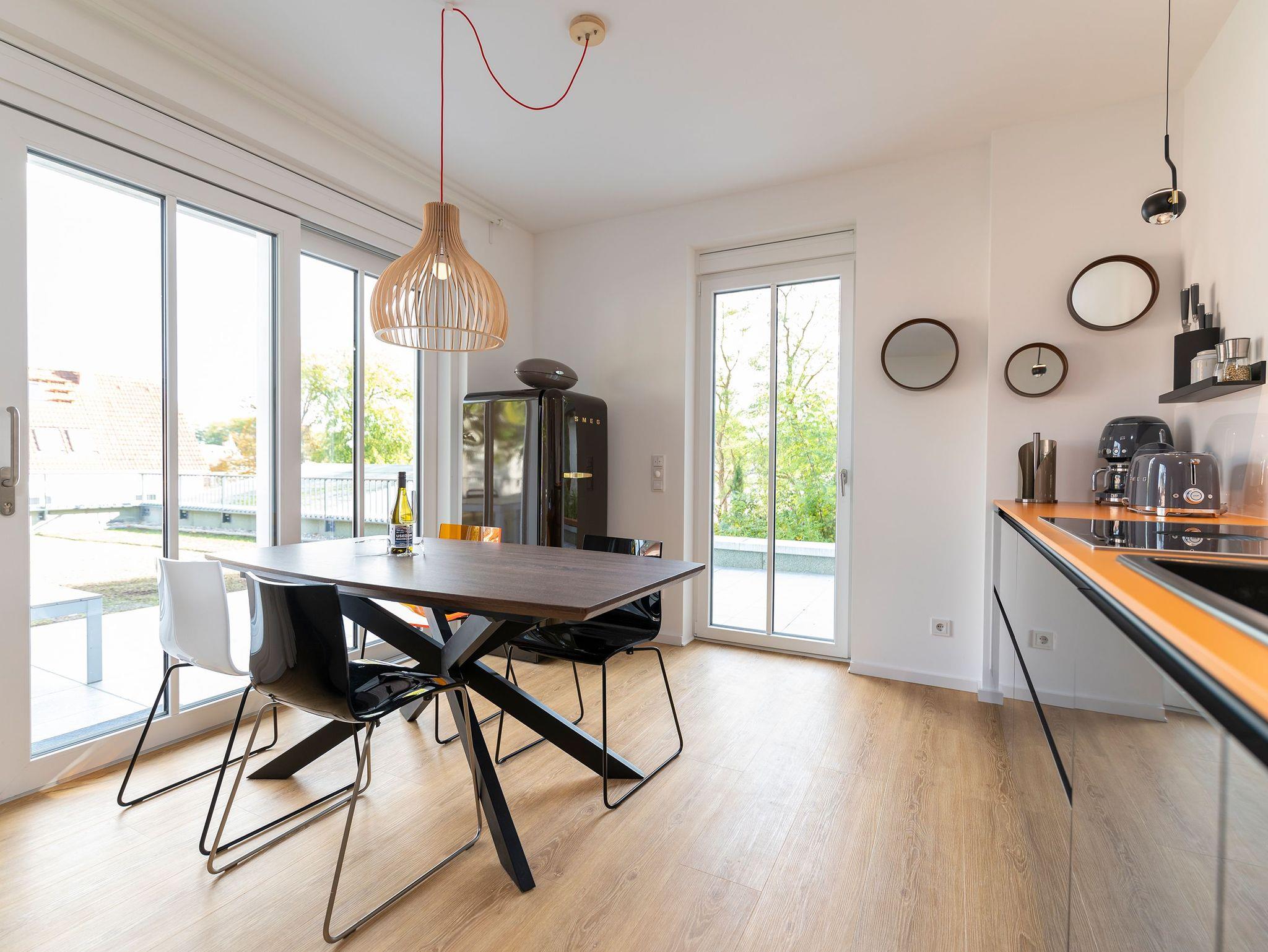 Die 73 Quadratmeter große Wohnung bietet Platz für bis zu vier Personen und ein Kleinkind, und auch Ihr vierbeiniger Freund ist hier herzlich willkommen. Genießen Sie modernen Wohnkomfort in drei stilvoll eingerichteten Zimmern. Der offene und großzügige Wohn- und Essbereich mit seiner voll ausgestatteten Küchenzeile, inklusive Nespressomaschine und Borakochfeld, lädt zum gemeinsamen Kochen und Verweilen ein. Eine Waschmaschine ist für Ihren Komfort ebenfalls vorhanden.
