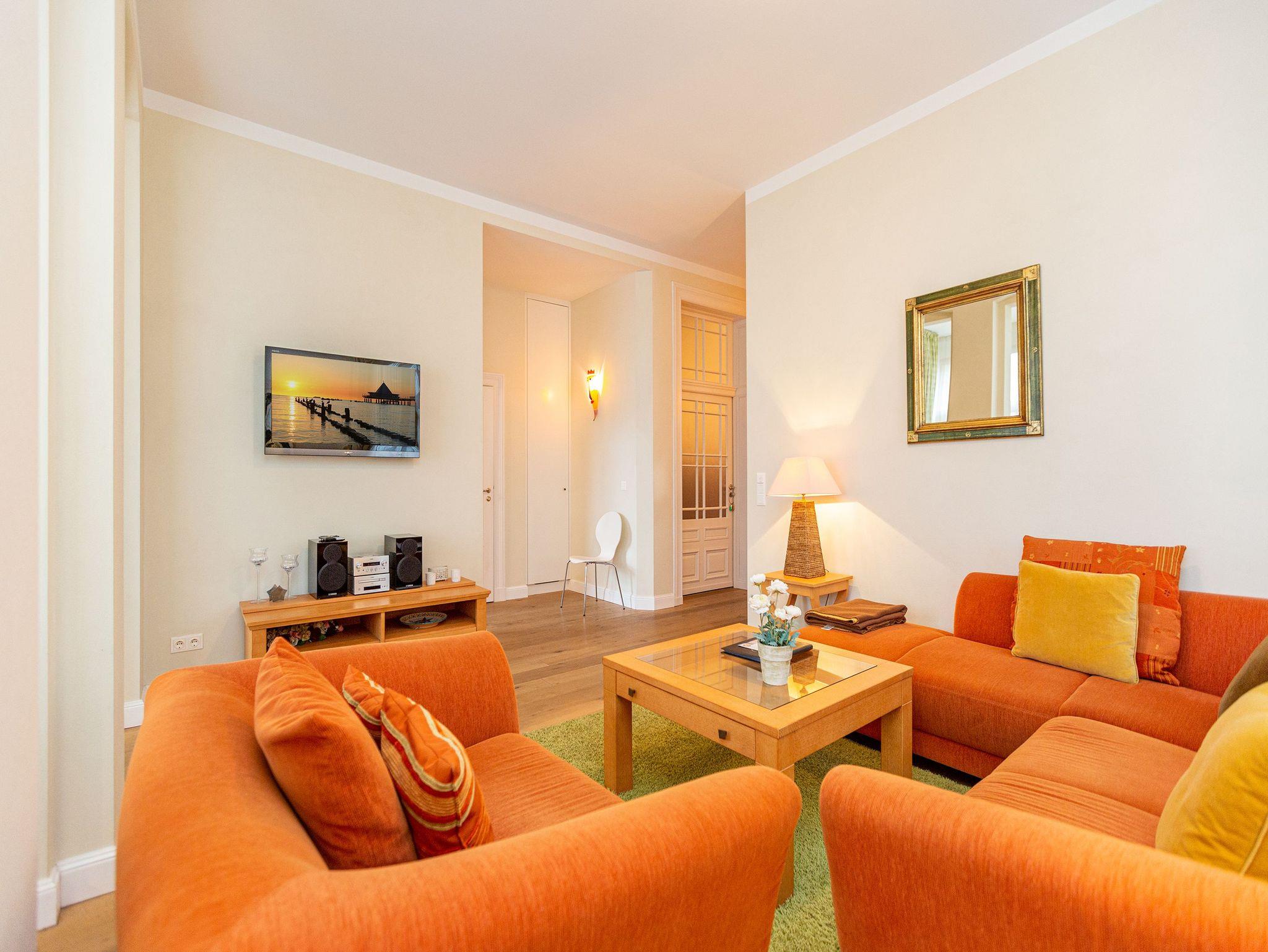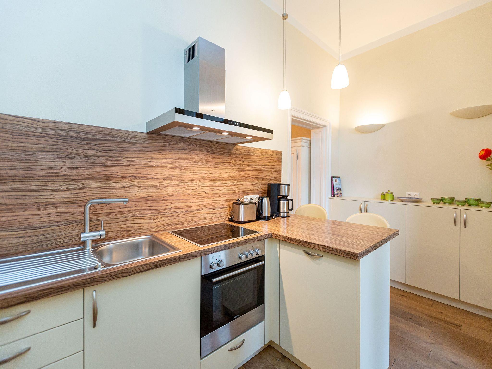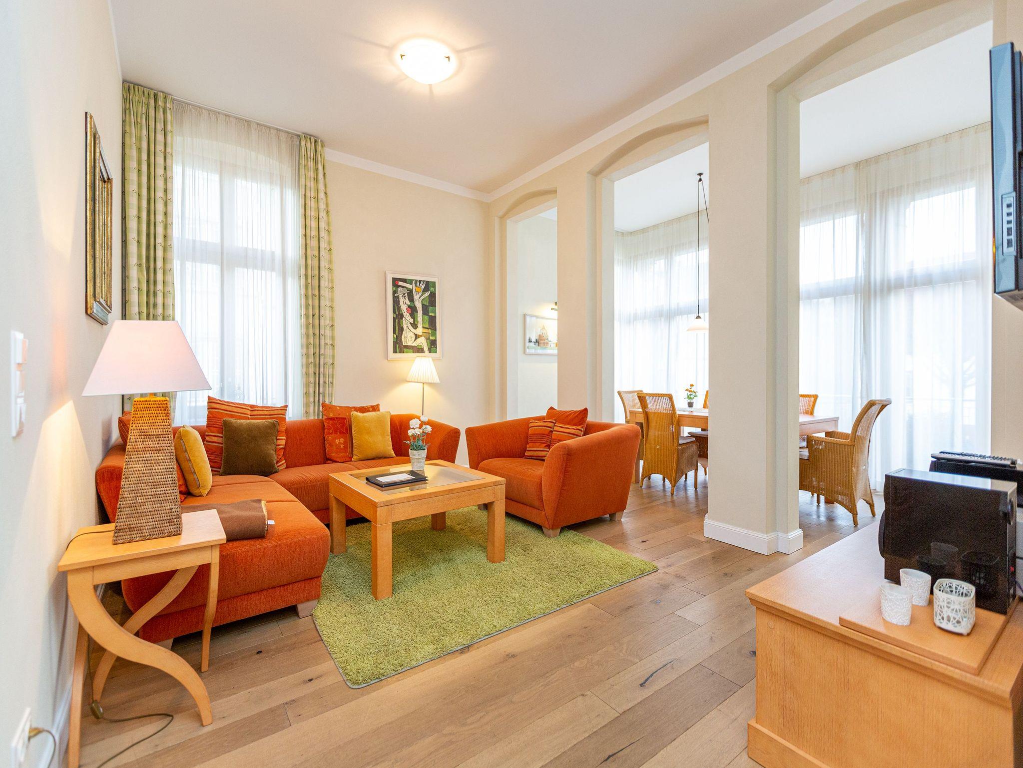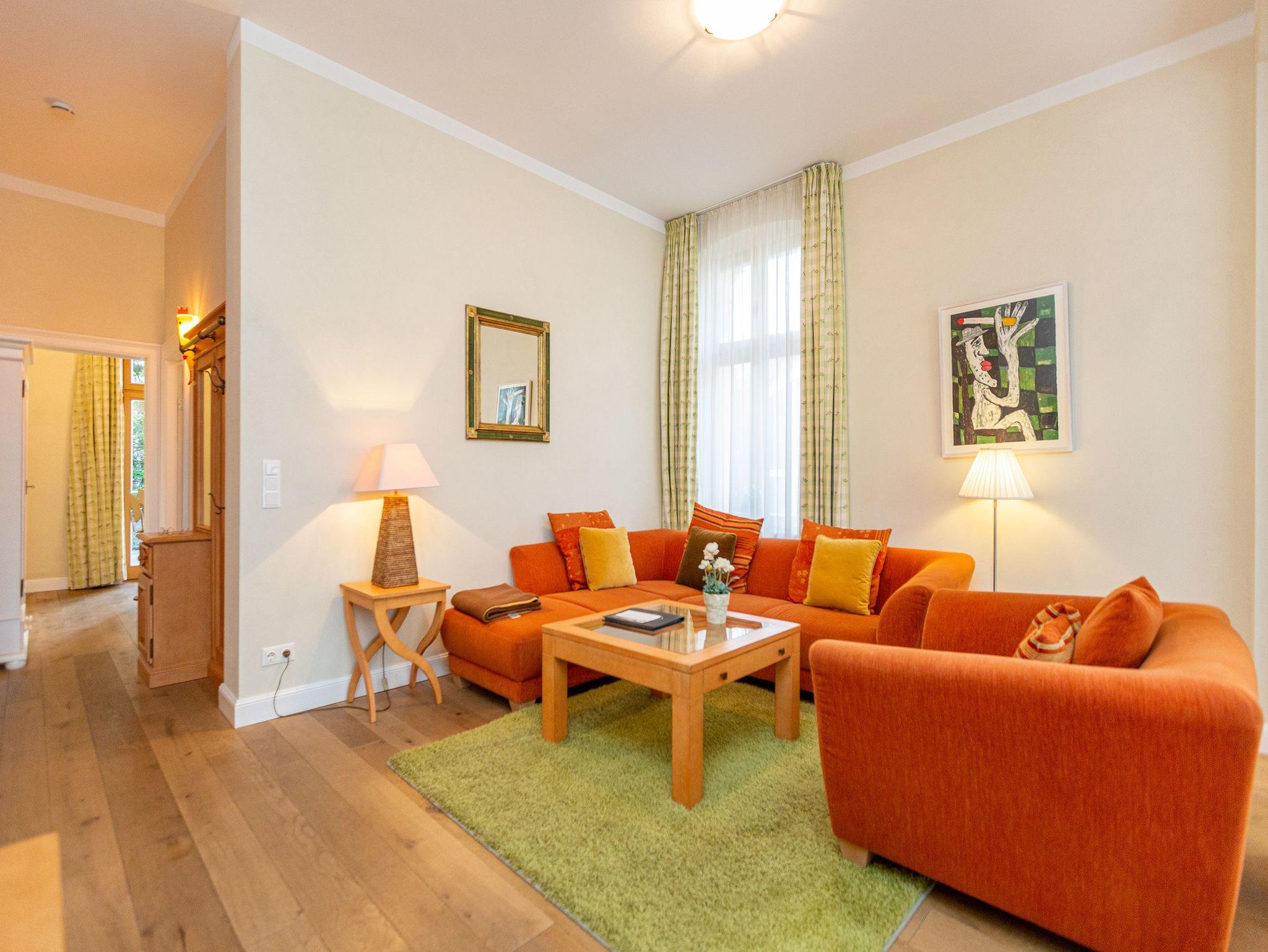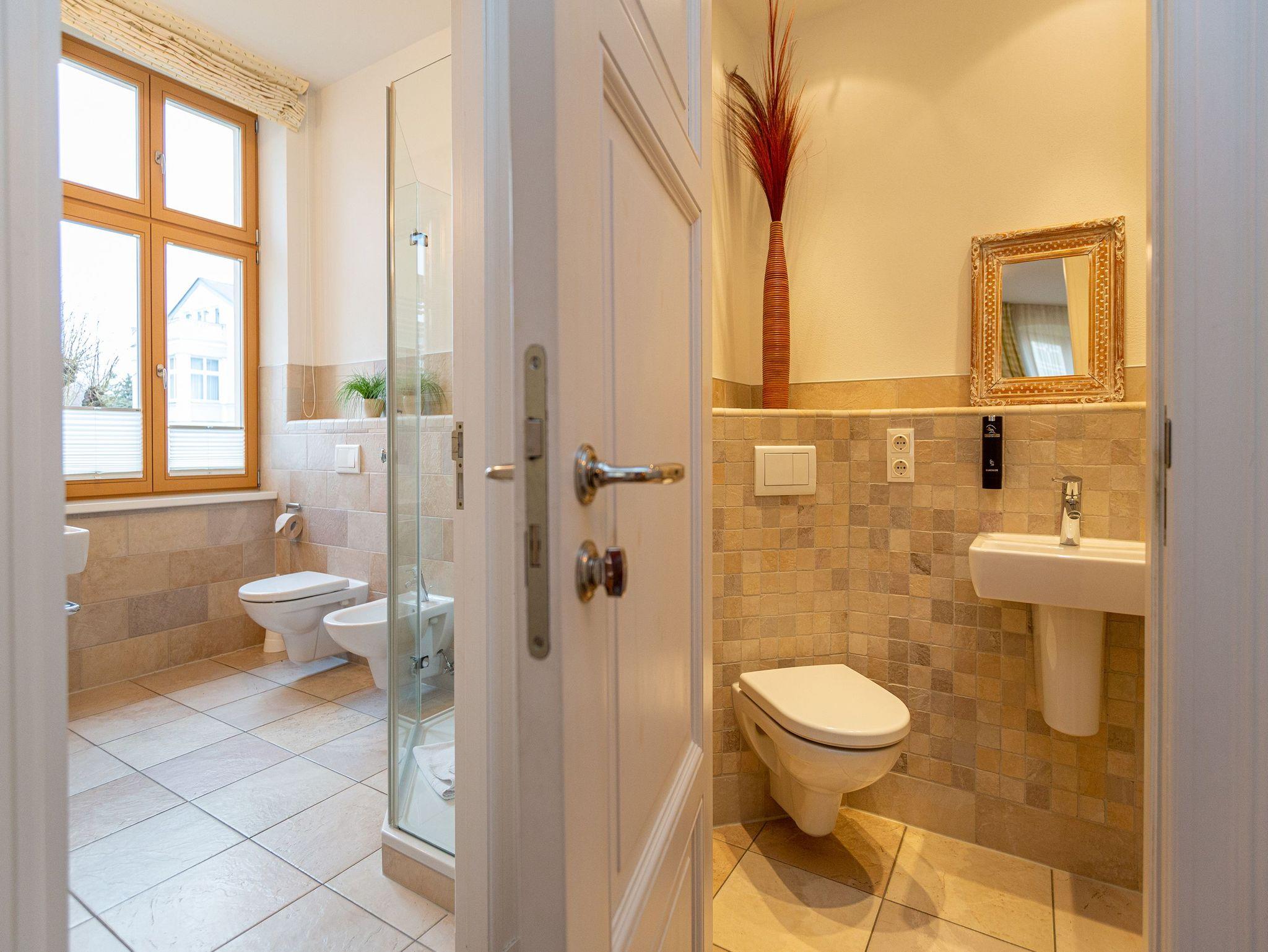 Villa Julius - Freuen Sie sich auf ein Wohnerlebniss der besonderen Art. Eine wunderschöne historische Villa mit großzügigen, stylischen Wohnungen und hochwertigster Einrichtung ist ein passendes Hideaway! Lassen Sie sich begeistern von einem stilvollen Ambiente, das von einer versierten Innenarchitektin gestaltet wurde. Viel Platz und jeglicher Komfort verstehen sich von selbst. Jedes der sechs 2- bzw. 3-Raum-Appartements wurde individuell eingerichtet: Marrakesch, La Mer, American Style... Wohnungen, die sofort Urlaubsatmosphäre versprühen. Auch die wunderschöne Gartenanlage mit einer Grillecke wird Sie begeistern. Das WLAN-Netz im Haus kann kostenfrei genutzt werden. Fahrradständer und ein Pkw-Stellplatz befinden sich am Haus.