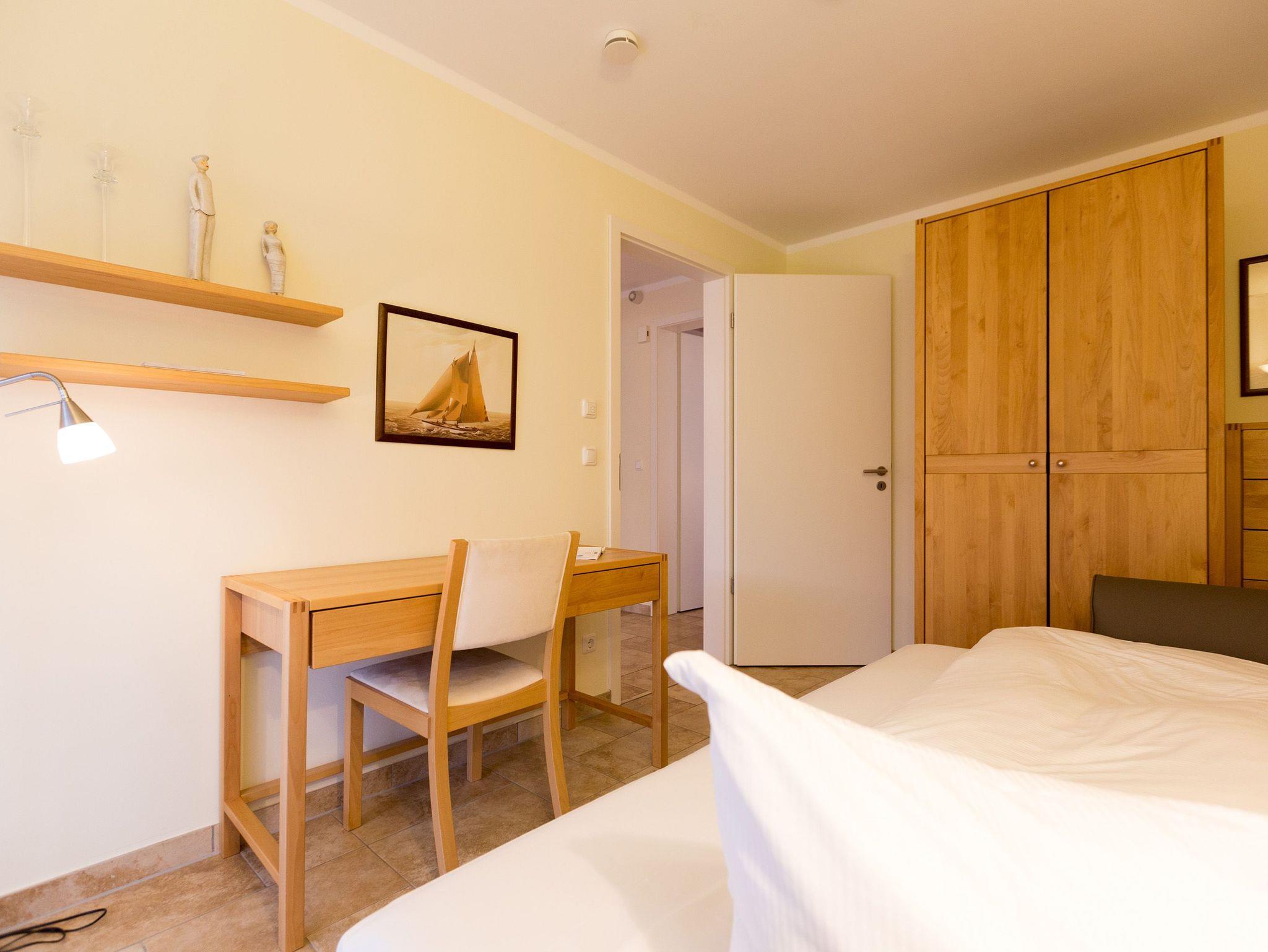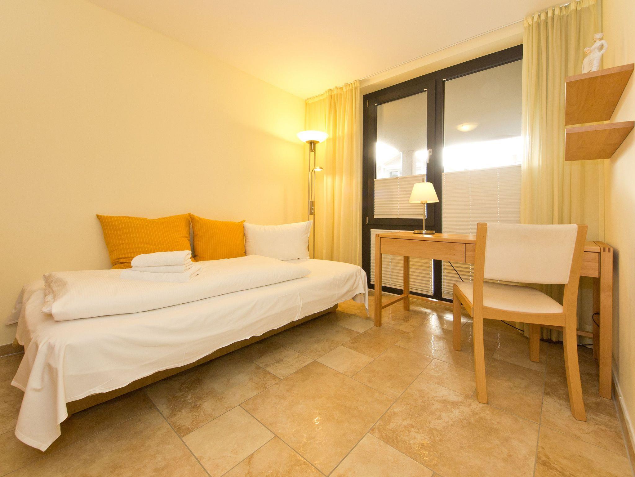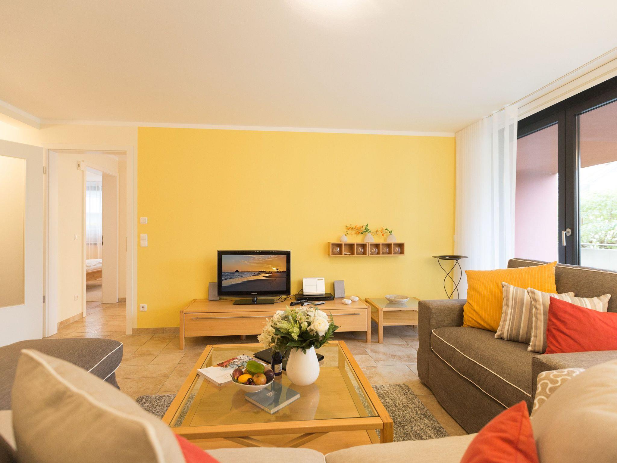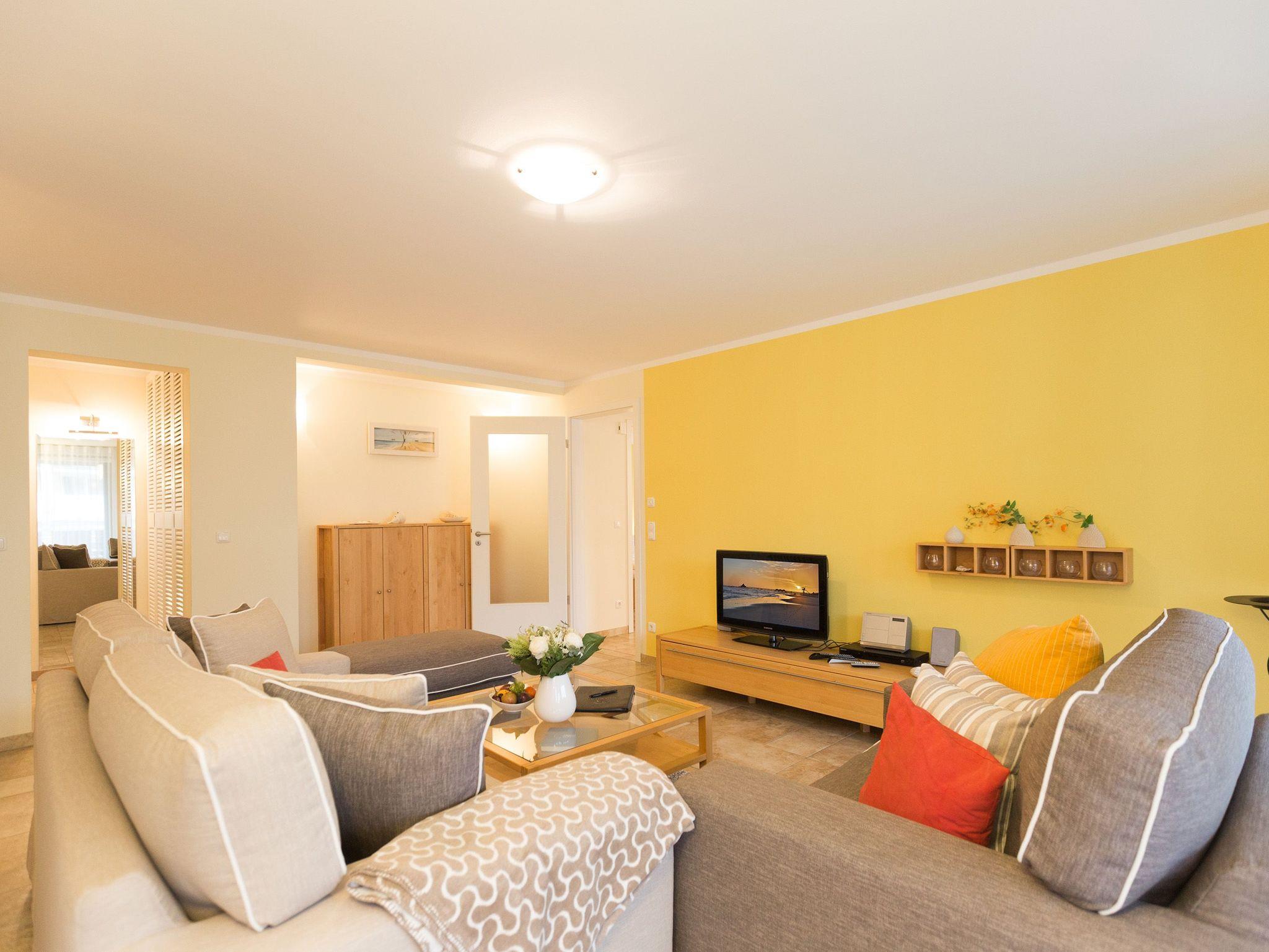 Nicht nur das klassische, hochwertige Interieur des Appartements, sondern auch die Ausstattung dieses Domizils werden Sie überzeugen. Das 3-Raum-Appartement im Hochparterre des Hauses bietet Ihnen mit seinen 75 qm komfortablen Platz für 3 Personen und 1 Kleinkind bis 3 Jahre. Auf Wunsch stellen wir für unsere kleinen Gäste ein Kinderreisebett (ohne zusätzliche Matratze [&] Bettzeug) und einen Kinderhochstuhl zur Verfügung. Für Ihren Komfort sind die Betten bei der Anreise bezogen und Handtücher liegen bereit. Der Wohnraum ist großzügig geschnitten und erstrahlt in hellen Farben. Der Essbereich und die Küchenzeile wurden durch eine offene Holzkonstruktion gekonnt vom Wohnbereich separiert. Vom Wohnzimmer gelangen Sie auf Ihre ca. 30 qm große Terrasse, die zur Südseite ausgerichtet ist. In diesem Domizil finden Sie zwei Schlafbereiche. Ein Schlafbereich ist mit einem komfortablen Doppelbett und der zweite Schlafbereich mit einer Schlafcouch (1.40m x 2.00m) ausgestattet. Zur Wohnung gehört ein PKW-Stellplatz in der Tiefgarage, außerdem gibt es eine Waschmaschine in der Wohnung. Das WLAN-Netz kann kostenfrei genutzt werden. Für den Tag am Meer steht Ihnen als besonderes Bonbon von Mitte Mai bis Ende September (je nach Witterung) ein Strandkorb am Strand kostenlos zur Verfügung.