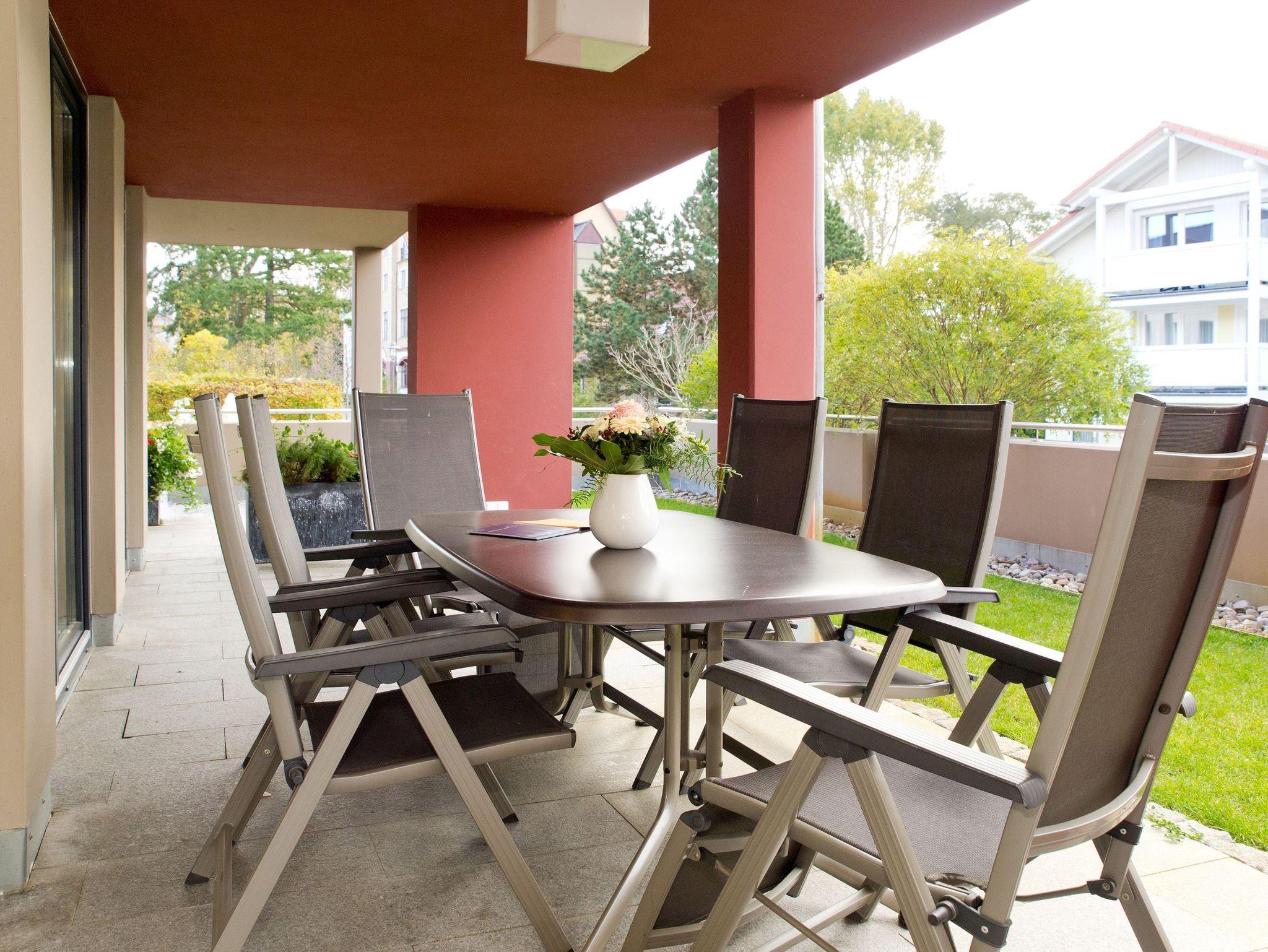 Hochwertiges 3-Raum-Apartment mit Terrasse und Strandkorb in Heringsdorf, ideal für Familien mit Kleinkind.