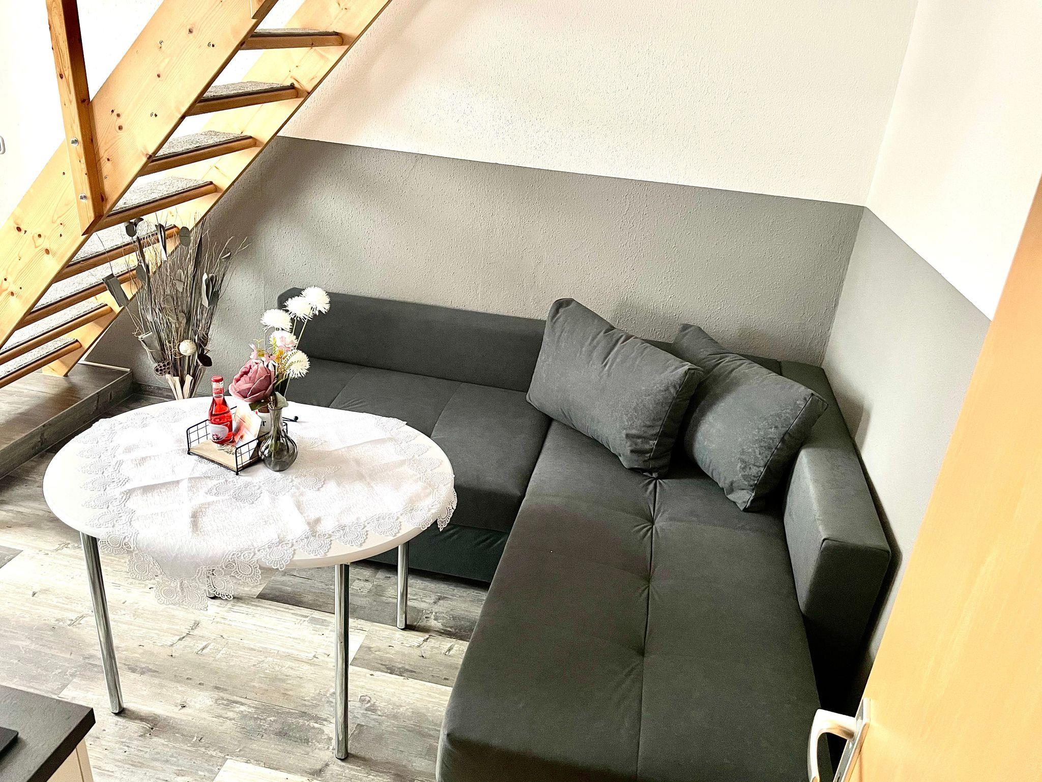 Die gemütliche Ferienwohnung geht über zwei Etagen und ist ca. 40qm groß. Sie ist ideal für zwei Erwachsene geeignet.
