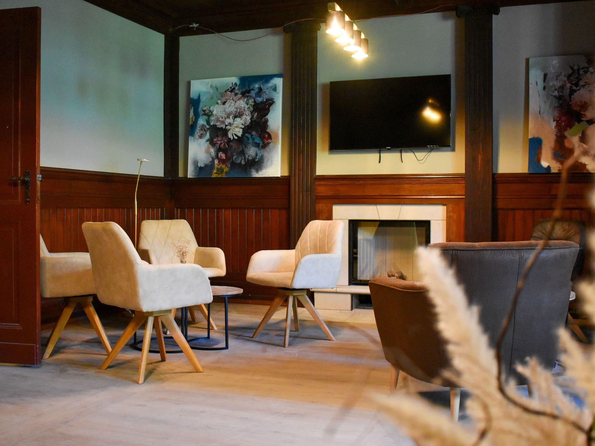 Eine Raumgröße von 54m² + 14m² Balkon; Großer Tisch mit 12 Stühlen;2 Sofas & Sesseln; Echter Kamin mit Holz zum Heizen; Toilette auf dem Flur