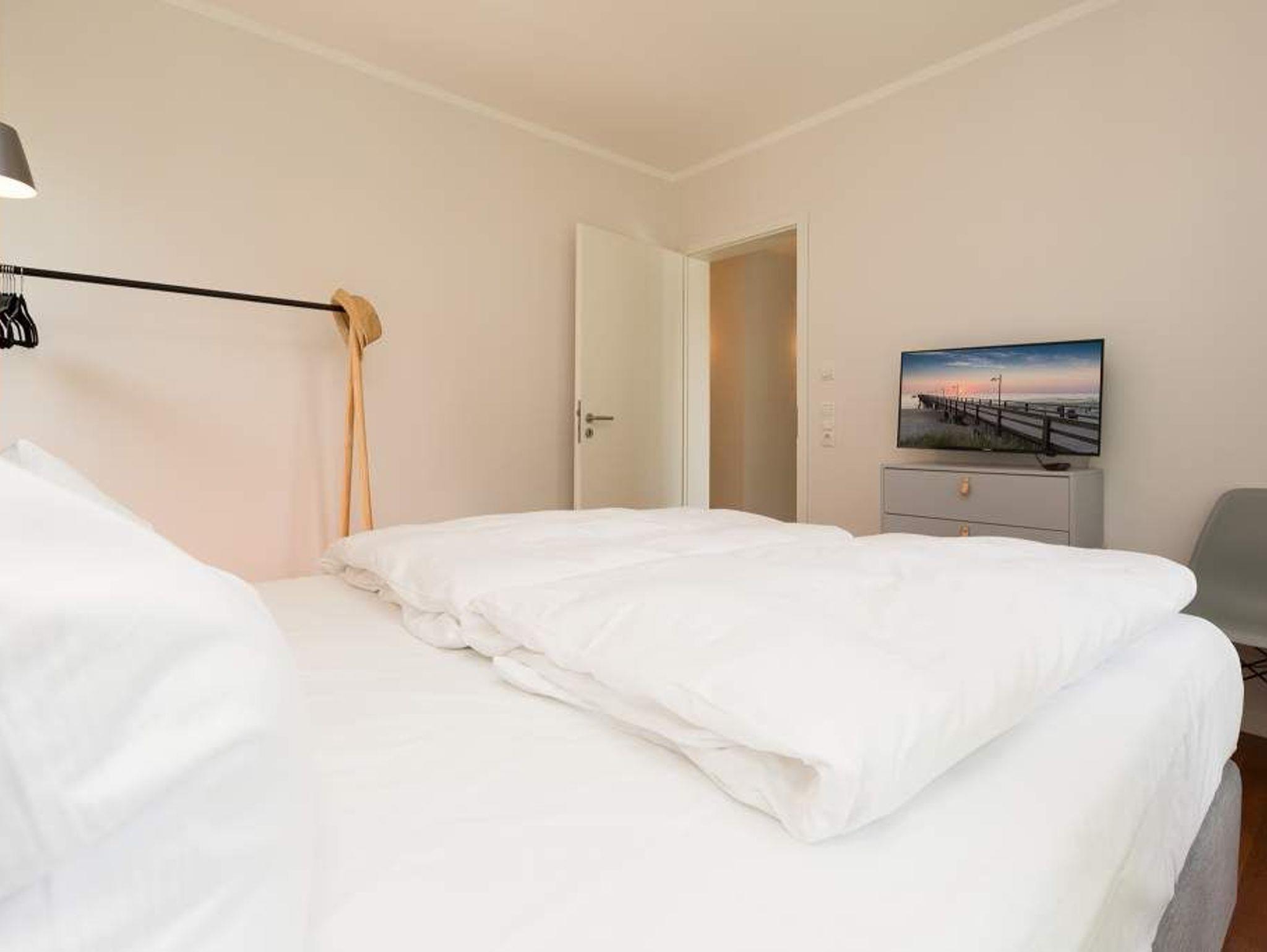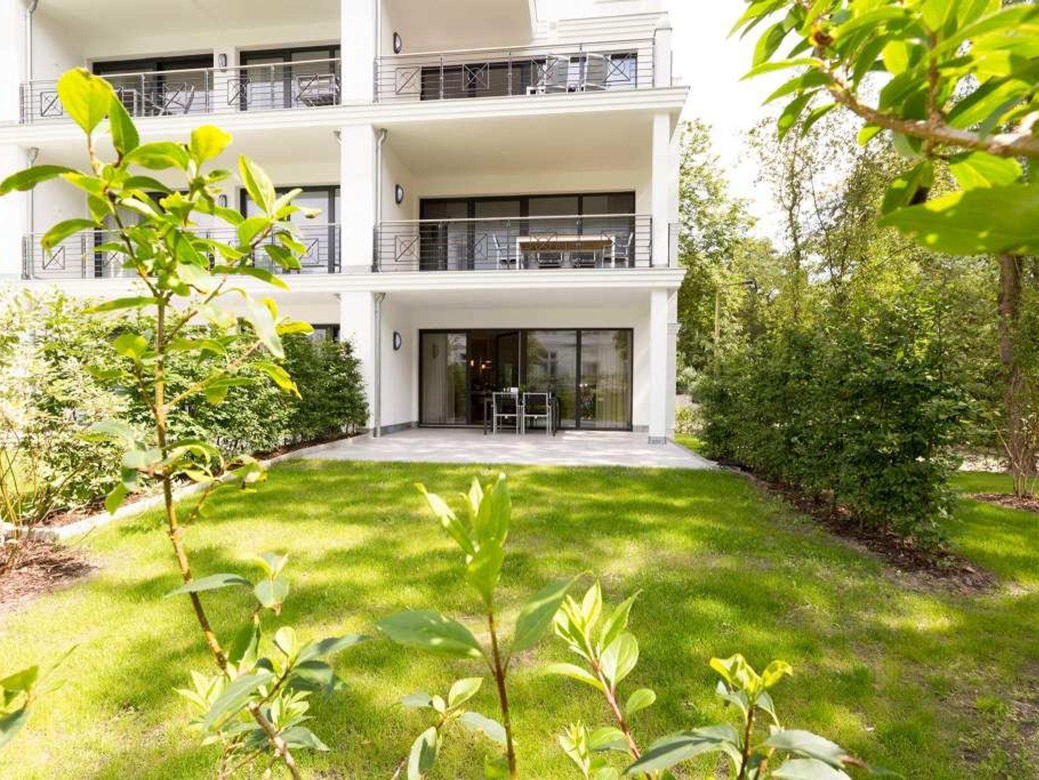 Zurücklehnen, die Beine ausstrecken, ein kühles Getränk vor sich auf dem Tisch, den Blick über das üppige Grün des Gartens schweifen lassen. Urlaub für die Seele. In der Wohnung Nummer 3 in der Villa Strandgrün ist das möglich. Egal ob auf der 30 Quadratmeter großen Gartenterrasse, im lichtdurchfluteten und mit Design-Möbeln eingerichteten Wohnzimmer oder der wohnungseigenen Panorama-Sauna ? in den 80 Quadratmetern dieses Ferienappartements wird das Wohlfühlen und Entspannen leicht gemacht. Vier Personen und ein Kleinkind (im Kinderreisebett) haben hier viel Platz zum Durchatmen. Schlicht, aber nobel ist Ihr Urlaubsdomizil vom Ledersofa, über die beiden Butterfly Sessel, die ausgefallene Bogenlampe bis hin zum behaglichen Musterteppich geprägt vom skandinavischen Design. Der Kaminofen sorgt an kühlen Tagen für wohlige Behaglichkeit. Der 49 Zoll-Flat-TV mit Blue Ray-Player ist ein echter Hingucker. Ein Highlight des Wohnzimmers, an das sich eine offene und hochwertig ausgestattete Küche anschließt, ist der große Echtholztisch mit den Vintage-Schalenstühlen. Für einen erholsamen und traumreichen Schlaf sorgen in den beiden Schlafzimmern die komfortablen Doppelboxspringbetten (1,60m x 2,00 m). In einem Schlafzimmer gibt es in den eigens angefertigten Einbauschränken reichlich Ablagemöglichkeiten. Beide Schlafzimmer verfügen ebenfalls über Flat-TVs. Eine Panoramasauna in einem der beiden geräumigen Bäder sorgt für den absoluten Wellnessgenuss. Beide Bäder haben darüber hinaus jeweils Dusche, Waschtisch und WC. Sogar eine Waschmaschine mit Trockner ist hier zu finden. Damit Sie sich so richtig entspannen können, sind die Betten bezogen und Handtücher liegen für Sie bereit. In der Tiefgarage ist ein Stellplatz reserviert. Für den Tag am Meer steht Ihnen ein Strandkorb am Strand von Mitte Mai bis September (je nach Witterung) zur Verfügung.