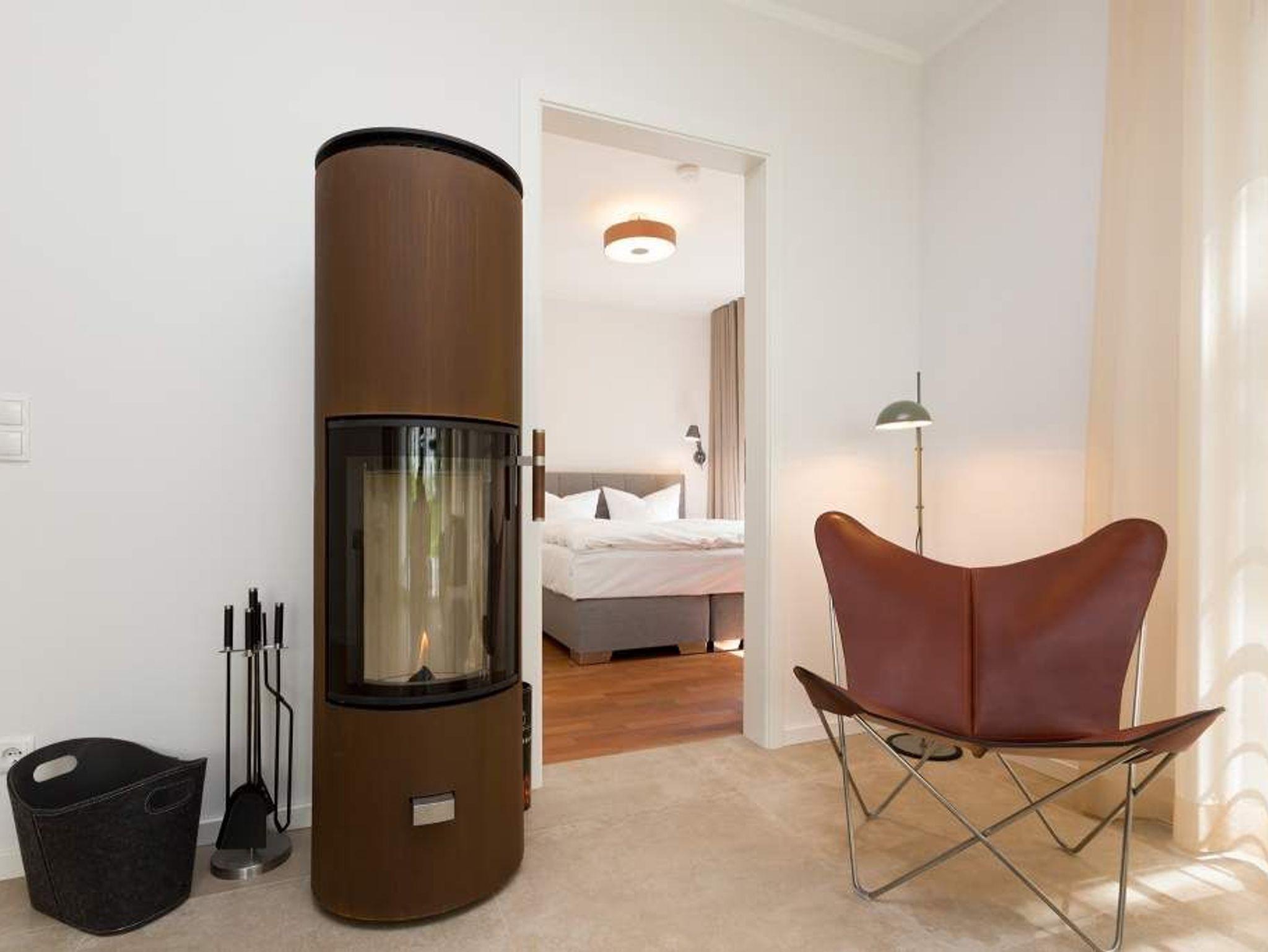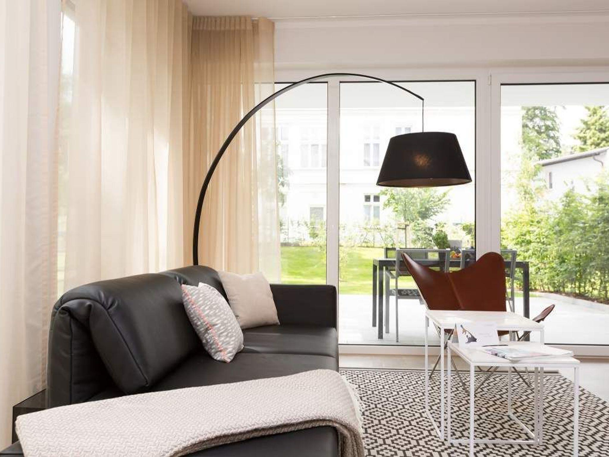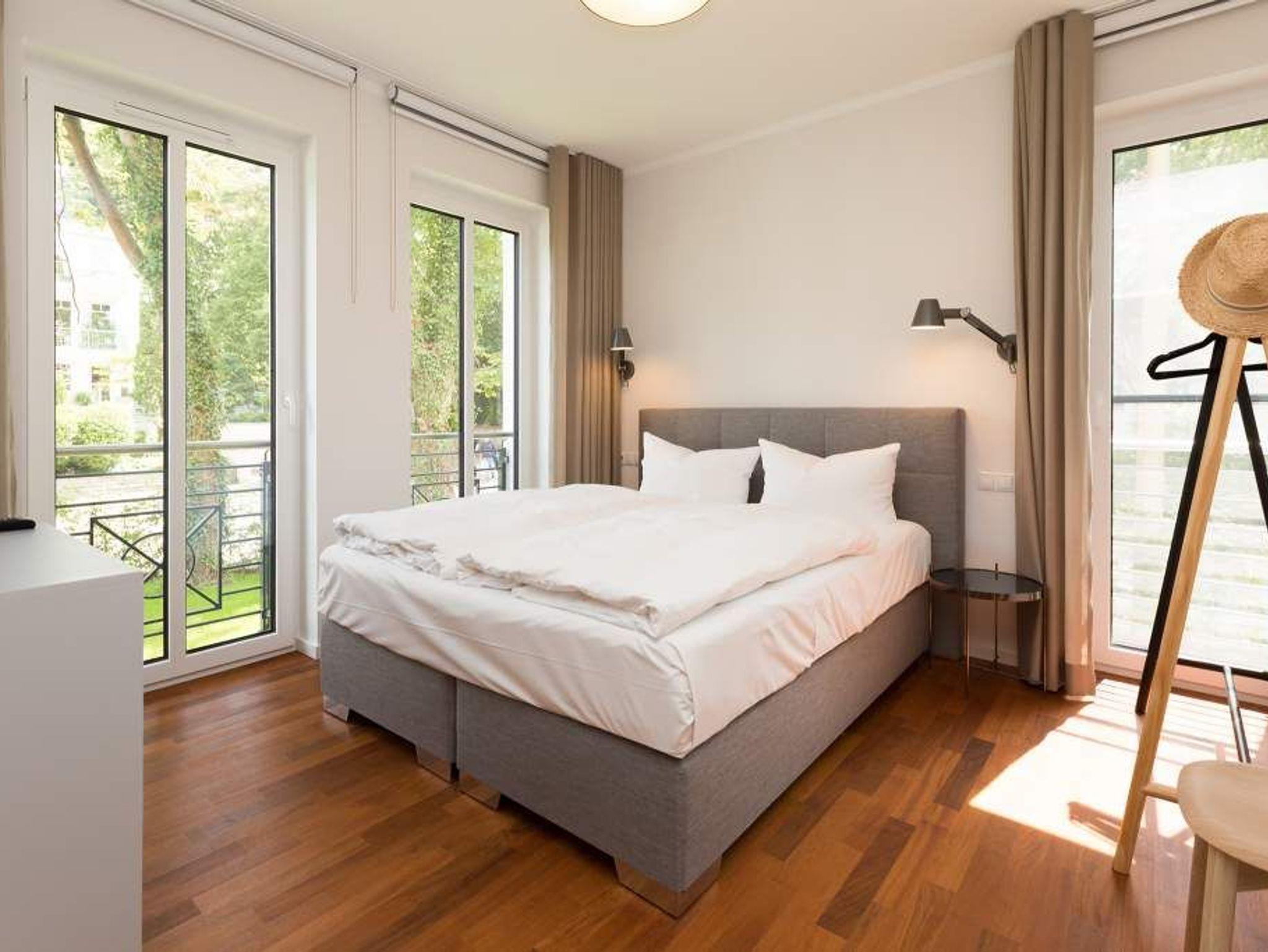 Vogelzwitschern und das sanfte Rauschen der Ostsee: Umgeben von wunderschönen, alten Bäumen atmet die 2017 fertig gestellte Villa Strandgrün das Flair der sie umgebenden Bädervillen. Mit seinen Balkonen und Erkern, die die Fassade untergliedern und auflockern, passt sich das strandnahe (100 Meter) Urlaubsdomizil angenehm in das Bild der aufwendig sanierten Villen um sie herum ein und wirkt selbst wie eine Weiterführung der einst mondänen Architektur des 19. Jahrhunderts. Das stilvolle Äußere setzt sich im exklusiven und eleganten Wohndesign im Inneren fort. Jede Ferienwohnung verfügt über eine Sonnenterrasse oder mehrere Balkone. Besondere Highlights eines jeden Appartements sind der Kamin, eine Sauna und je zwei Bäder bzw. ein zusätzliches Gäste WC. Die großzügigen 3- und 4-Raum-Suiten wurden mit allem Komfort konzipiert und ausgestattet. Vom ASA-Geschirr bis zu den hochwertigen Designmöbeln steht das Wohlfühlen an erster Stelle. In der Tiefgarage gibt es für jedes Appartement einen Stellplatz. Außerdem steht für jede Wohnung ein Briefkasten am Haus zur Verfügung.
