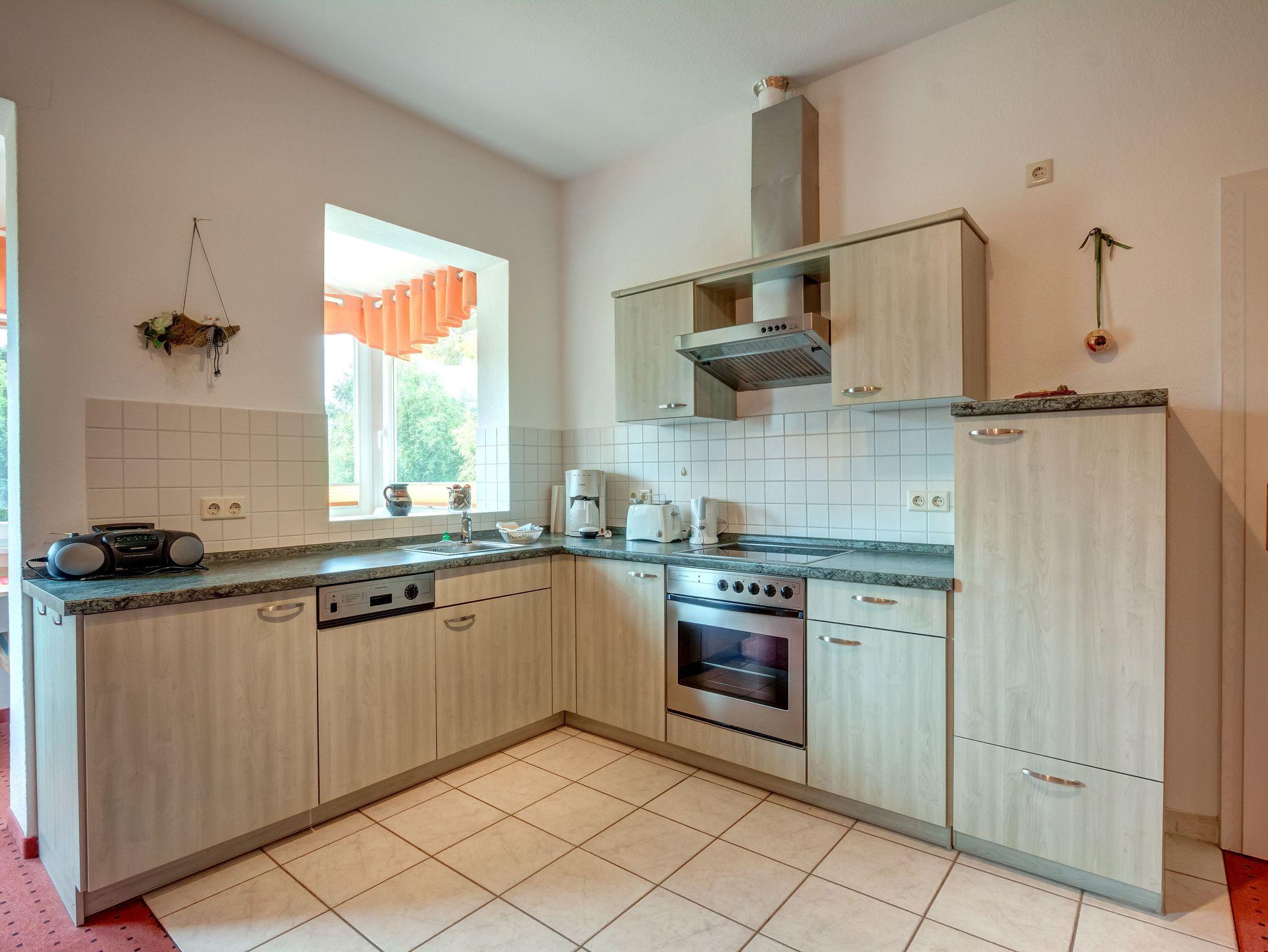 Das Schlafzimmer ist mit einem Doppelbett ausgestattet, im Wohnzimmer lädt ein Sofa zum Entspannen ein ? bei Bedarf lässt es sich in ein bequemes Bett umwandeln. Die offene Küchenzeile bietet alles, was Sie brauchen: Herd, Backofen, Kühlschrank, Kaffeemaschine und Wasserkocher. Das Badezimmer verfügt über Dusche, WC und Waschbecken.