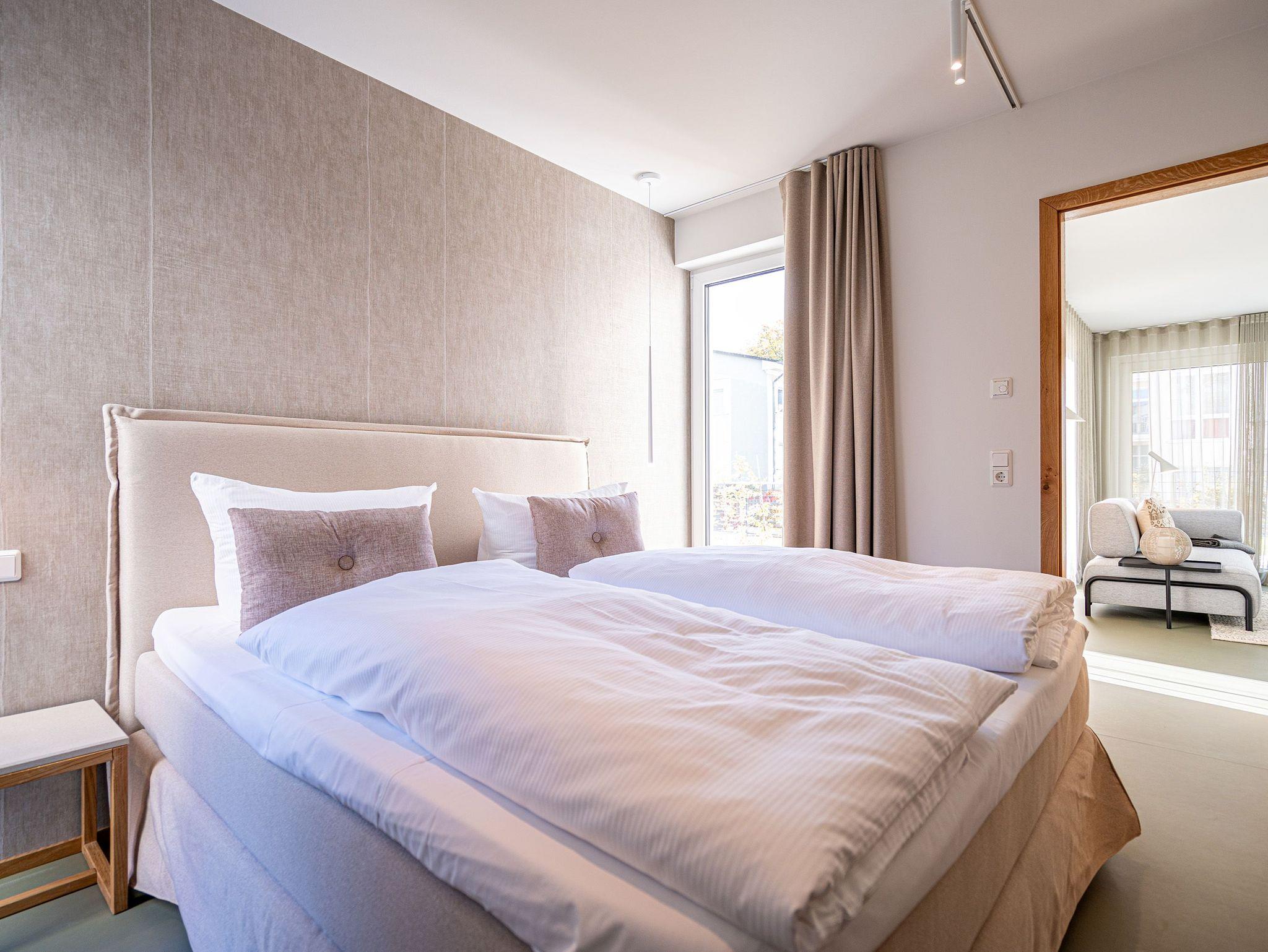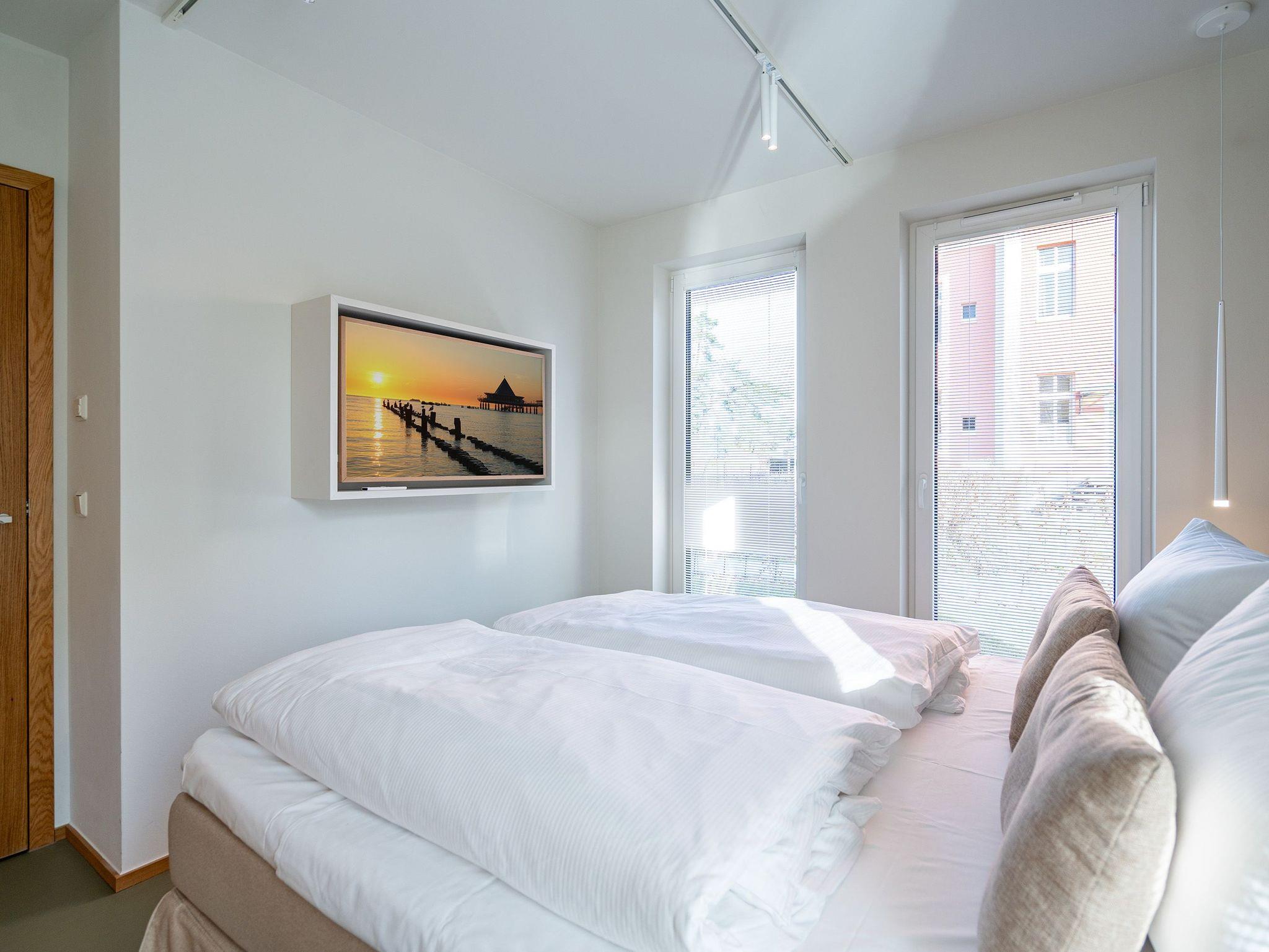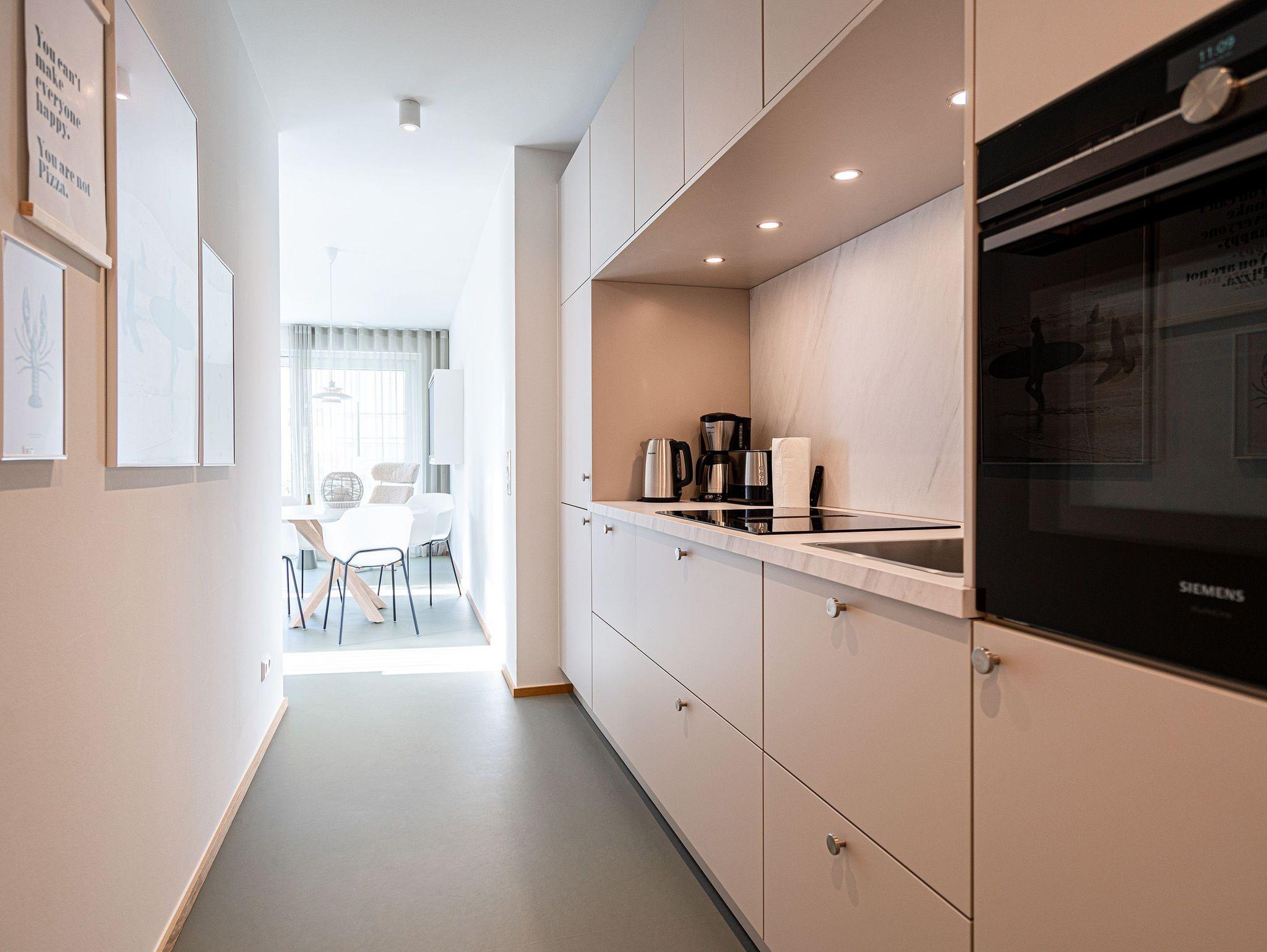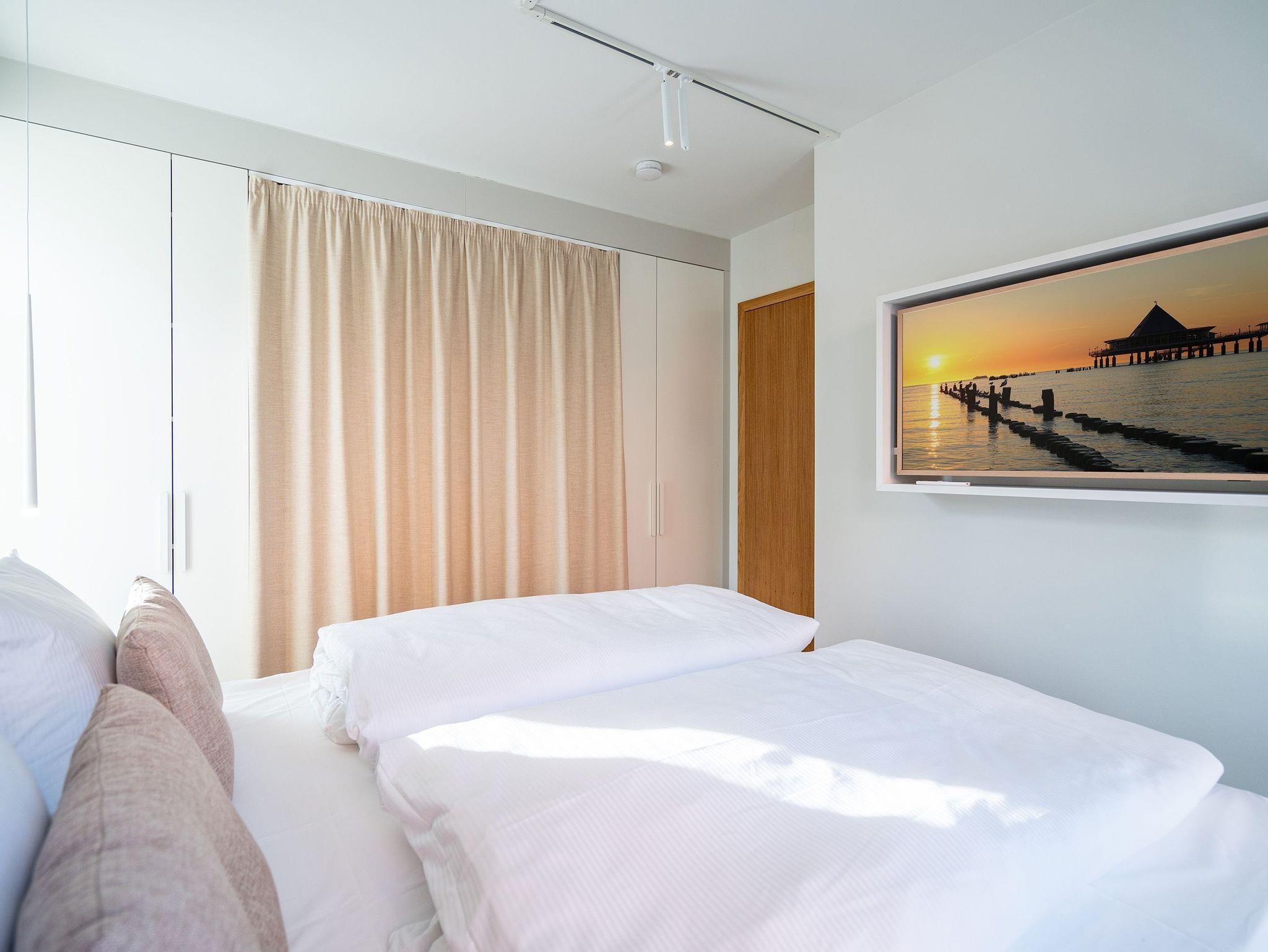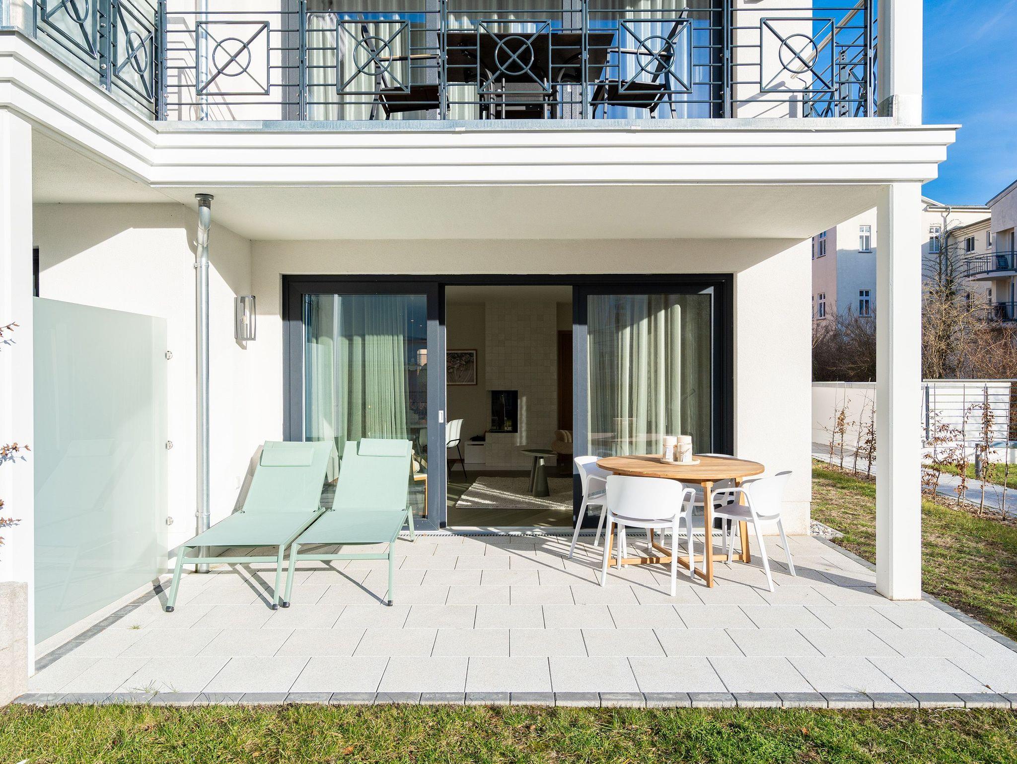 Nur 50m vom Strand entfernt und in einer kleinen Nebenstraße gelegen, empfängt Sie unser neues Domizil Quartier am Strand. Als zweites Objekt am Platz direkt an der schönen Strandpromenade gelegen, fügt sich die Anlage stilvoll zwischen Bäderstilvillen und Strandumgebung ein. Die insgesamt 9 Appartements und 2 Penthouses verfügen über helle und modern eingerichtete 2 bis 3 Zimmer. An kühleren Tagen sorgen Saunen und Kamin, die zu jedem Appartement gehören, für Entspannung in Ihrem Urlaub. Dem Klang der Wellen können Sie bequem von den Terrassen, Balkonen und Dachterrassen aus zuhören, denn jedes Appartement besitzt einen separaten Außenbereich. Der Blick auf die Ostsee ist Ihnen aus einigen Appartements möglich, aus den Penthouses garantiert. Offene Wohnbereiche und voll ausgestattete Küchen komplettieren das neue Objekt Quartier am Strand. Zudem gibt es eine hauseigene Tiefgarage (Einfahrthöhe 2,05 m) sowie einen Außenstellplatz (für Appartement 3), so dass ein eigener PKW-Stellplatz garantiert ist. Zu den weiteren Annehmlichkeiten des Objektes zählt ein Fahrstuhl, der Sie von der Tiefgarage bequem bis in die Etage Ihres Urlaubsdomizils leitet. Kostenfreies W-Lan rundet das Domizil ab. Wir wünschen Ihnen einen schönen Urlaub!