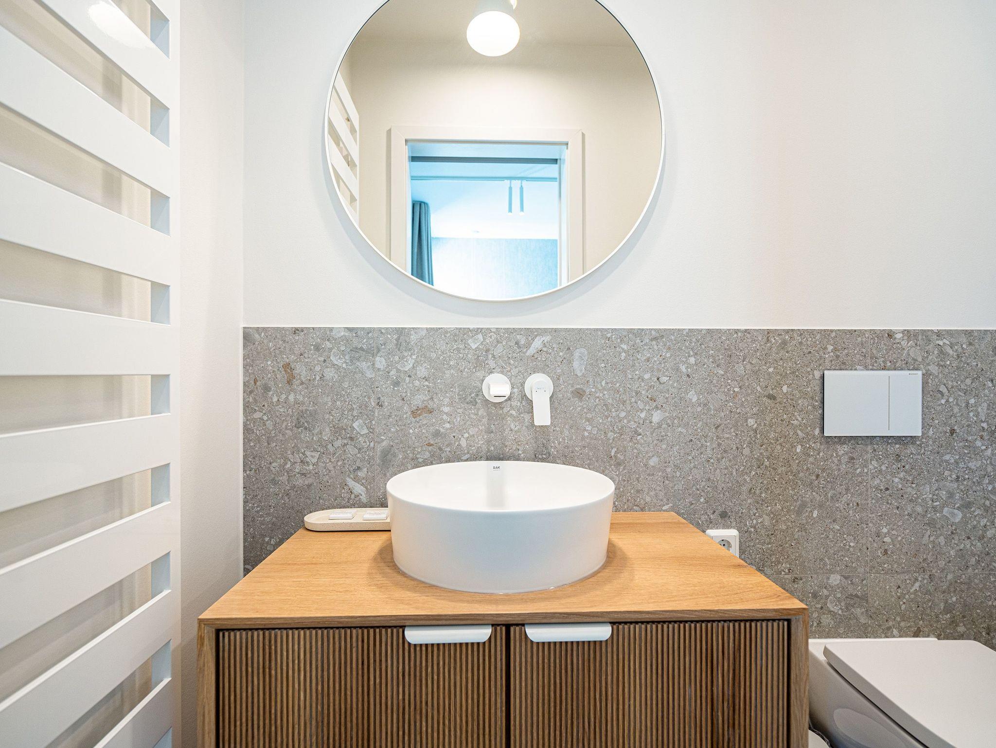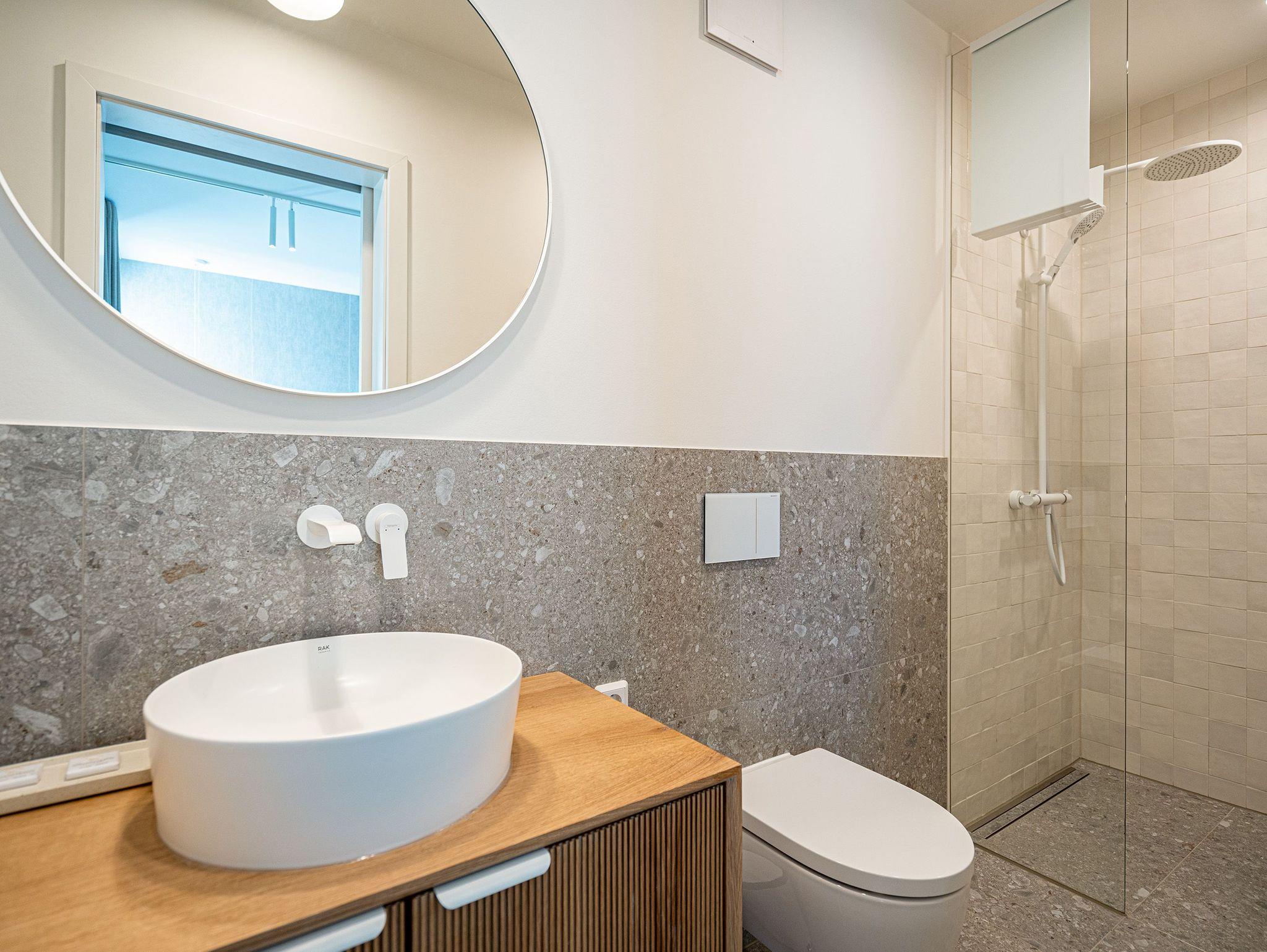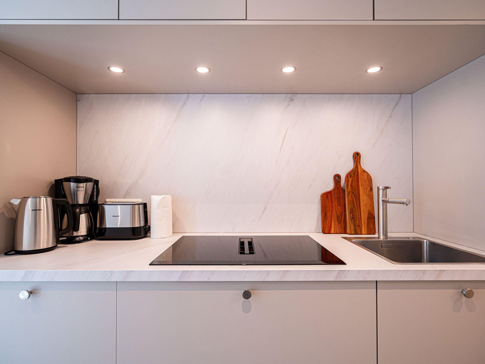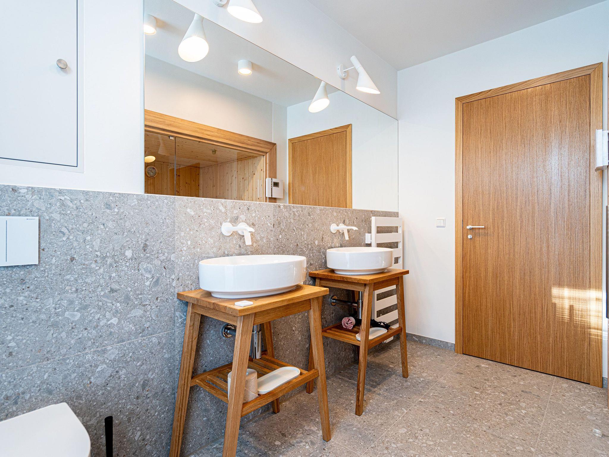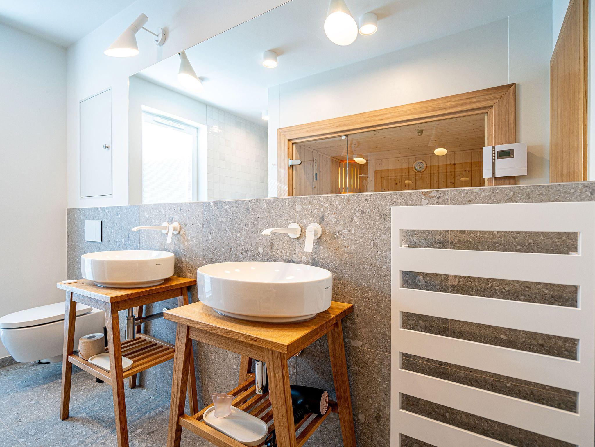 Herzlich willkommen in der hellen und modernen 3-Raum-Ferienwohnung Nr. 03 im Erdgeschoss, die Platz für bis zu 4 Personen bietet. Mit einer großzügigen Fläche von 87 Quadratmetern erwartet Sie hier ein komfortables Urlaubserlebnis. Der offene Wohnbereich empfängt Sie mit einer gemütlichen Sitzgruppe, einem Flachbildfernseher und einem Kaminofen, der für eine behagliche Atmosphäre sorgt. Von hier aus haben Sie direkten Zugang zur 15 Quadratmeter großen Süd-West-Terrasse, auf der Sie die Sonne und frische Luft genießen können. Ein Essplatz für 4 Personen lädt zu geselligen Mahlzeiten ein. Die voll ausgestattete Küchenzeile bietet alles, was Sie für die Zubereitung von köstlichen Mahlzeiten benötigen, darunter einen Backofen mit integrierter Mikrowelle, einen Induktionsherd sowie Kühl- und Gefrierschrank. Die Wohnung verfügt über 2 Schlafzimmer, jeweils mit komfortablen Boxspringdoppelbetten (1,80m x 2,00m), geräumigen Kleiderschränken und Flachbildfernsehern für Ihre Unterhaltung und Entspannung. Für Ihr Wohlbefinden sorgt ein innenliegendes Masterbad mit Dusche, Waschtisch und WC. Zusätzlich steht Ihnen ein zweites Tageslichtbad zur Verfügung, das mit einer Dusche, einem Doppelwaschtisch, einer hochwertigen Massivholzsauna und einem WC ausgestattet ist. In einem separaten Hauswirtschaftsraum finden Sie eine Waschmaschine, die Ihnen während Ihres Aufenthalts zur Verfügung steht. Ein Außenstellplatz für Ihr Auto ist ebenfalls vorhanden, damit Sie bequem an- und abreisen können.
