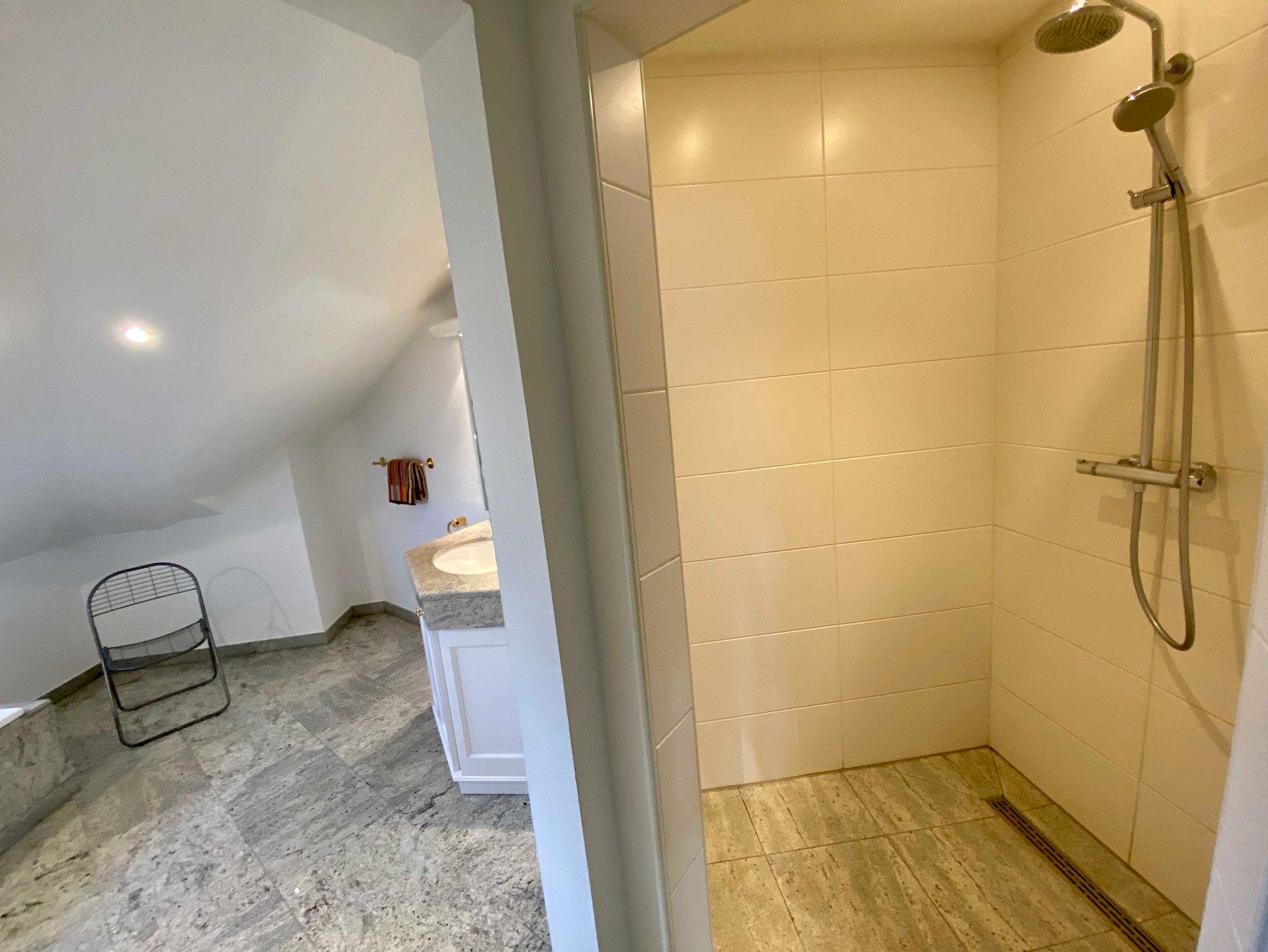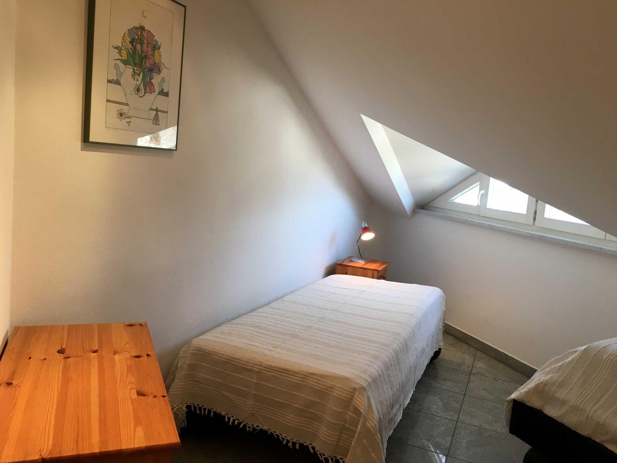 Zwei Schlafzimmer mit Doppelbett und Einzelbetten komplettieren wie das Bad mit Dusche und Wanne die Ferienwohnung. Genießen Sie den Blick vom Balkon direkt auf die Promenade, die bewaldetet Düne und das Meer.