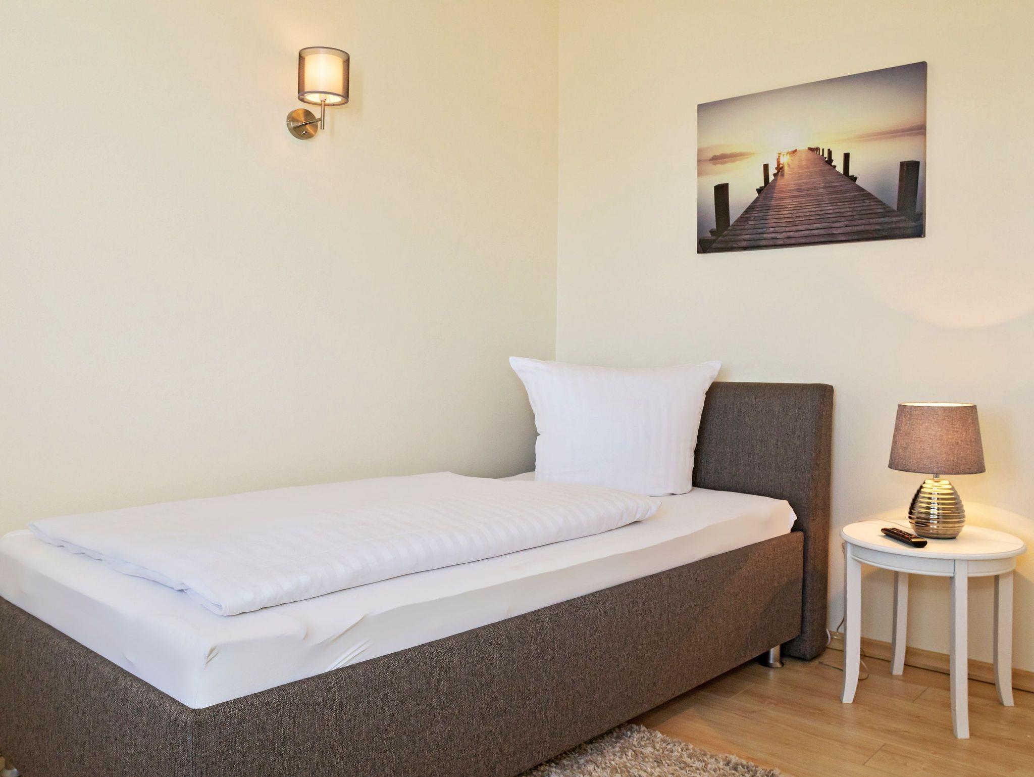 Die komfortable und moderne Ferienwohnung mit ca. 65 qm befindet sich im 1.Obergeschoss des Restaurants & Cafés, welches seit 1938 in Familienbesitz ist und sich direkt im Zentrum von Heringsdorf befindet. Die Wohnung erstreckt sich über 2 Etagen. In der 1. Etage befindet sich ein Schlafzimmer mit einem Einzelbett, Flachbild-TV und unverbautem Meerblick. Die Wohnung verfügt in der 2. Etage über ein zweites Schlafzimmer mit Doppelbett, Flachbild-TV und wiederum unverbautem Meerblick. Das helle gemütliche Wohnzimmer ist mit einer Couch und Flachbild-TV ausgestattet. Von hier aus gelangen Sie auf den Südbalkon mit Blick auf die umliegenden Villen. Die moderne Küche mit Ceranherd, Backofen, Geschirrspüler, Mikrowelle, Kaffeemaschine, Wasserkocher und Toaster lässt keine Wünsche offen. Das helle freundliche Tageslicht-Bad verfügt über DU/WC sowie einen Kosmetikspiegel. Die Wohnung ist mit Außenrollläden versehen. Die Erstausstattung Bettwäsche und Handtücher ist inklusive. Auf Wunsch kann ein Parkplatz vor Ort gegen eine Gebühr von 10,00 € pro Nacht dazugebucht werden.