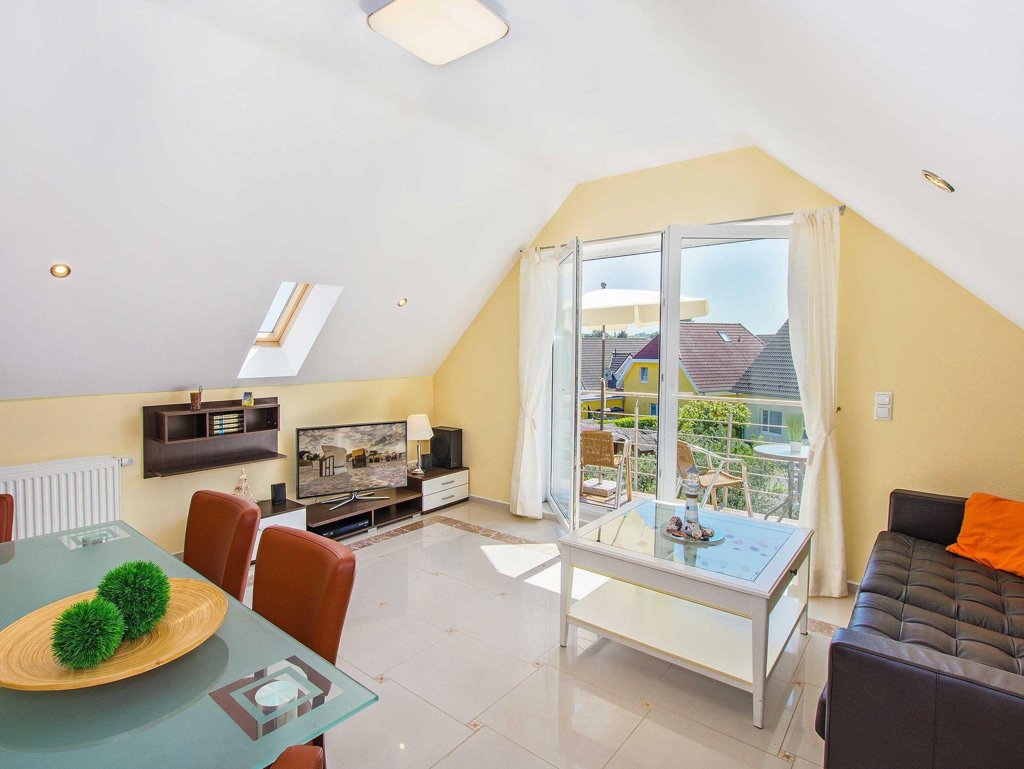 Moderne Ferienwohnung in der Villa Europa mit Kamin, Balkon und Zugang zu Pool und Grillplatz in Heringsdorf.