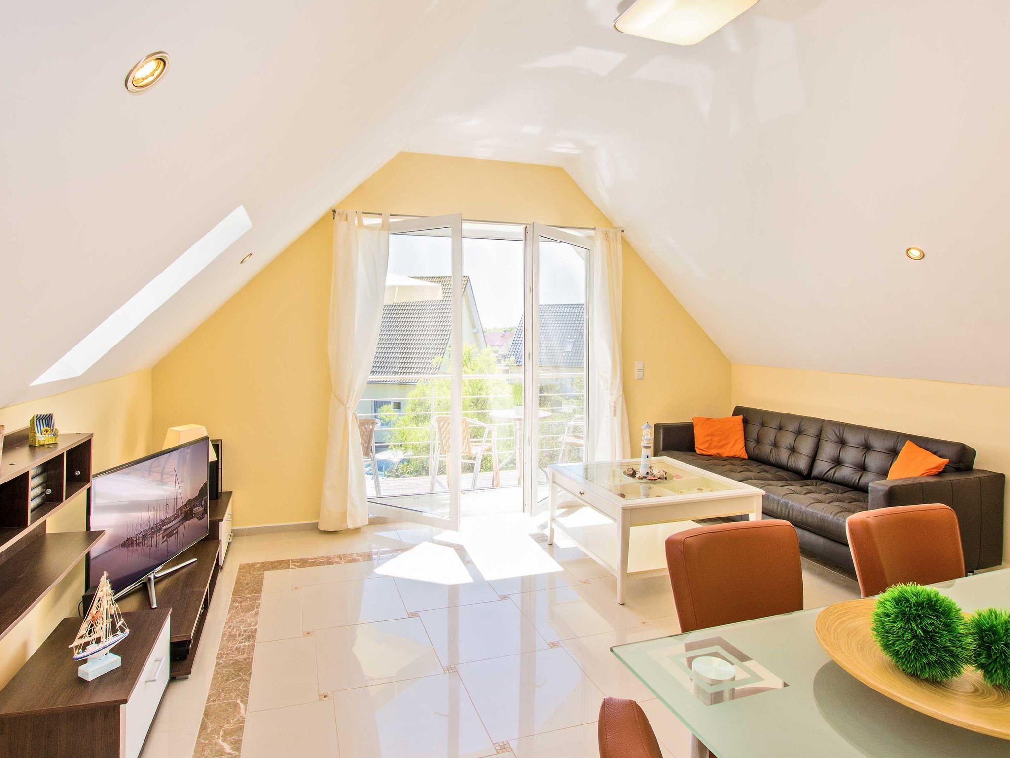 Jede der Ferienwohnungen ist ein gemütliches Zweiraumapartment mit einer großzügigen Wohnfläche von 50 Quadratmetern. Die Wohnung Nizza im 2. Obergeschoss ist perfekt für bis zu 2 Gäste plus Baby, während die anderen vier Wohnungen (Barcelona und Granada im Erdgeschoss, Pisa und Florenz im 1. Obergeschoss) Platz für bis zu 3 Gäste plus Baby bieten. Genießen Sie die exklusiv gestalteten Schlafzimmer und die bequeme Schlafcouch in den Wohnzimmern, die in einem warmen südländischen Flair erstrahlen und auch in der kalten Jahreszeit ein angenehmes Raumklima schaffen. In vier der Wohnungen (die im Erdgeschoss und 1. OG) sorgt ein Kamin im Wohnbereich für zusätzliche Gemütlichkeit. Der Wohnbereich ist mit modernem Komfort ausgestattet, darunter ein 40 3D Flat TV, eine Hifi-Soundanlage mit Blue-Ray Player und hochwertigem Mobiliar. Die voll ausgestattete Küche lässt keine Wünsche offen. Die maritim gestalteten Bäder verfügen über eine Dusche, WC, Bidet und einen Waschtisch mit Spiegel.