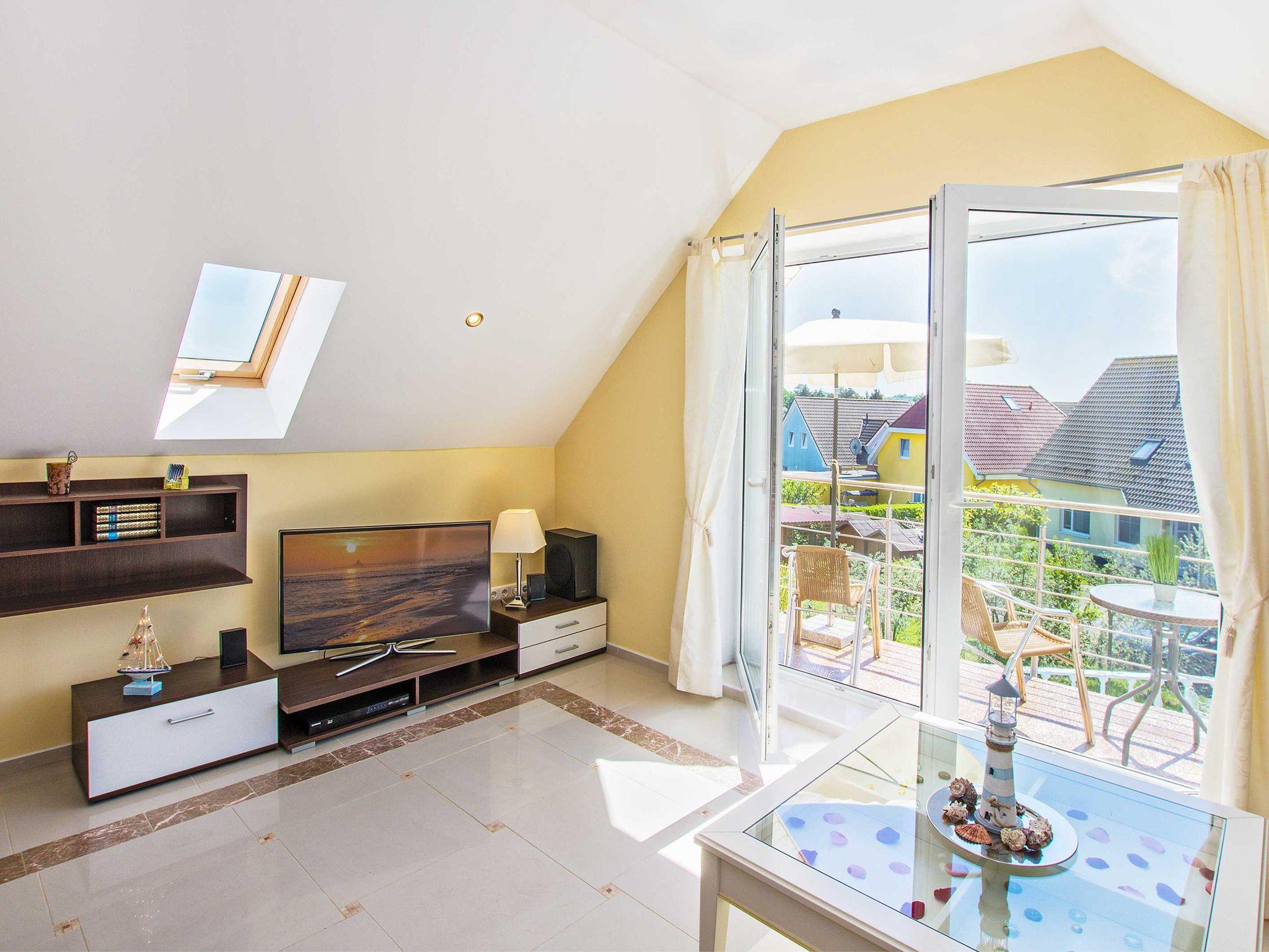 Nehmen Sie Platz auf dem gemütlichen Sofa im offenen Wohnbereich, die Ihnen die Sicht auf den Fernseher und hinaus durch die bodentiefen Fenster auf den Balkon. Die Küchenzeile, bestehend aus Backofen, Herd mit Ceranfeld, Kühlschrank mit Gefrierfach, Geschirrspülmaschine, sowie Kleinelektrogeräten wie einer Mikrowelle, Kaffeemaschine, Toaster und Wasserkocher steht vor dem großen Esstisch mit vier Stühlen. Zu Ihrer Unterhaltung stehen Ihnen ein 3D 40“Flat TV mit Blue-Ray HiFi-Anlage zur Verfügung. Das Badezimmer stellt Ihnen eine gläserne Duschkabine, ein unterbautes Waschbecken mit Spiegel und Kosmetikspiegel, Haartrockner, Bidet und WC bereit.