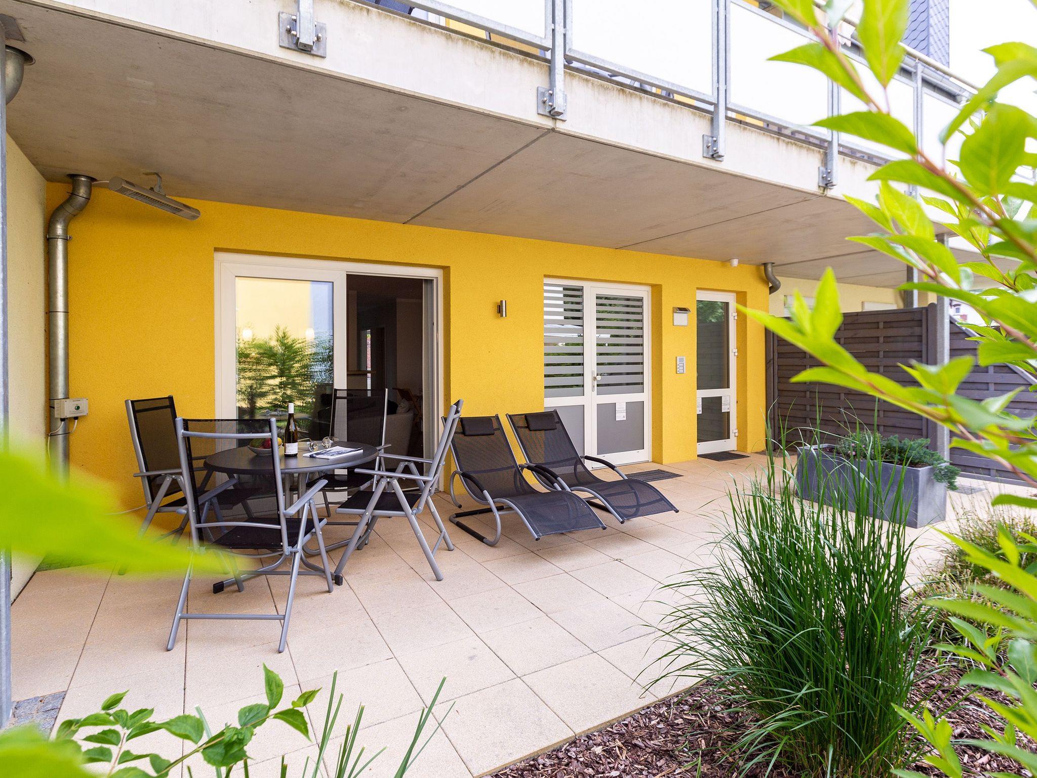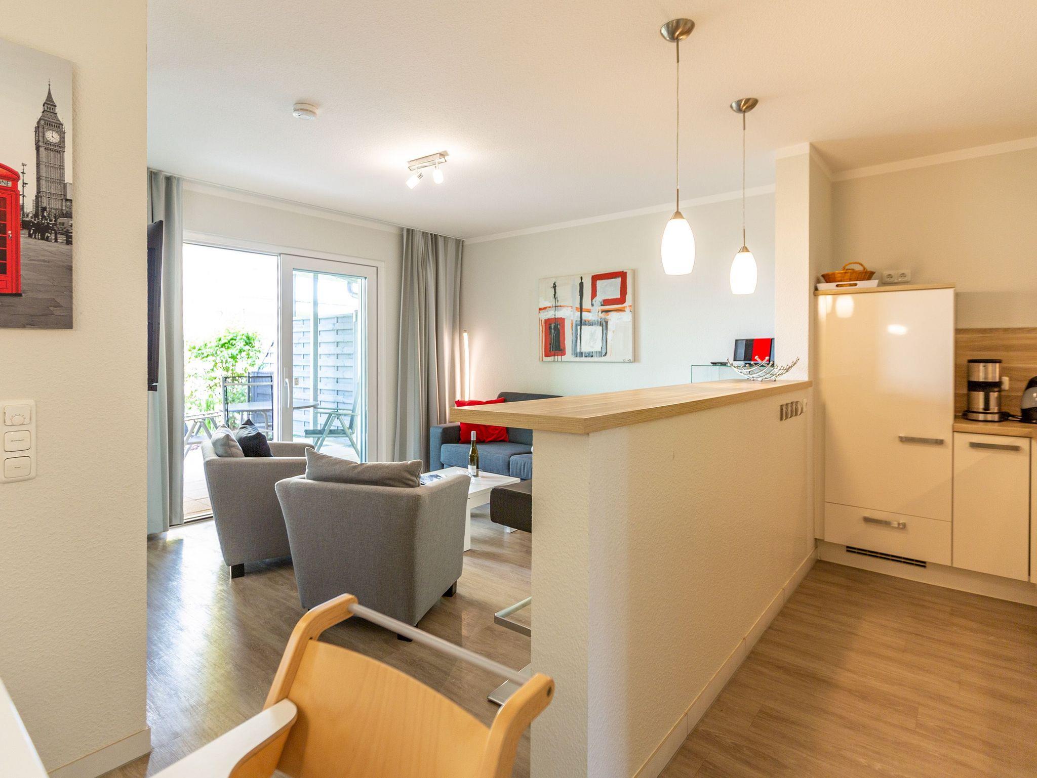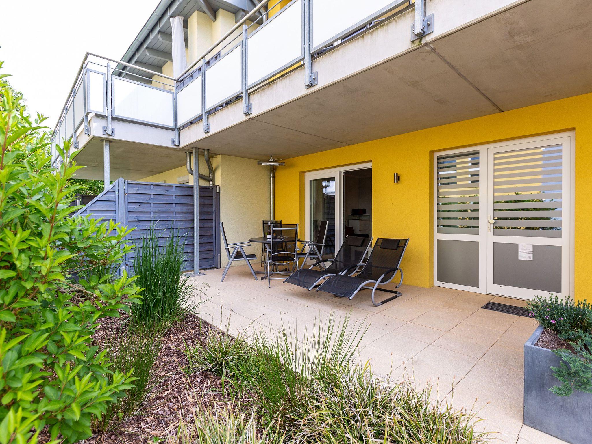 Etwas versteckt, aber dennoch zentral gelegen, empfängt Sie das Domizil am Hang, bestehend aus Haus A [&] Haus B. Es erwarten Sie individuell gestaltete 2- und 3-Raum-Appartements mit Balkonen, Terrassen und hochwertiger Ausstattung. Fu?r beide Ha?user steht eine Tiefgarage zur Verfu?gung, in der fu?r jede Wohnung ein PKW- Stellplatz vorhanden ist. Aus dieser Tiefgarage ist ein Zugang zum Aufzug und zu den Wohnungen des Hauses B möglich (unabha?ngig davon ob man mit oder ohne PKW anreist). Von dort haben Sie Zugang zum Haus A, welches über keinen Aufzug verfügt. Die oberen Appartements sind ausschließlich über Treppen zu erreichen. Bis zum Strand und zur Promenade sind es ca. 400m Fußweg. Im Haus sind die Waschmaschine und Trockner gegen Gebühr nutzbar. Außerdem steht für jede Wohnung ein Briefkasten am Haus zur Verfügung.