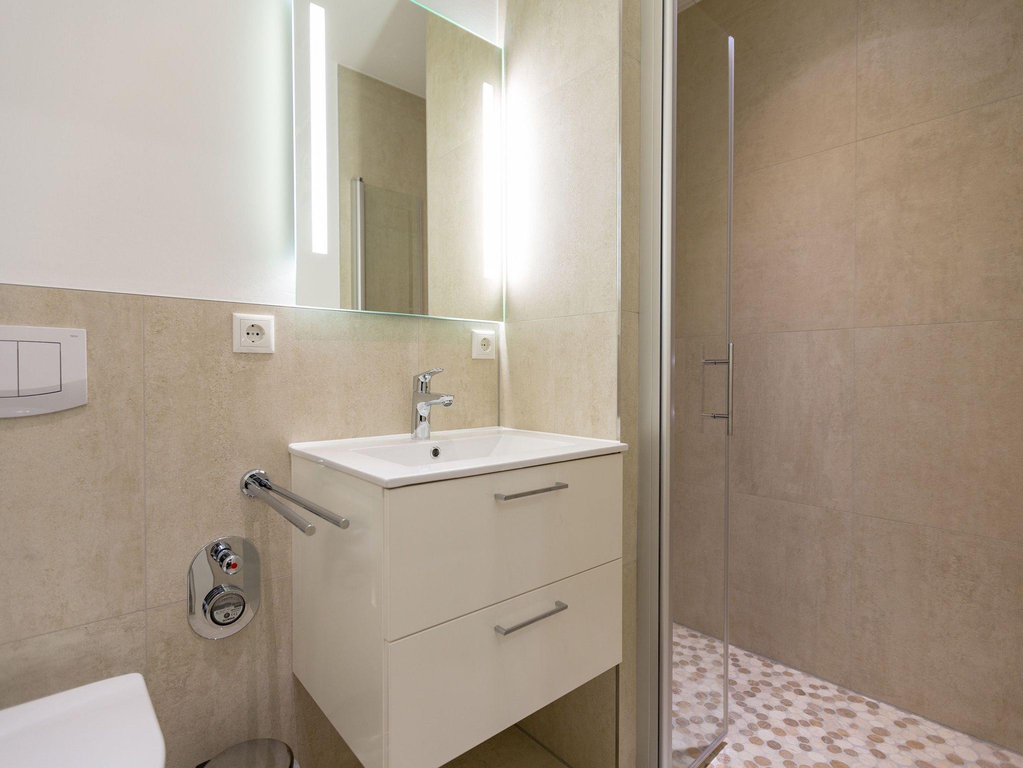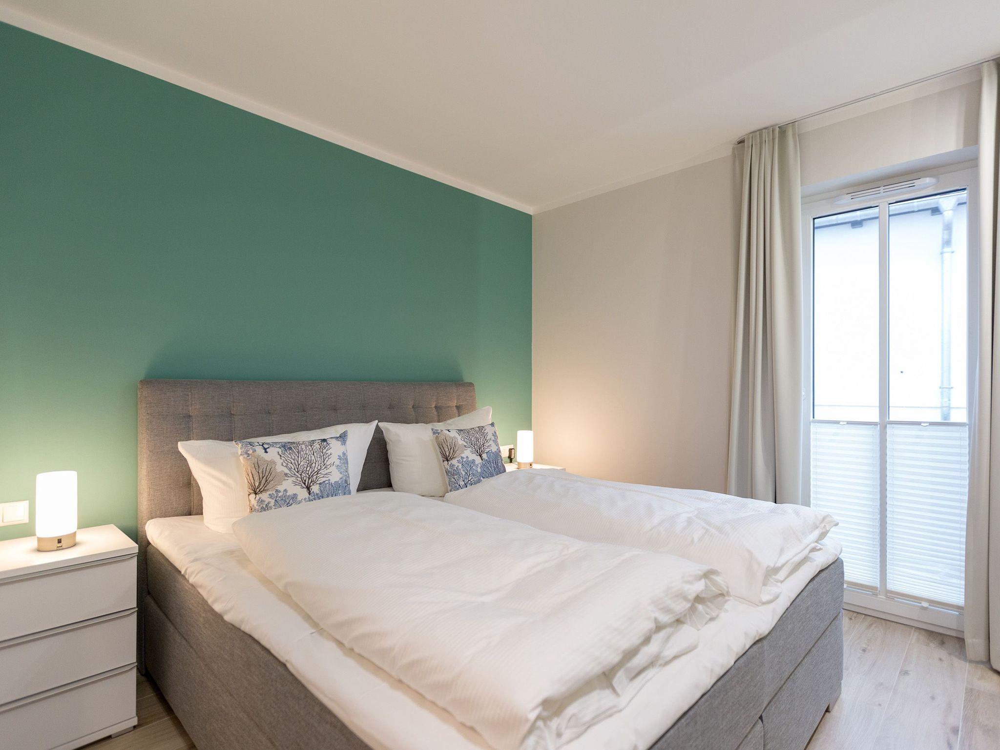 Urlauben wie im Paradies ? dieses Drei-Zimmer-Feriendomizil im Erdgeschoss macht den Traum von purer Entspannung wahr. Und das mit Stil. Die 84 Quadratmeter laden vier Personen und ein Kleinkind bis 3 Jahre (im Kinderreisebett) zum ausgiebigen Entspannen und Genießen ein. Viel Platz und viel Licht erwarten Sie. Die Einrichtung der gesamten Wohnung ist stylisch und modern. Nordisches Design verleiht dem Appartement eine edle und helle Atmosphäre. Das große Wohn-Ess-Zimmer ist ein wunderbarer Ort für gemeinsame Stunden beim Relaxen oder Essen. Ein komfortables Sofa mit Sessel ist für entspannte Fernsehzeiten vor dem großen Flat-TV oder gemütliche Momente vor dem Kaminofen ideal geeignet. Fallenlassen, abschalten und neue Energie tanken. Das können Sie auch am schönen großen Esstisch. Kochen Sie in der offenen Küche gemeinsam. Die Küche ist mit allen Geräten und mit edlem Geschirr voll ausgestattet. Die Sonne können Sie nicht nur am Strand, sondern auch auf ihrer eigenen Terrasse (10 Quadratmeter) genießen. Die Südost-Ausrichtung sorgt dafür, dass Sie hier schon morgens zum Frühstück Sonne haben. Die Wohnung verfügt zudem über eine zweite, kleine Terrasse (3 Quadratmeter). Damit jeder genügend Platz für sich und seine Bedürfnisse hat, gibt es zwei Schlafzimmer und auch zwei Bäder. Einigen müssen Sie sich dann nur noch, wer welche Farbe bevorzugt. Ausgestattet sind beide Schlafzimmer mit bequemen Boxspringdoppelbetten (1,80 m x 2,00 m), geräumigen Schränken und einem Flat-TV. In beiden Bädern gibt es eine Dusche, einen Waschtisch und ein WC. Zum absoluten Wellness-Highlight wird dieses Urlaubsdomizil durch die Finnische Sauna in einem der Bäder. So können Sie den Urlaub auch bei schlechtem Wetter oder im Winter genießen. Für Ihr Auto ist in der Tiefgarage ein Stellplatz reserviert. Und bei Ankunft sind auch die Betten bereits bezogen und Handtücher liegen bereit.