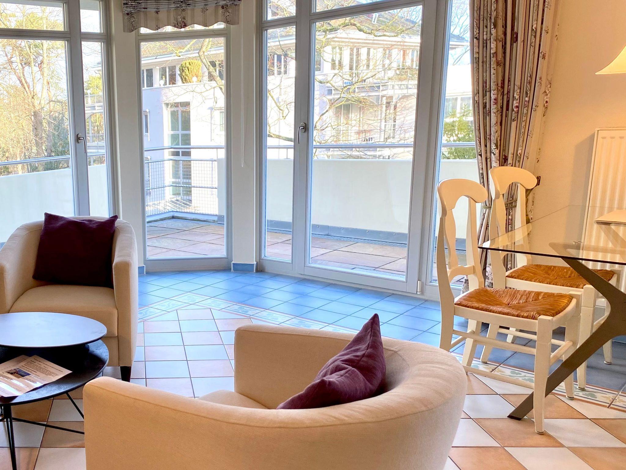 Modern eingerichtete Ferienwohnung mit Balkon, Parkblick und zentraler Lage in Heringsdorf, ideal für erholsame Urlaubstage.