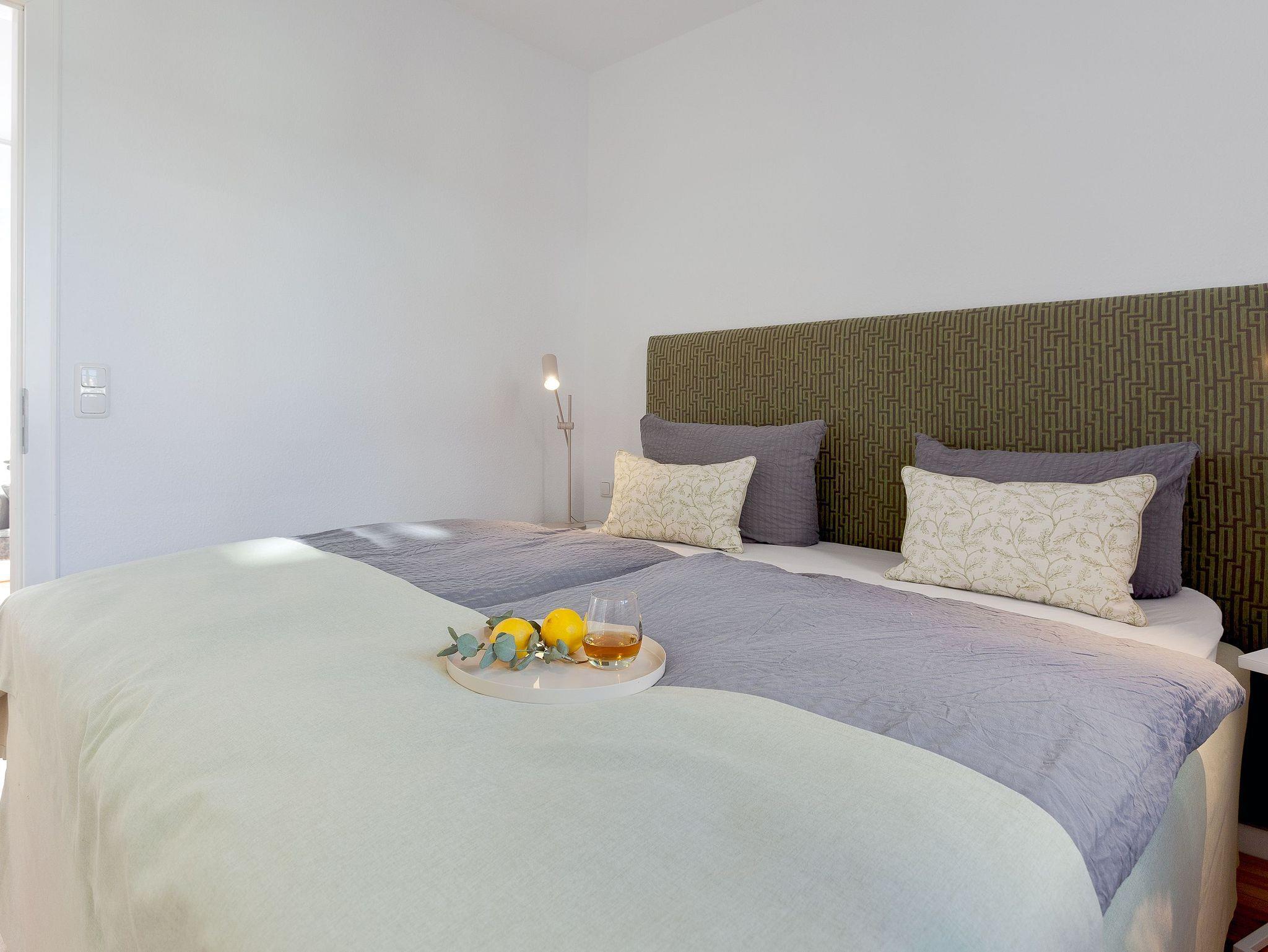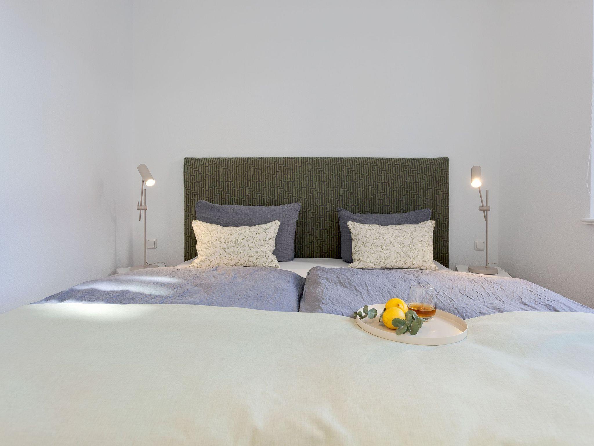 Das Appartement verfügt über zwei Schlafzimmer. Das Schlafzimmer 1 ist mit einem neuen Boxspringbett (180 x 200 cm) ausgestattet, während Schlafzimmer 2 über ein Einzelbett (90 x 200 cm) verfügt. In beiden Zimmern bietet jeweils ein Kleiderschrank genügend Stauraum für Ihre Garderobe.