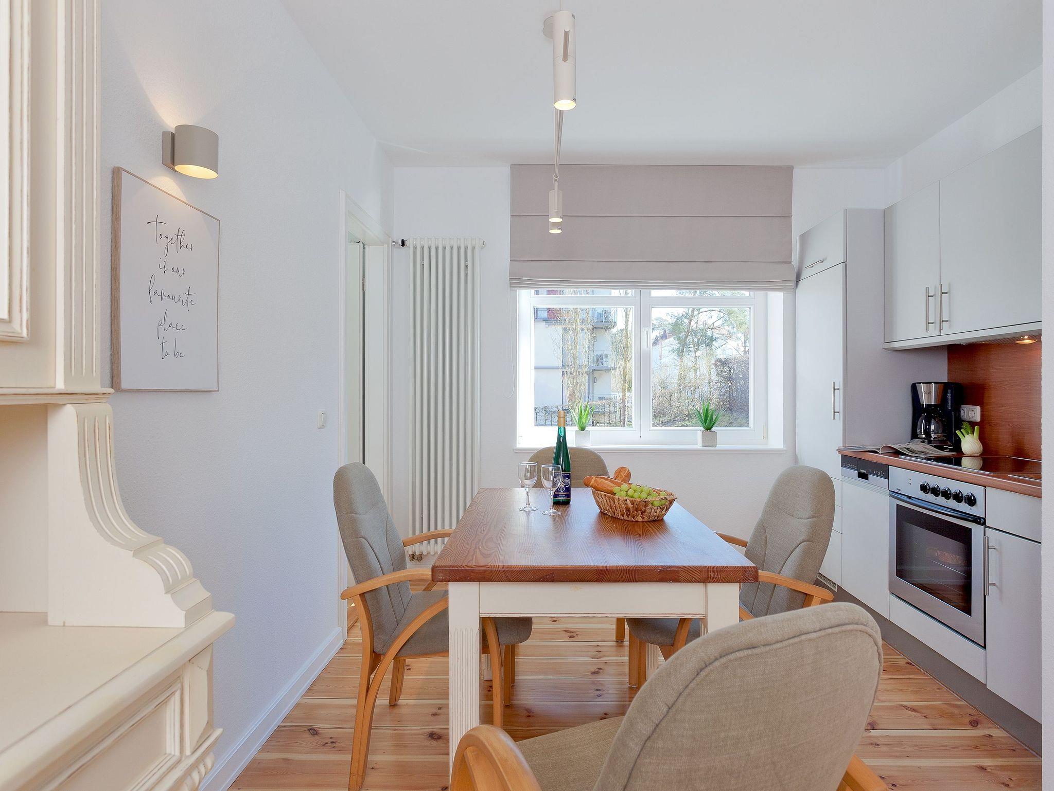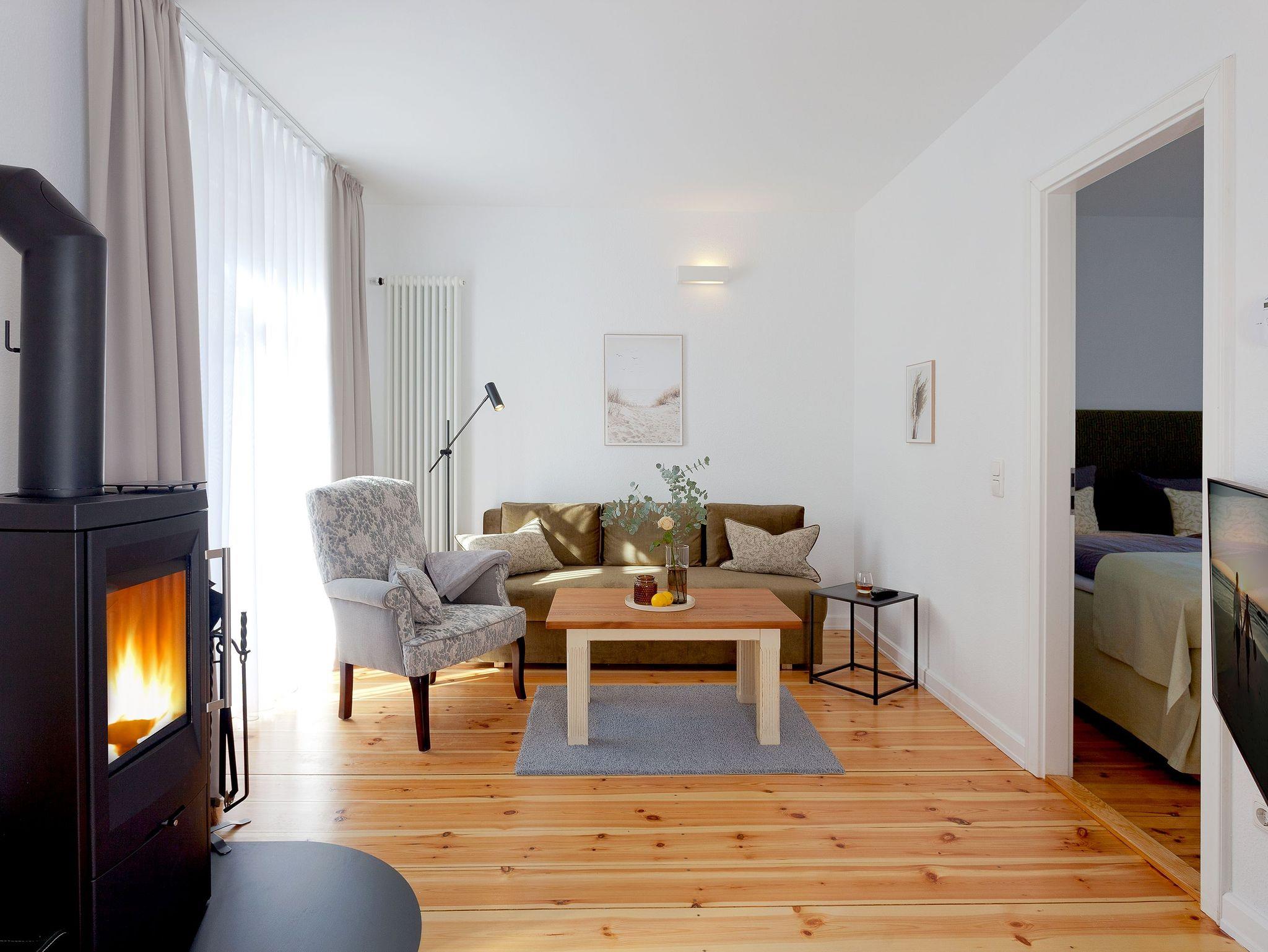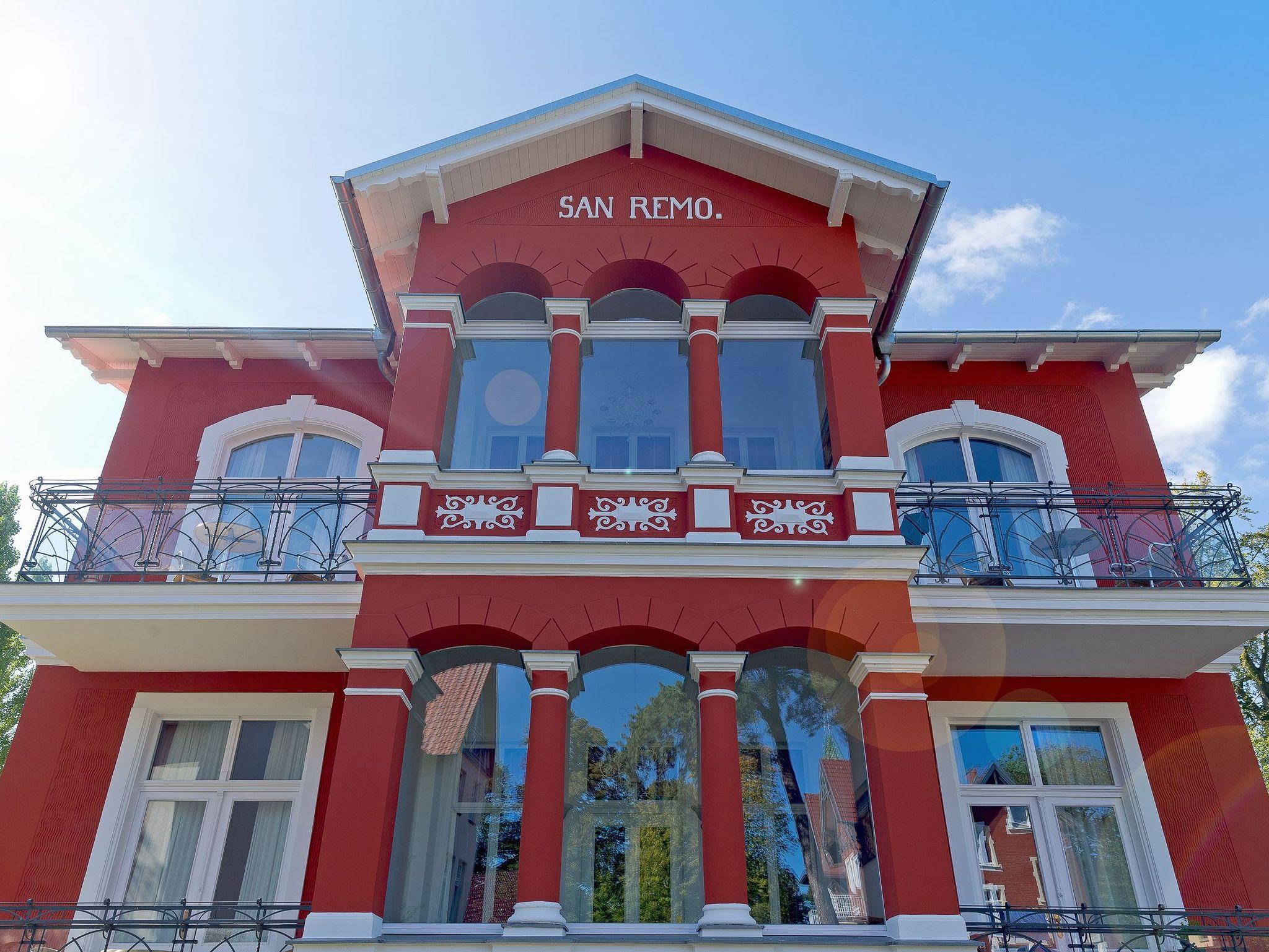 Moderne Ferienwohnung in der Villa San Remo, strandnah in Heringsdorf auf Usedom, mit Terrasse, Kamin und zwei Badezimmern.
