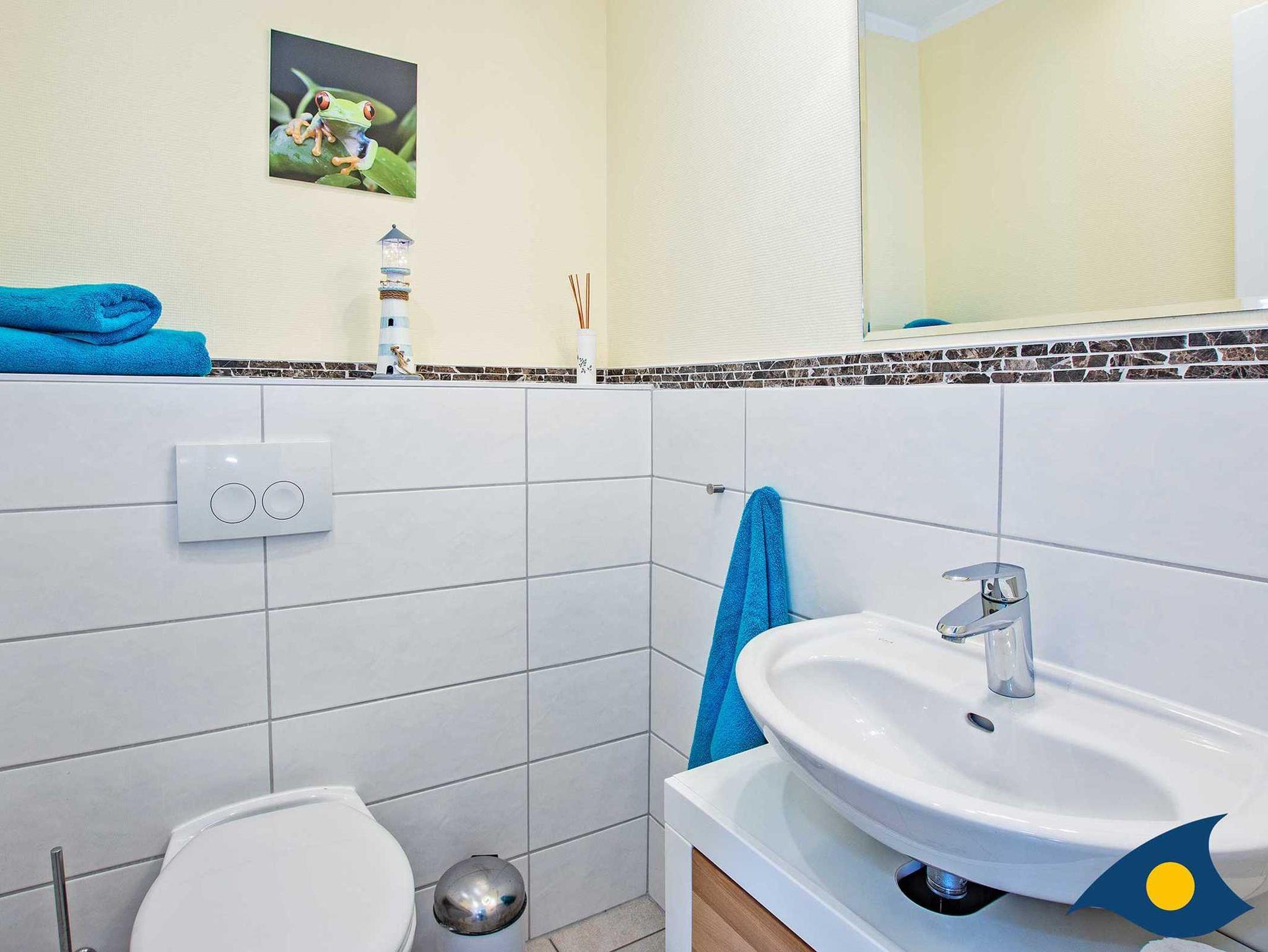 Im geräumigen Bad mit Dusche und Badewanne können Sie den Tag entspannt in der Badewanne beenden oder sich erfrischen, um die vielen Ausflugsmöglichkeiten von Heringsdorf zu Fuß zu erkunden.