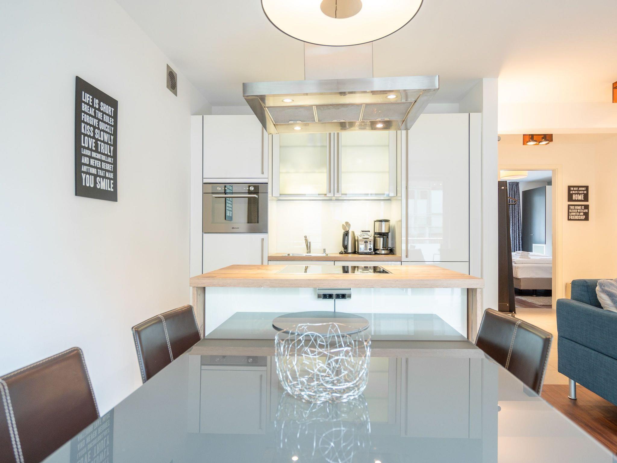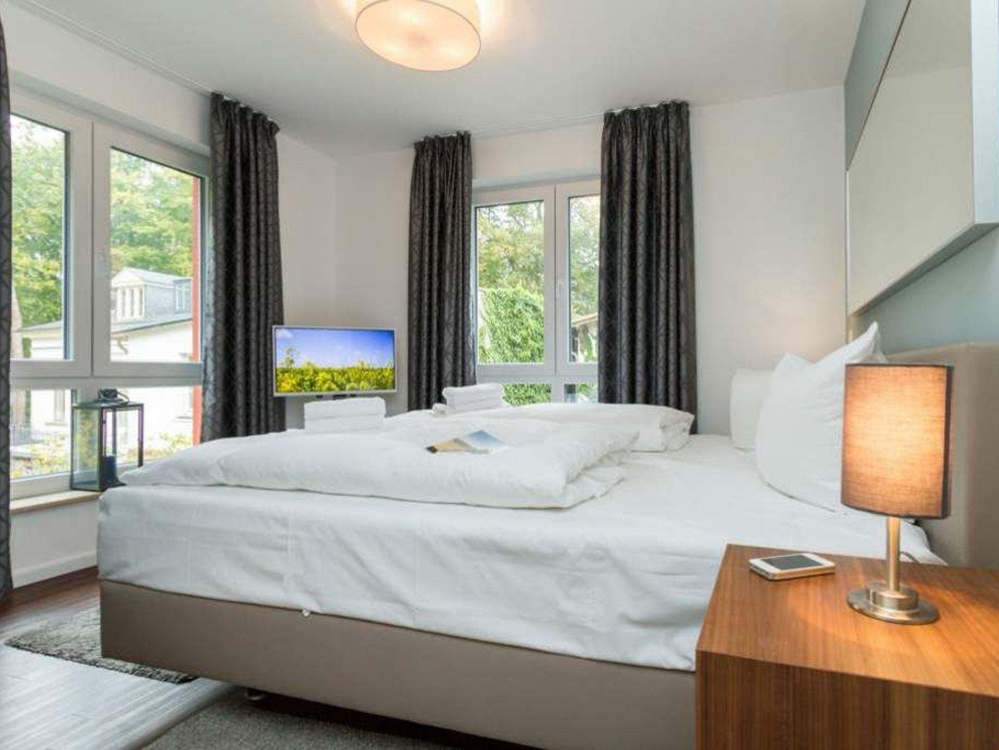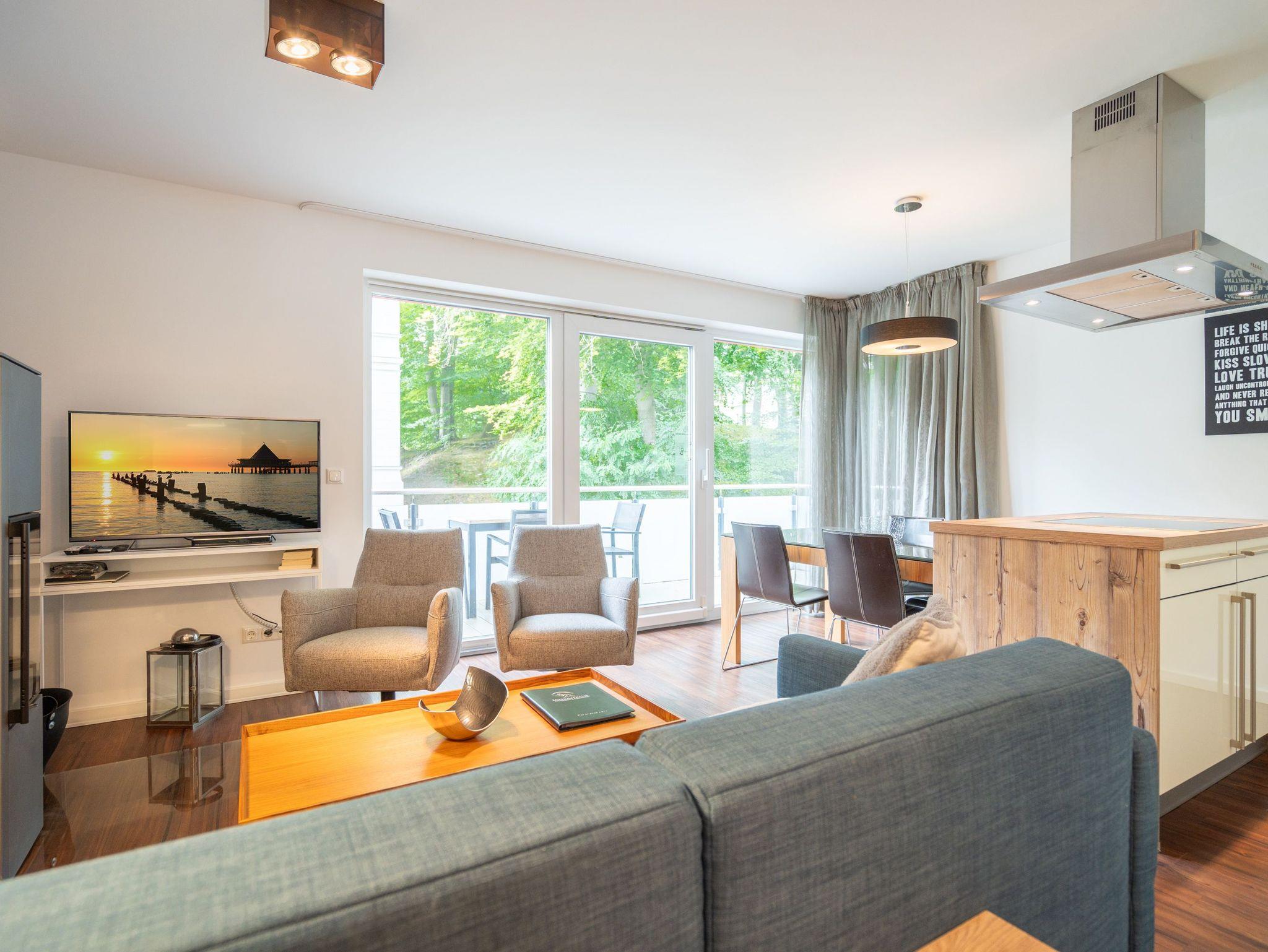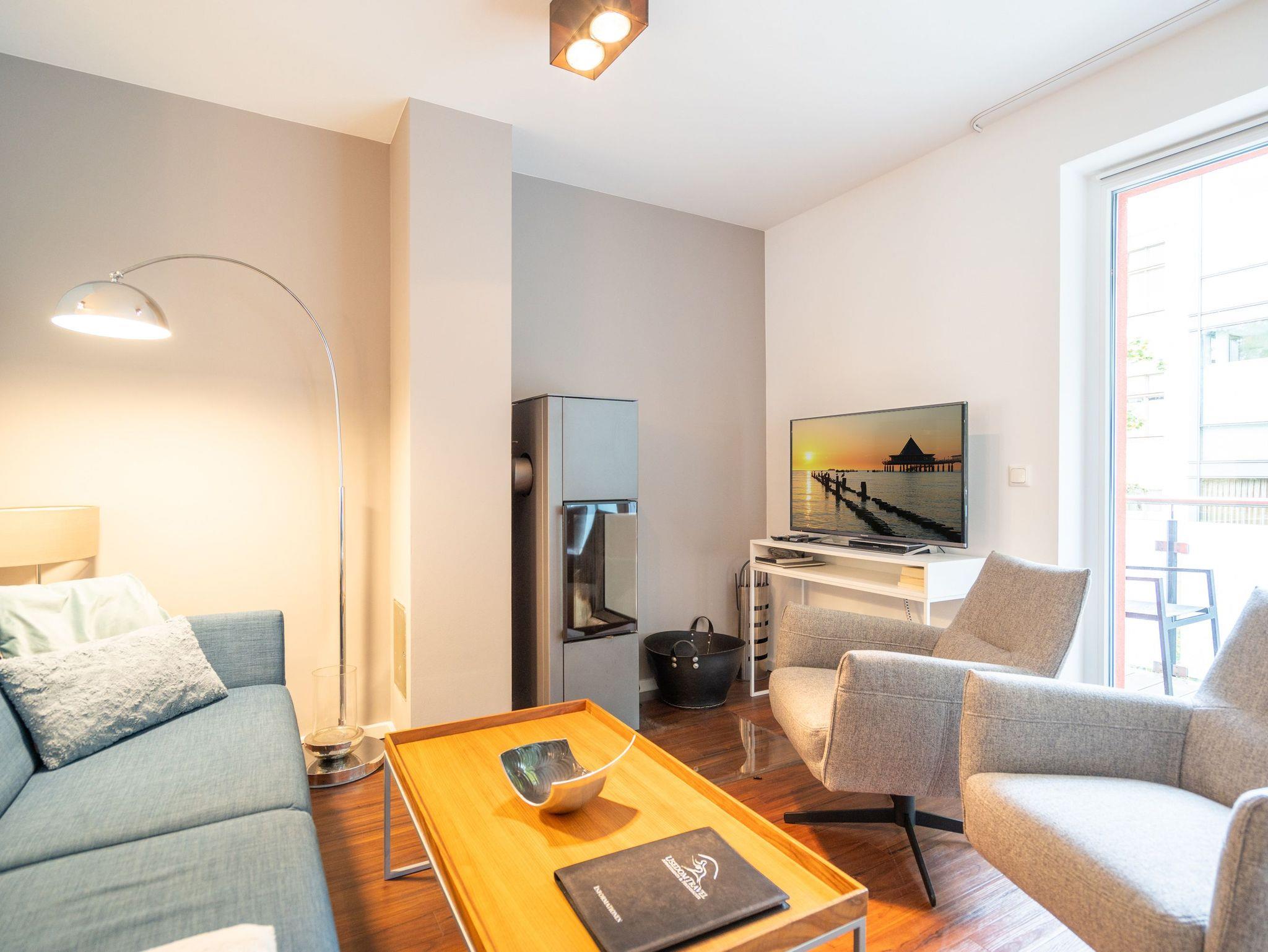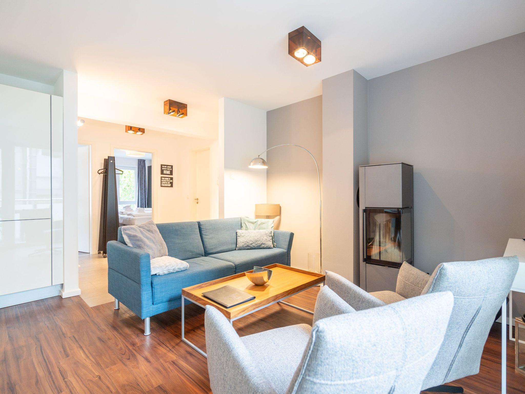Moderne Ferienwohnung mit Kamin, Balkon und Tiefgaragenstellplatz nahe Strand in Heringsdorf.