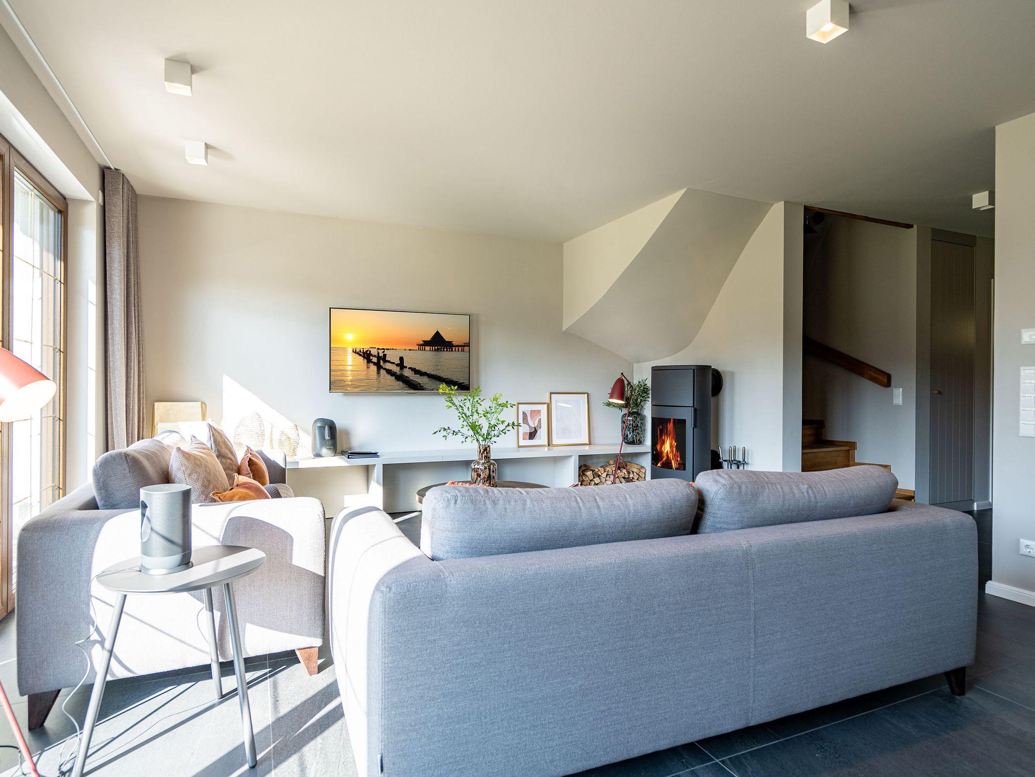 Modernes Ferienhaus mit Sauna, Kamin und Terrasse nahe Usedom Strand.