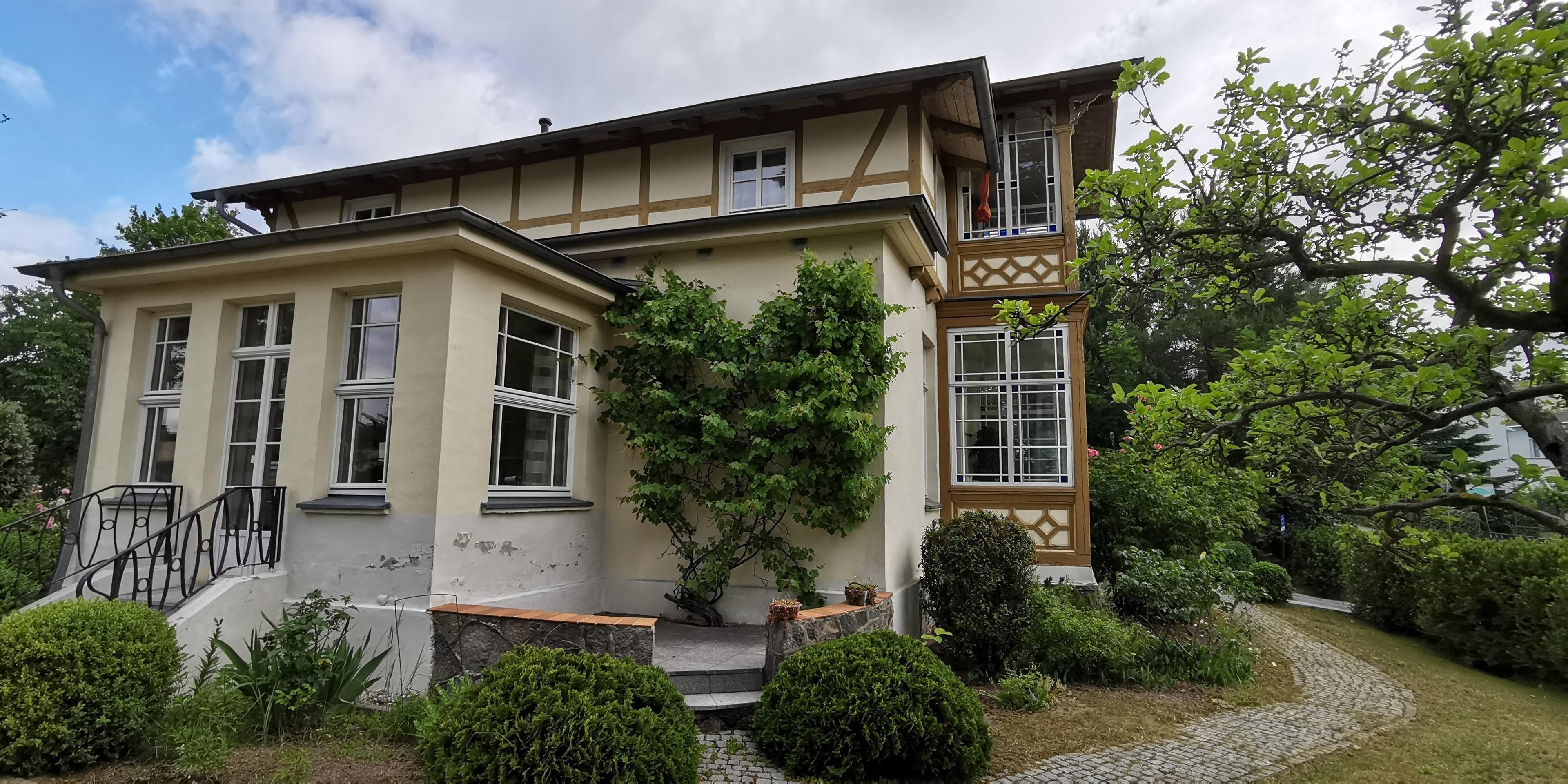 Sie wohnen im Erdgeschoß in einer liebevoll sanierten Villa im Bäderarchitekturstil, in ruhiger und zentraler Lage. Zum Strand sind es nur ca. 100 Meter. Das Appartement ist 129 qm groß und ist mit rustikalen skandinavischen Möbeln ausgestattet. Es bietet insgesamt sechs Schlafplätze. Im Schlafzimmer befinden sich ein großes Doppelbett (200x200) und ein Etagenbett (2x 90x200). In der abgeschlossenen Veranda können Sie auf einem Doppelbett (140x200) ruhen. Ein großer Einbaukamin lädt zum Ausklang eines romantischen Abends ein. Die Böden sind mit rustikalen mediterranen Fliesen ausgelegt. Im modernen Bad sind eine Erlebnisdusche und ein Whirlpool zum Entspannen vorhanden. Weiterhin gibt es kleines separates Gäste-WC. Zwei lichtdurchflutete Veranden laden zum Verweilen ein. Auf zwei großzügigen Terrassen können Sie das weitläufige Grundstück genießen. Am großen Aussengrill kann Leckeres zubereitet werden. Einen separaten Stellplatz finden Sie hinter der Villa. Fahrräder können untergestellt Ausstattung der exklusiven Ferienwohnung Salon lässt keine Wünsche offen. Dazu zählen WLAN, Plasma-TV, DVD-Surroundanlage, DVD-Filme, Bücher, Einbauküche mit Geschirrspüler, Kühl-/Gefrierkombination, Backofen mit Ceranfeld, Mikrowelle, Kaffeemaschine, Senseo-Kaffeepadmaschine, Wassserkocher, Toaster, Föhn, Babybett, Babyhochstuhl, klappbare Wickelauflage und vieles mehr.