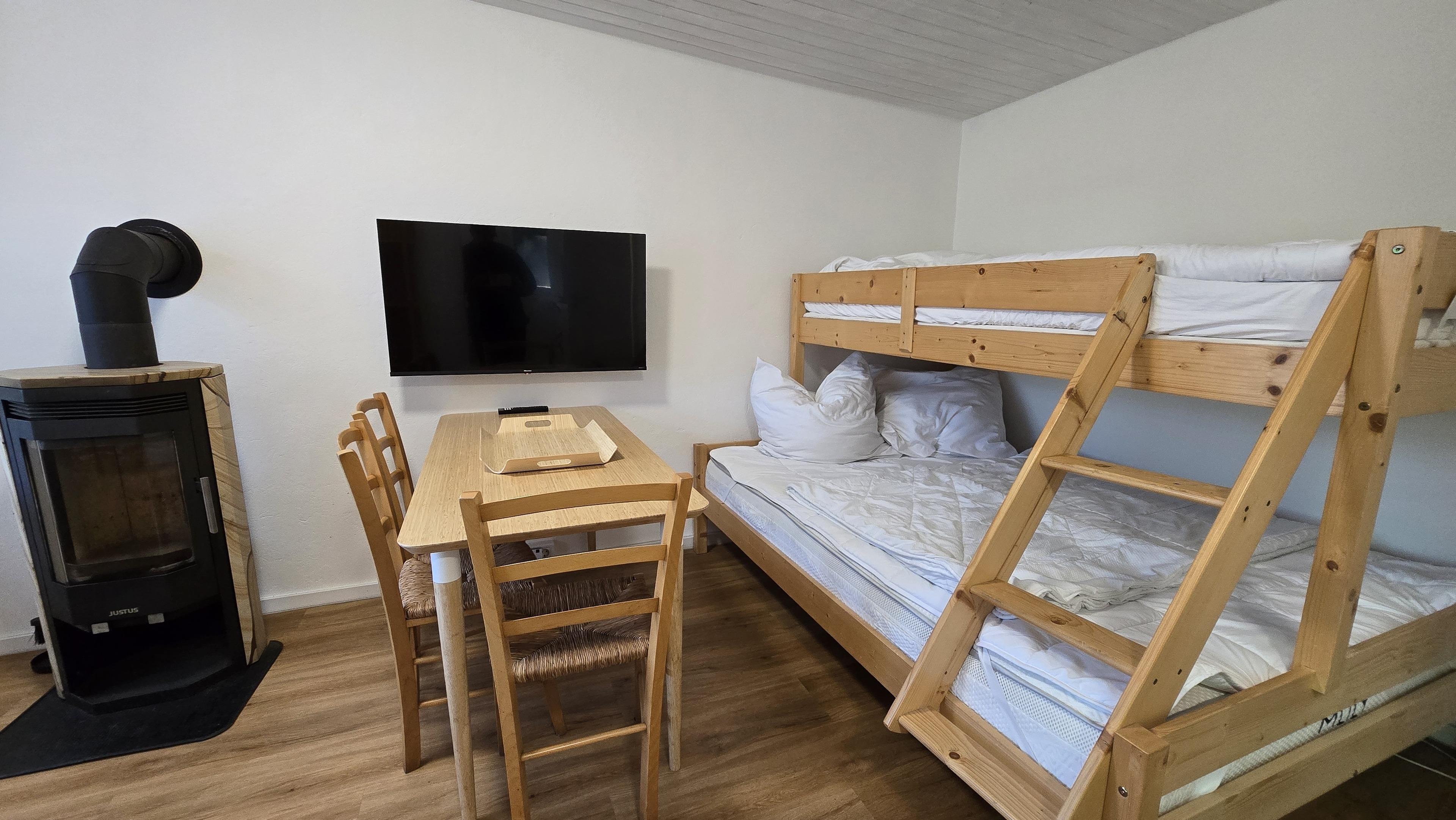 Sie brauchen gar nicht viel, um zufrieden zu sein? Unser süßes Strandheim für Verliebte oder Abenteurer wird Ihnen gefallen. Auf dem großen, grünen Grundstück in ruhiger und naturnaher Lage befindet sich das kleine Idyll. Ein einfach ausgestatteter Bungalow, der in 2025 modernisiert wurde, bietet zwar mit 24 qm nicht viel Platz, aber doch alles, was Sie zum Erholen brauchen. Starten Sie Ihren Tag doch mit einem frisch gekochten Kaffee auf der Terrasse und genießen Sie die Sonnenstrahlen. Vielleicht können Sie das Meer schon riechen. Nur 15 Minuten Fussweg trennen Sie von der Ostsee. Der kilometerlange Sandstrand der Insel lädt zu einem ausgiebigen Spaziergang entlang der Kaiserbäder ein. Zurück im kleinen Häuschen können sie sich im unteren Bereich vom Etagenbett auf einer 140 cm breiten Matratze entspannen und für einen dritten Gast gibt es im oberen Teil vom Etagenbett auf 90 cm Breite genügend Platz. Für romantische und kältere Stunden lädt ein Kaminofen ein. Eine weitere Heizung ist nicht vorhanden. Das Bad hat ein WC und eine Dusche mit einem kleinen Durchlauferhitzer. Auf wenigen Quadratmetern finden Sie bei uns all das, was Sie brauchen: Smart-TV mit Streamingfunktion, DVD-Player, kostenfreies WLAN, eine kleine Singel-Küche mit Kühlschrank und zwei Herdplatten, Mikrowelle mit Grill und Heißluft, Kaffeemaschine, Toaster, Wasserkocher und Küchenausstattung. Ein Stellplatz ist vorhanden und für unsere sportlichen Gäste haben wir genug Platz, um Fahrräder abzustellen.