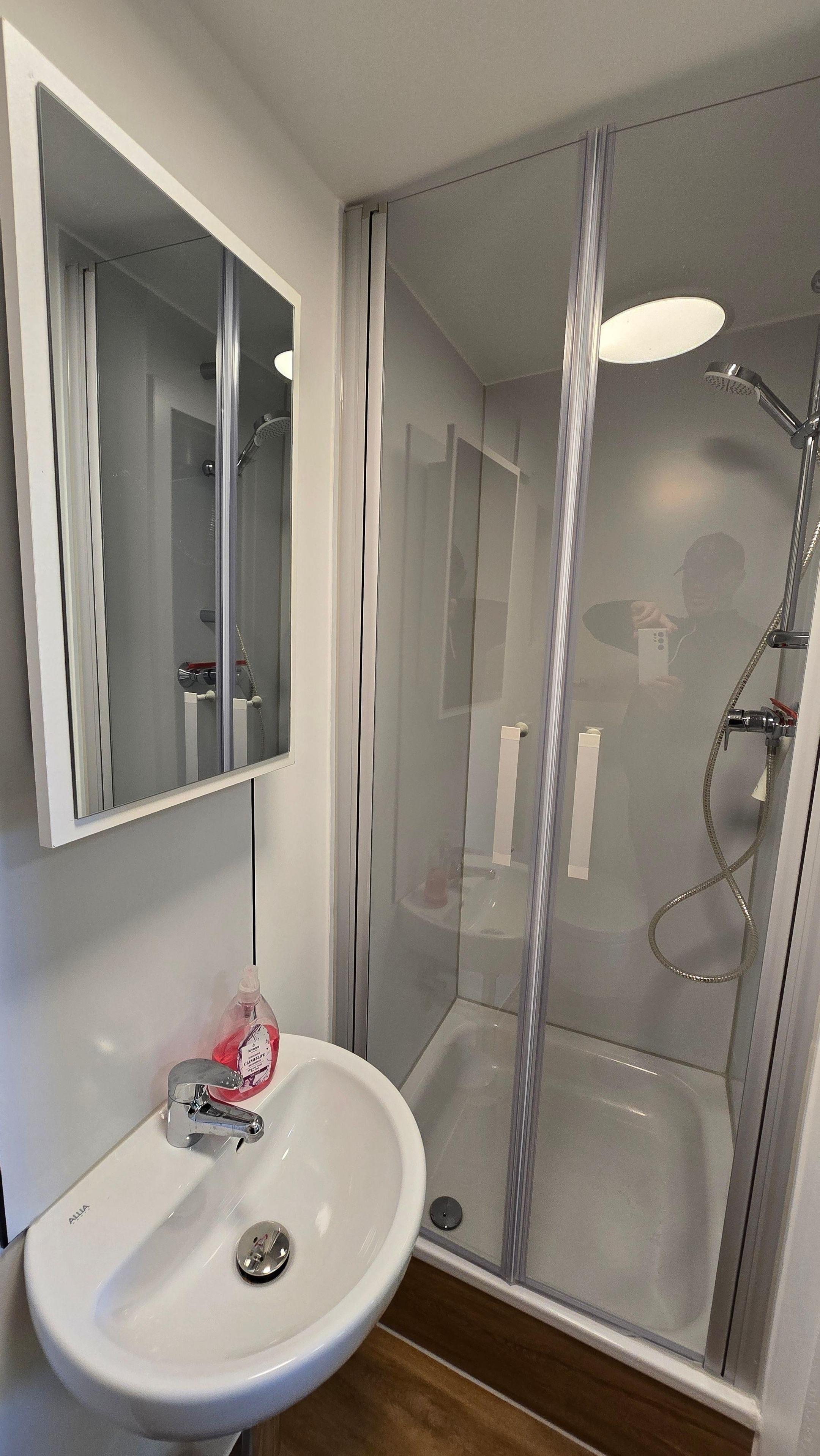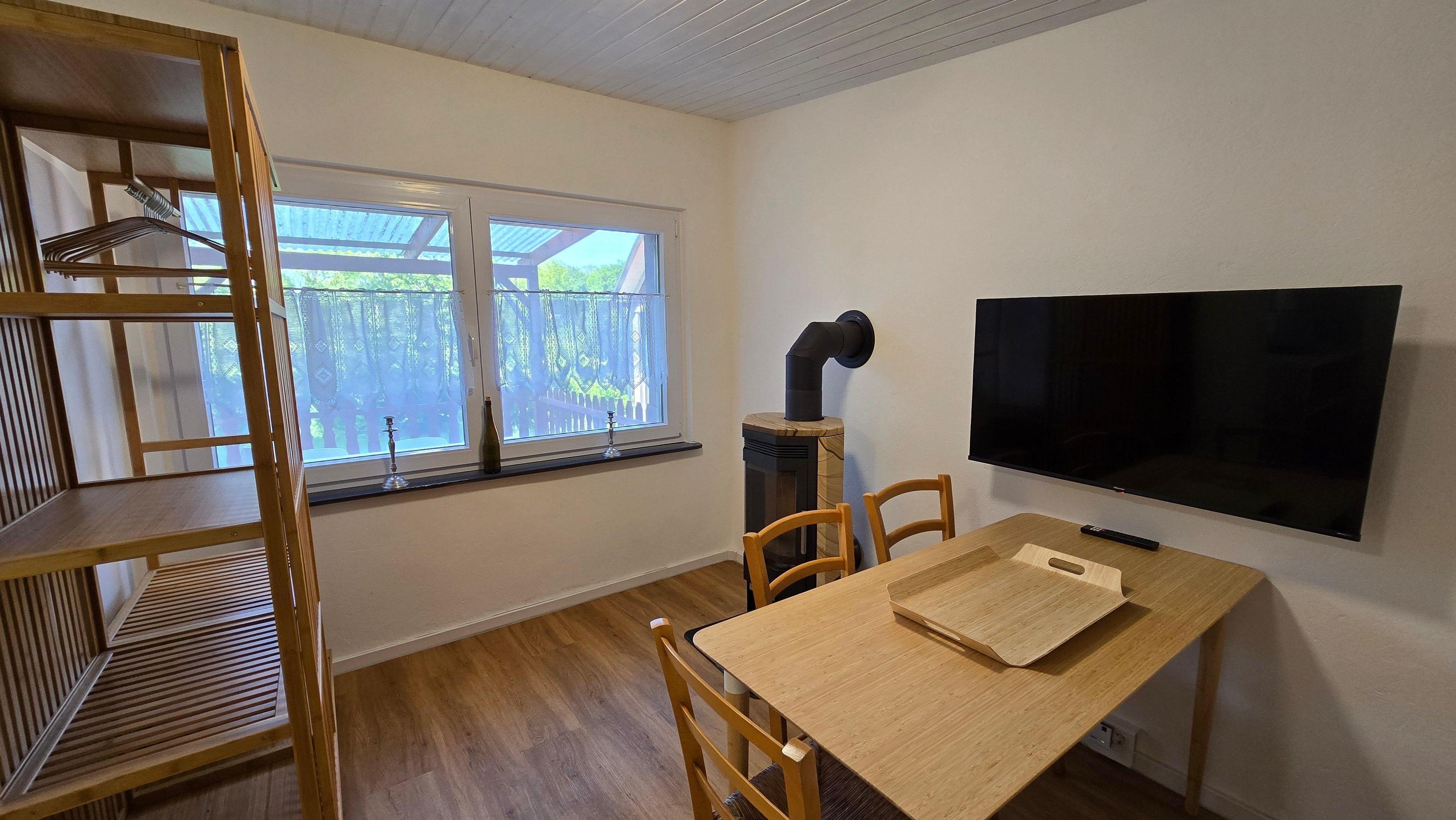 Ein einfach ausgestatteter Bungalow, der in 2025 modernisiert wurde, bietet zwar mit 24 qm nicht viel Platz, aber doch alles, was Sie zum Erholen brauchen. Starten Sie Ihren Tag doch mit einem frisch gekochten Kaffee auf der Terrasse und genießen Sie die Sonnenstrahlen. Vielleicht können Sie das Meer schon riechen. Zurück im kleinen Häuschen können sie sich im unteren Bereich vom Etagenbett auf einer 140 cm breiten Matratze entspannen und für einen dritten Gast gibt es im oberen Teil vom Etagenbett auf 90 cm Breite genügend Platz. Für romantische und kältere Stunden lädt ein Kaminofen ein. Eine weitere Heizung ist nicht vorhanden. Das Bad hat ein WC und eine Dusche mit einem Durchlauferhitzer. Auf wenigen Quadratmetern finden Sie bei uns all das, was Sie brauchen: Smart-TV mit Streamingfunktion, DVD-Player, kostenfreies WLAN, eine kleine Singel-Küche mit Kühlschrank und zwei Herdplatten, Mikrowelle mit Grill und Heißluft, Kaffeemaschine, Toaster, Wasserkocher und Küchenausstattung.