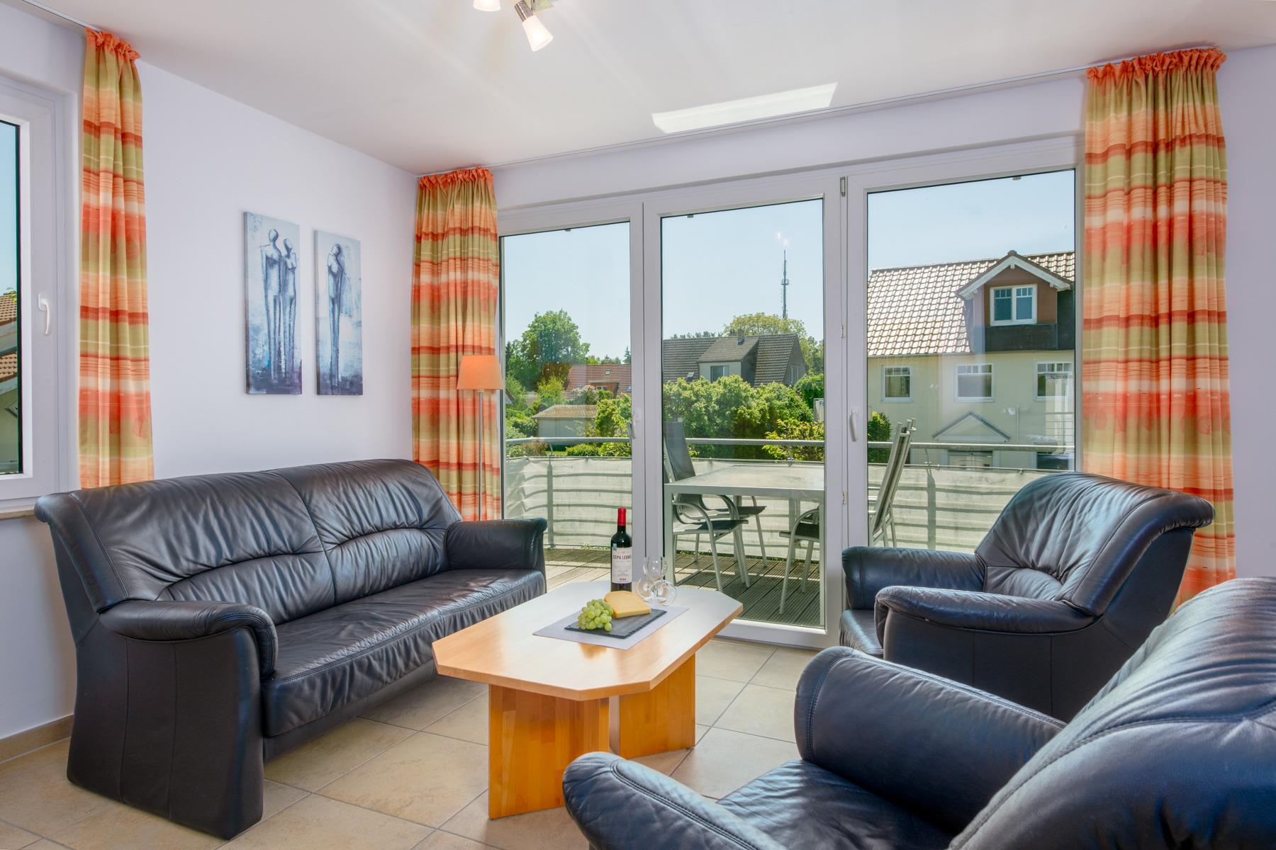 Moderne Ferienwohnung mit Balkon und offener Wohnküche in Heringsdorf, ideal für einen komfortablen Urlaub.