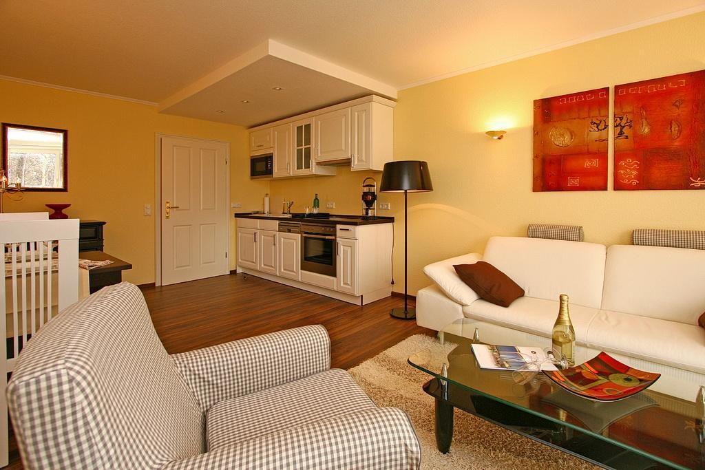 Das hochwertige und moderne Nichtraucher-Apartment verfügt über kostenfreies WLAN und eine voll ausgestattete offene Küche mit Geschirrspüler, Kühlschrank mit Gefrierfach, Kaffeemaschine, Toaster, Wasserkocher, Mikrowelle, 4-Felder Ceranherd mit Backofen sowie über einen liebevoll eingerichteten Wohn-Essbereich. Im Wohnbereich befinden sich ein Flatscreen-TV und Gesellschaftsspiele. Beide separaten Schlafzimmer verfügen über ein Doppelbett (1,80 m x 2,00 m). Das Badezimmer beinhaltet Dusche, WC, Handtuchheizkörper, Föhn und Kosmetikspiegel. Entspannte Stunden verbringt ihr auf dem überdachten und mit Gartenmöbeln ausgestatteten Balkon. Der Balkon ist vom Wohn-Essbereich aus zugänglich.