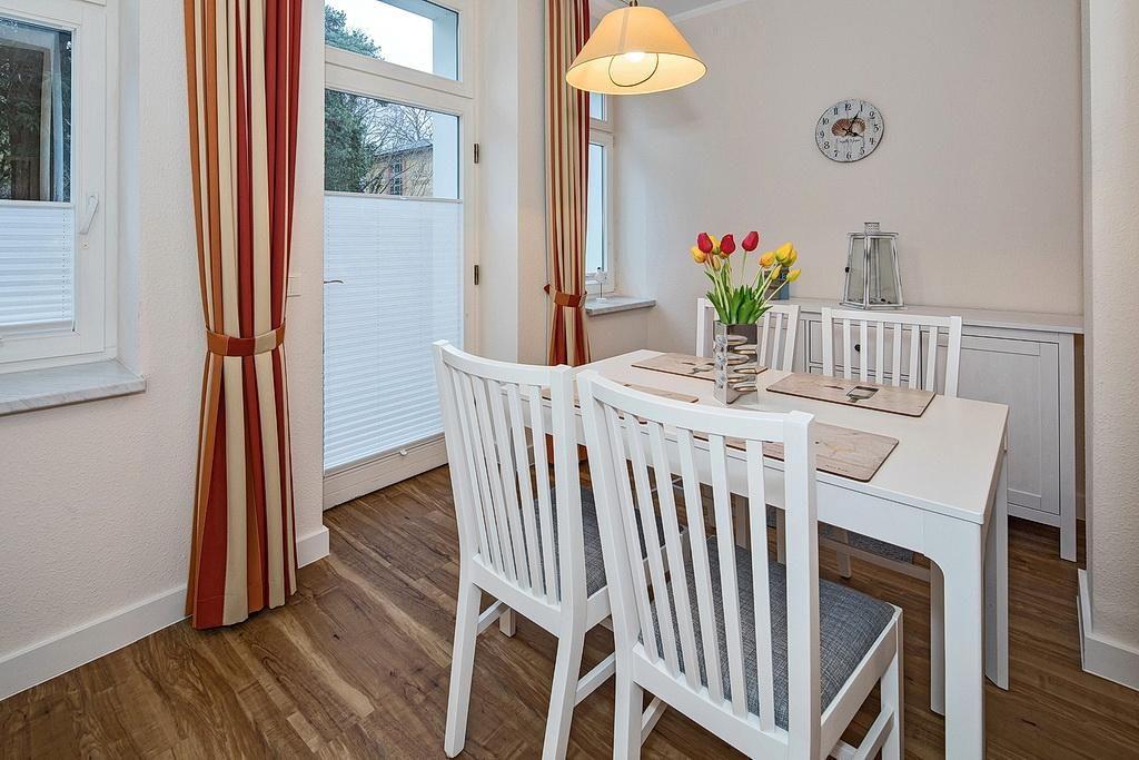 Die Ferienwohnung befindet sich in nordöstlicher Lage im Erdgeschoss der wunderschönen Villa, die im klassischen Stil der Bäderarchitektur erbaut wurde. Der weitläufige Sandstrand und die Promenade sind nur wenige Meter entfernt. In der unmittelbaren Umgebung findet ihr zahlreiche Einkaufsmöglichkeiten, Restaurants und Cafés. Ebenso vorhanden sind vielfältige Freizeitangebote wie z. B. die OstseeTherme, Tennisplätze oder die Segel-Surf- und Kiteschule. Die beliebte Heringsdorfer Seebrücke mit Geschäften, Restaurants und Muschelmuseum ist fußläufig bequem zu erreichen.